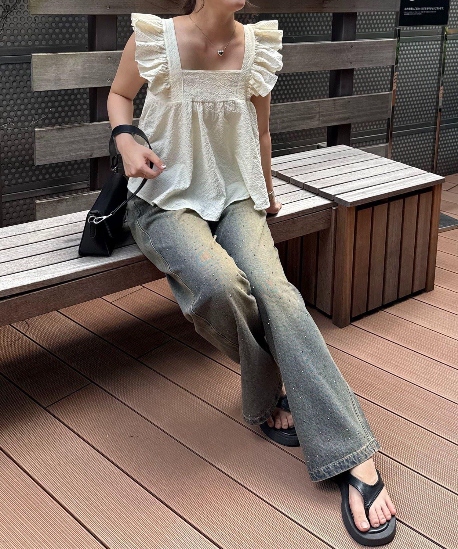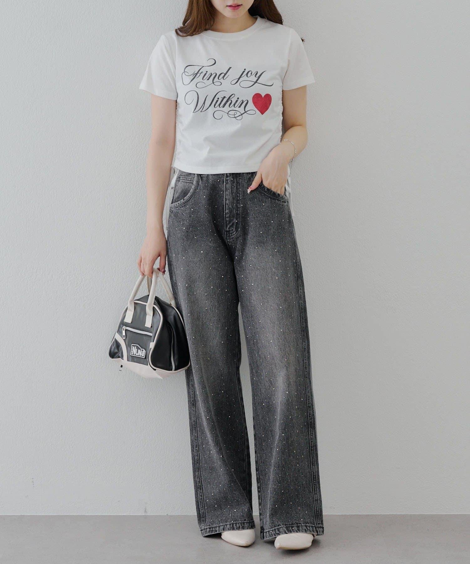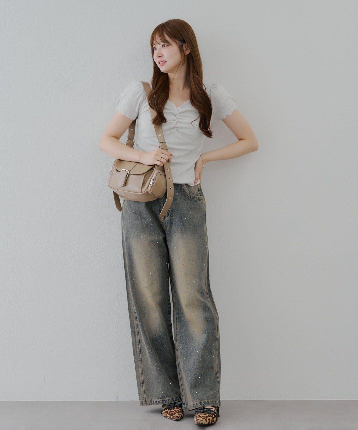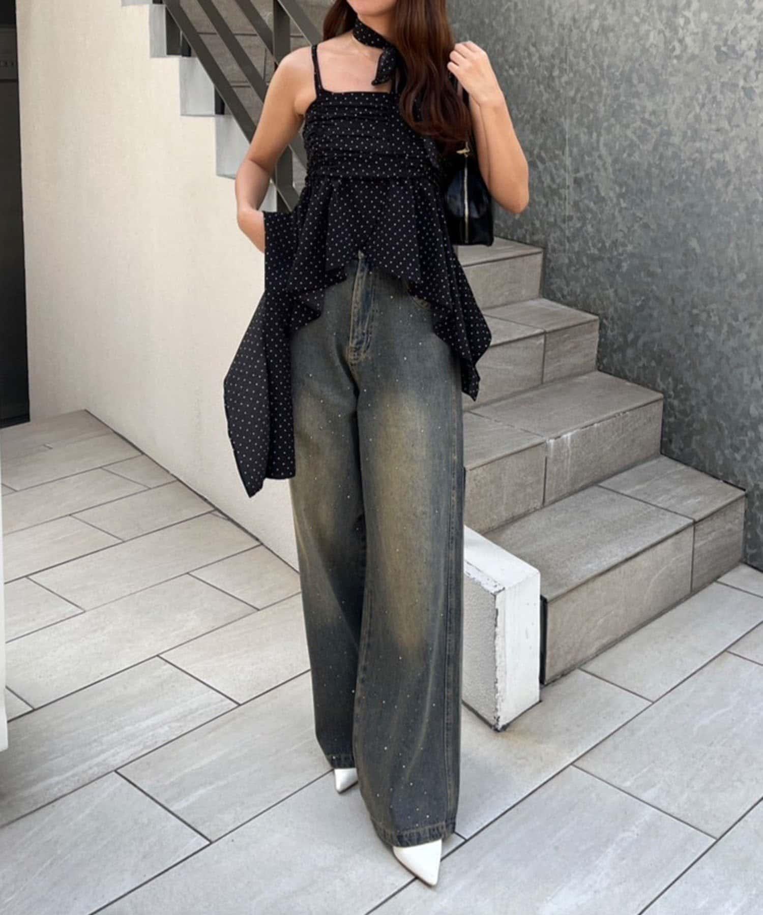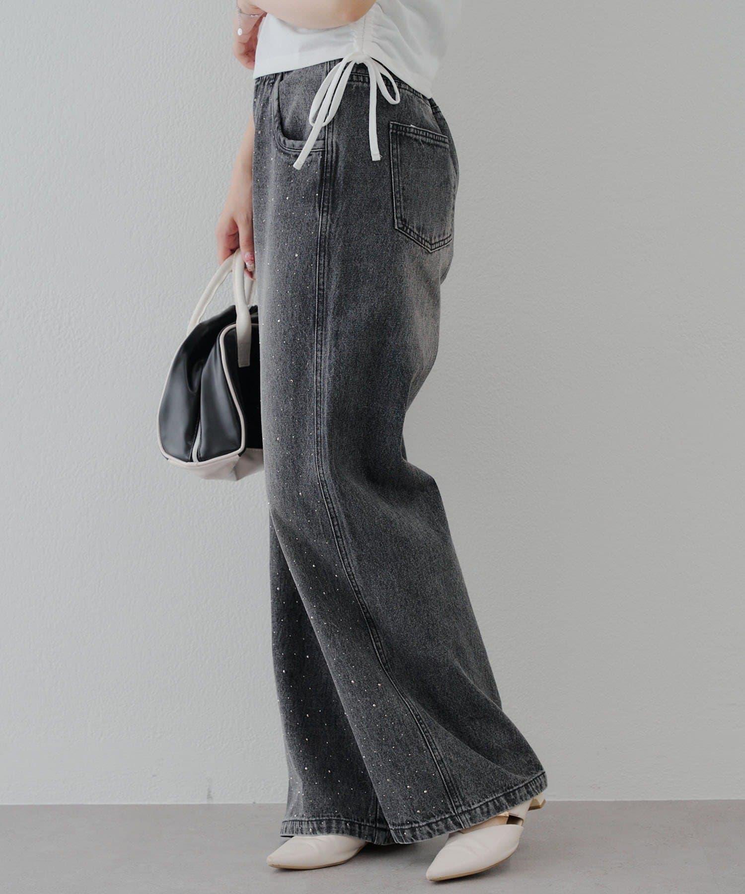 【2尺碼展開】帶石頭的寬鬆牛仔褲