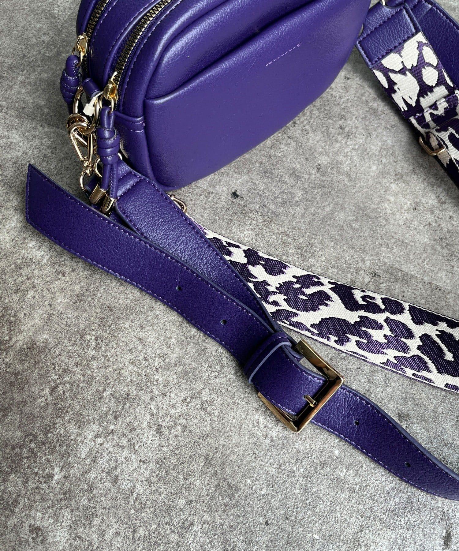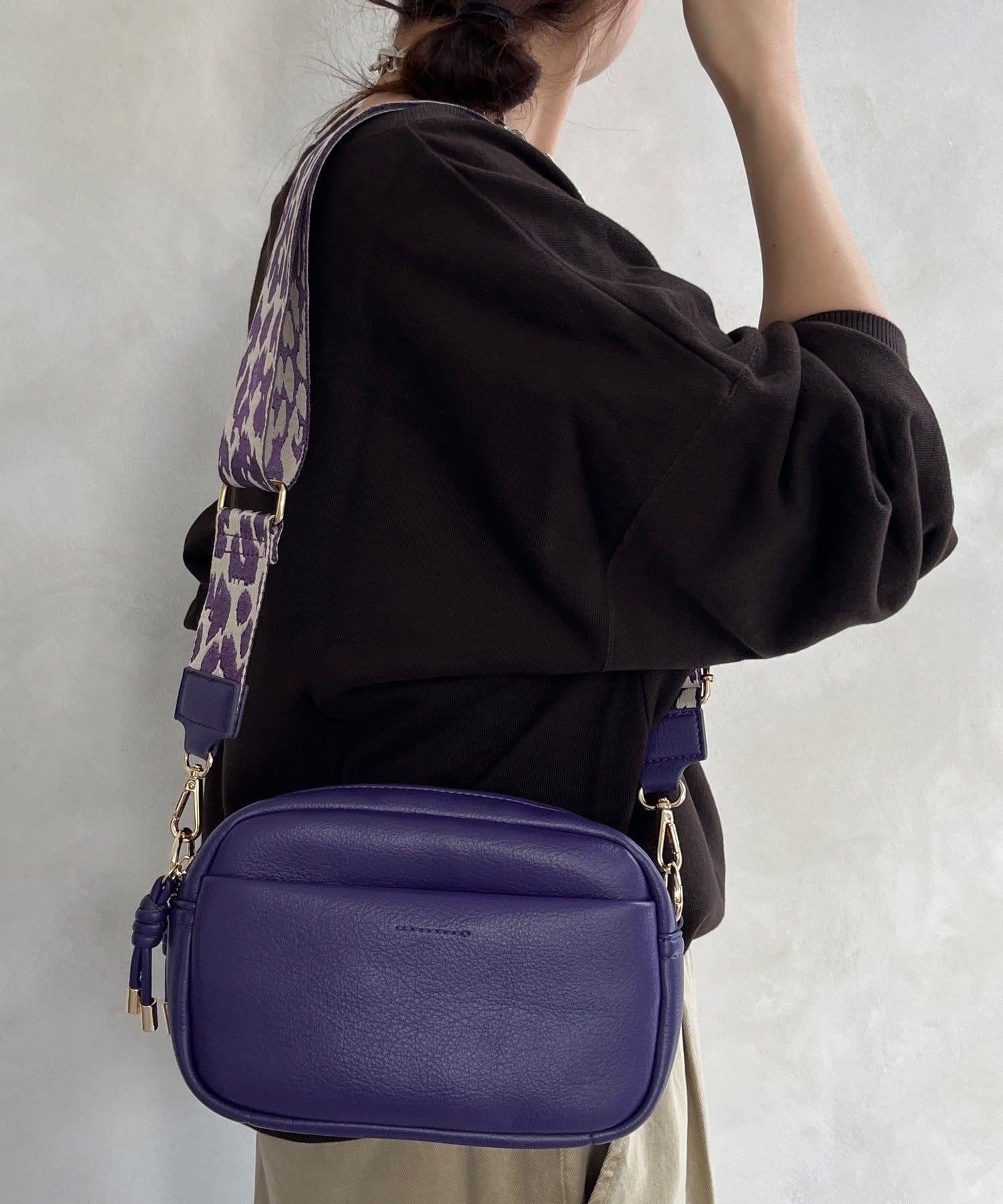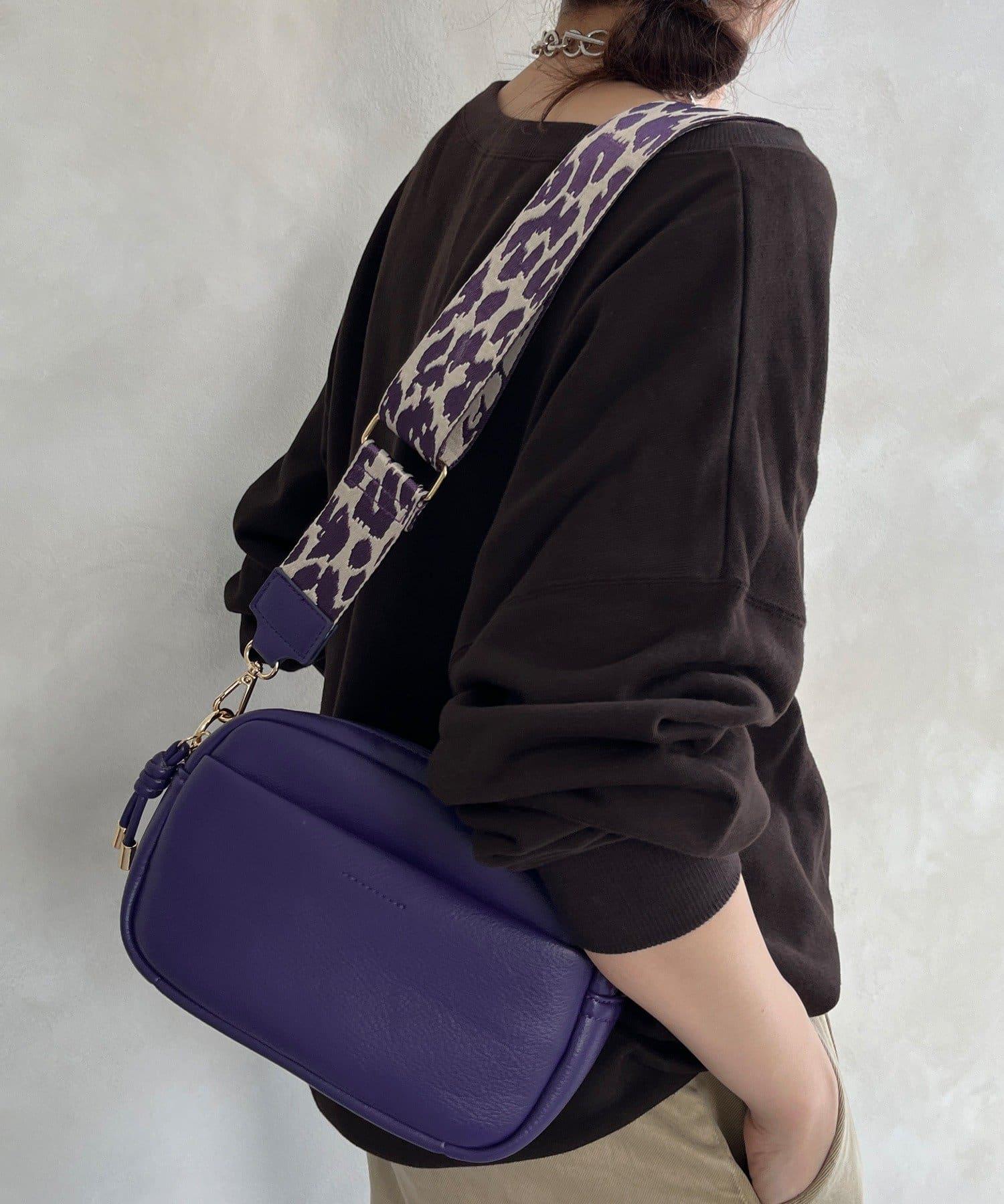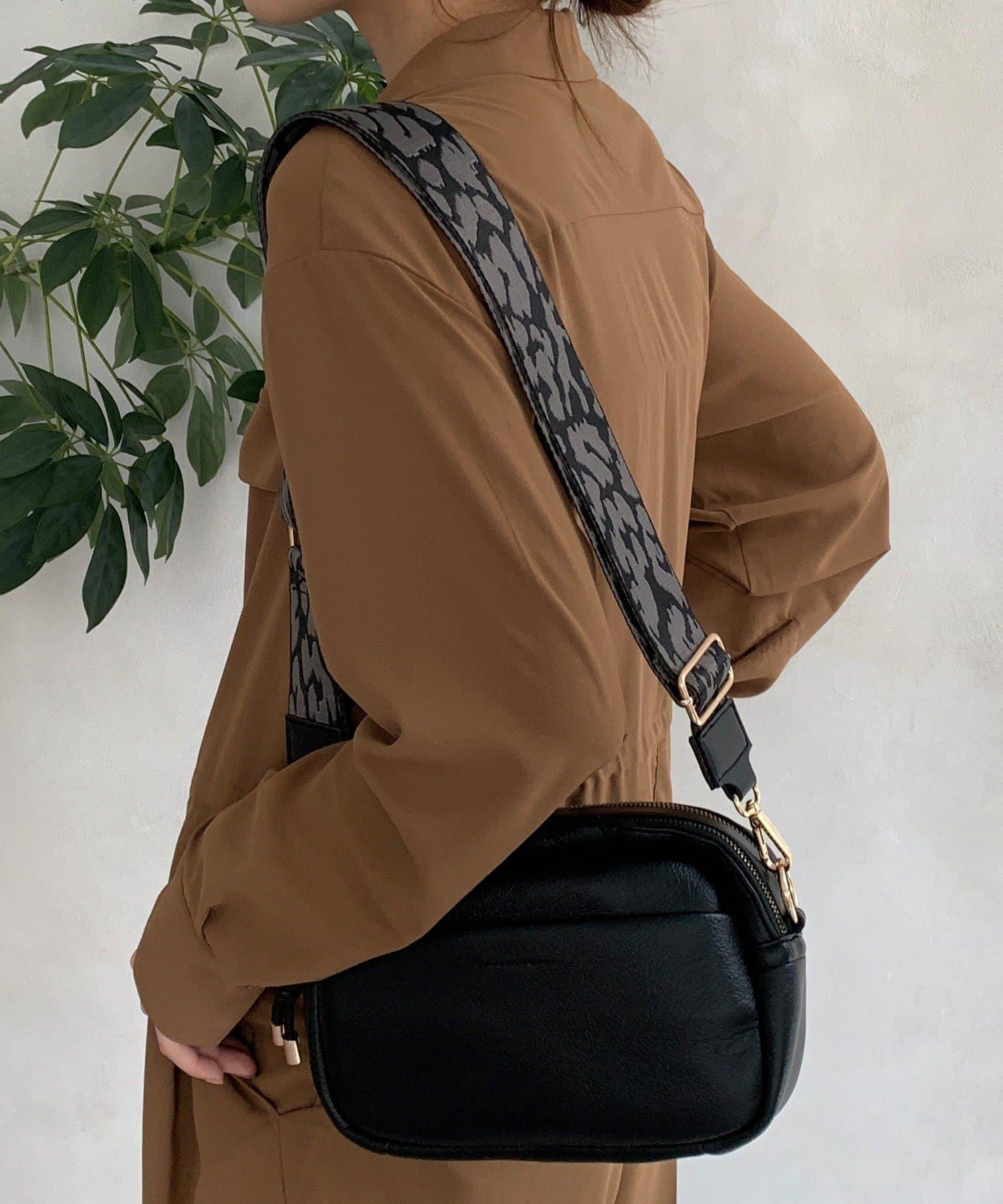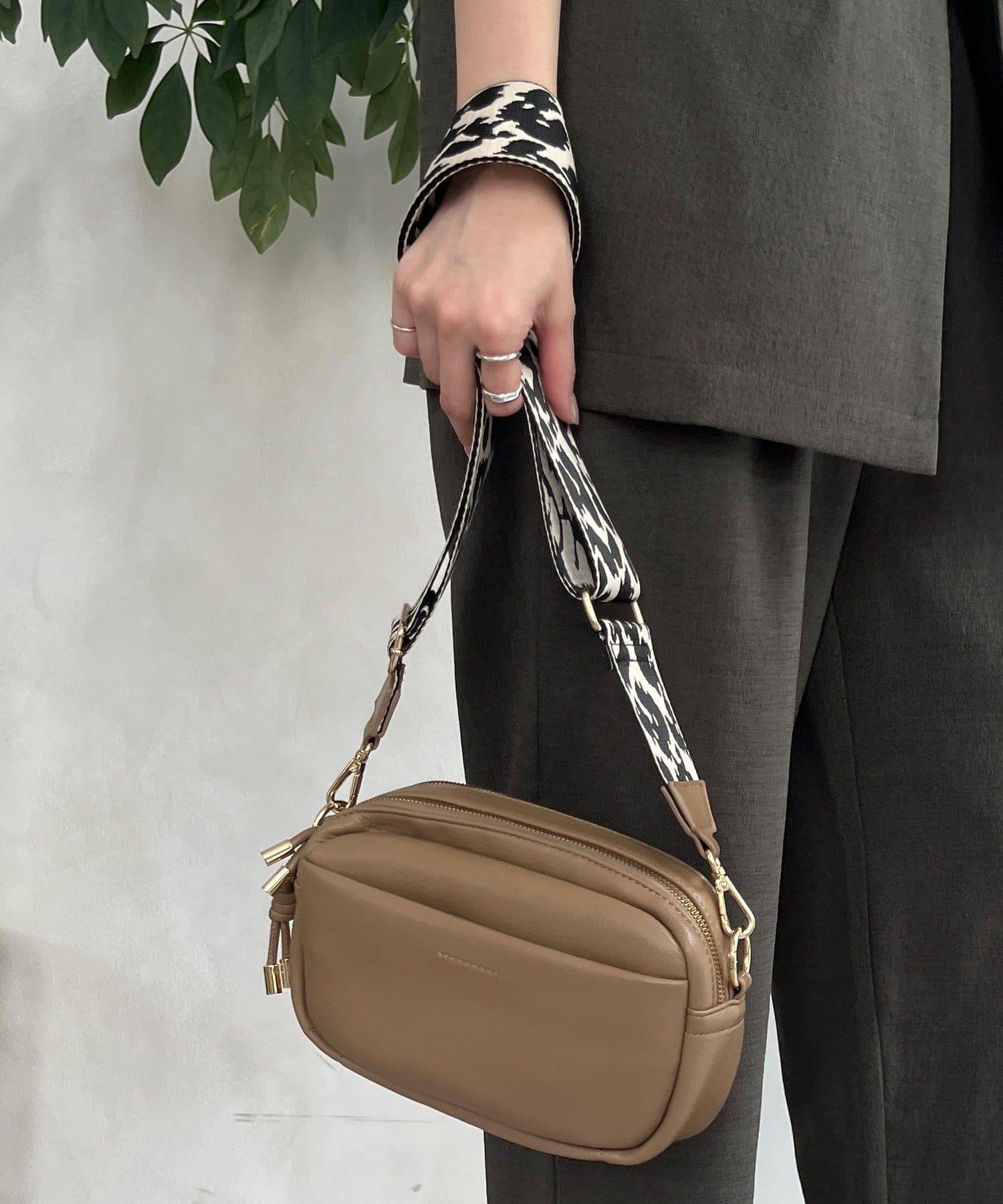 圖案肩帶為這款簡約手袋增添了俏皮氣息。