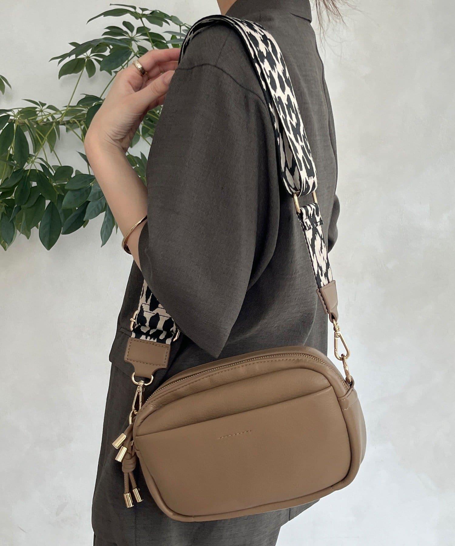 花紋肩帶為這款簡單的手袋增添了俏皮的氣息。