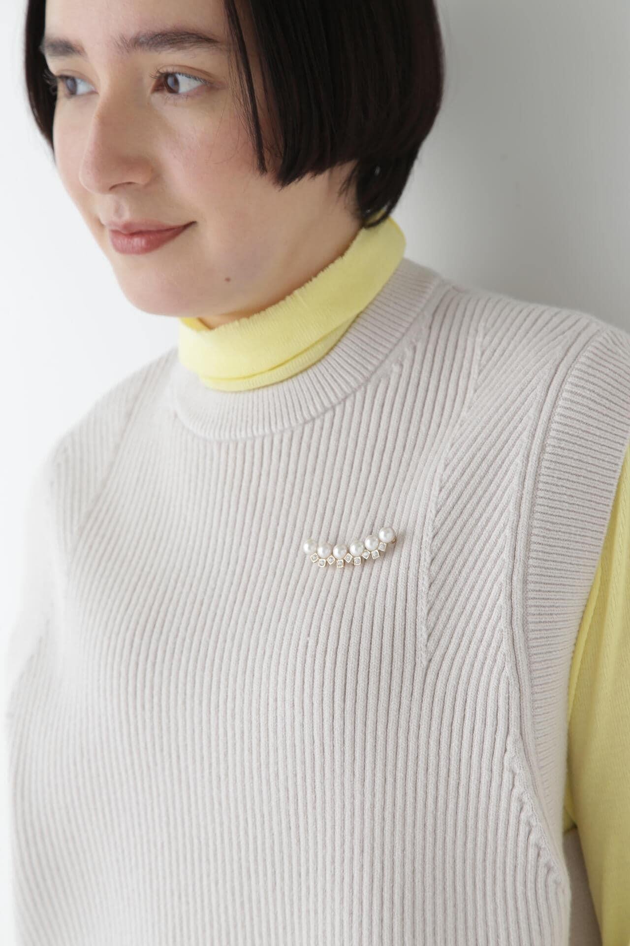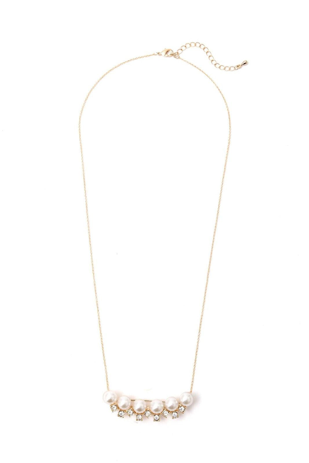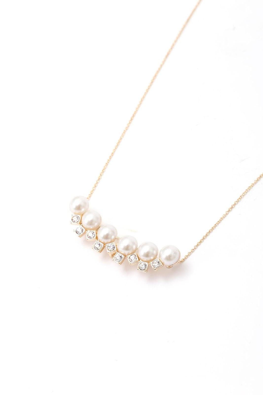 這條項鍊以丙烯酸珍珠和玻璃部件組成的船形圖案為特色。圖案背面附有一枚別針,取下鏈條後可作為胸針使用。圖案由亞克力珍珠和玻璃製成,鏈條部分為黃銅。這條項鍊便於外出時使用。當胸針使用時,建議將其作為簡單針織上衣胸前的點綴。