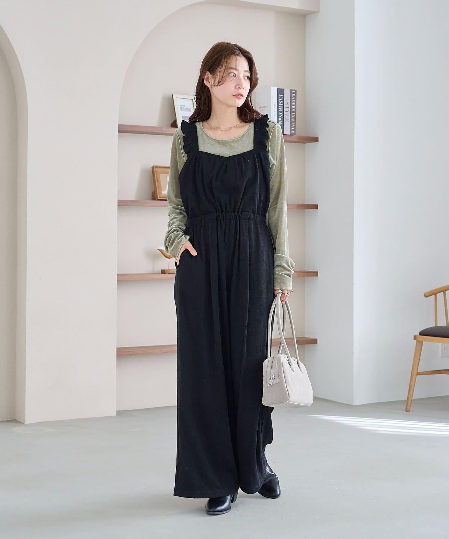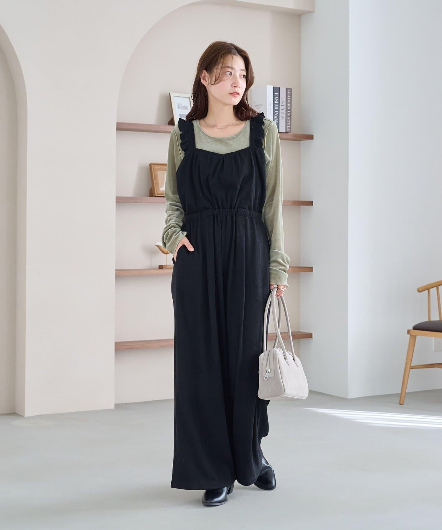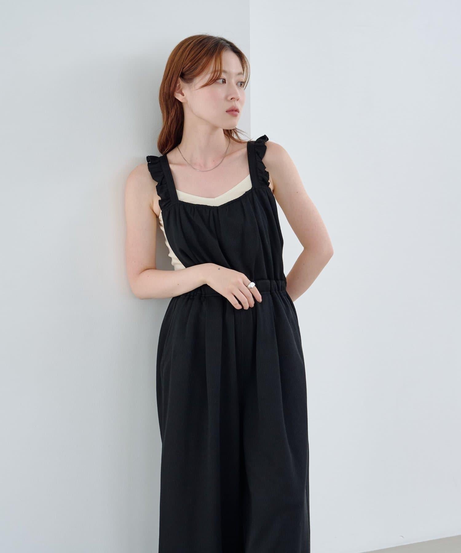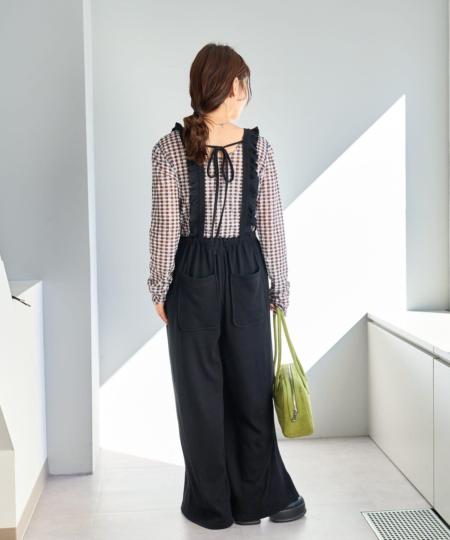 【2尺碼可選/適合身材嬌小/可調節衣長】荷葉邊揹帶褲