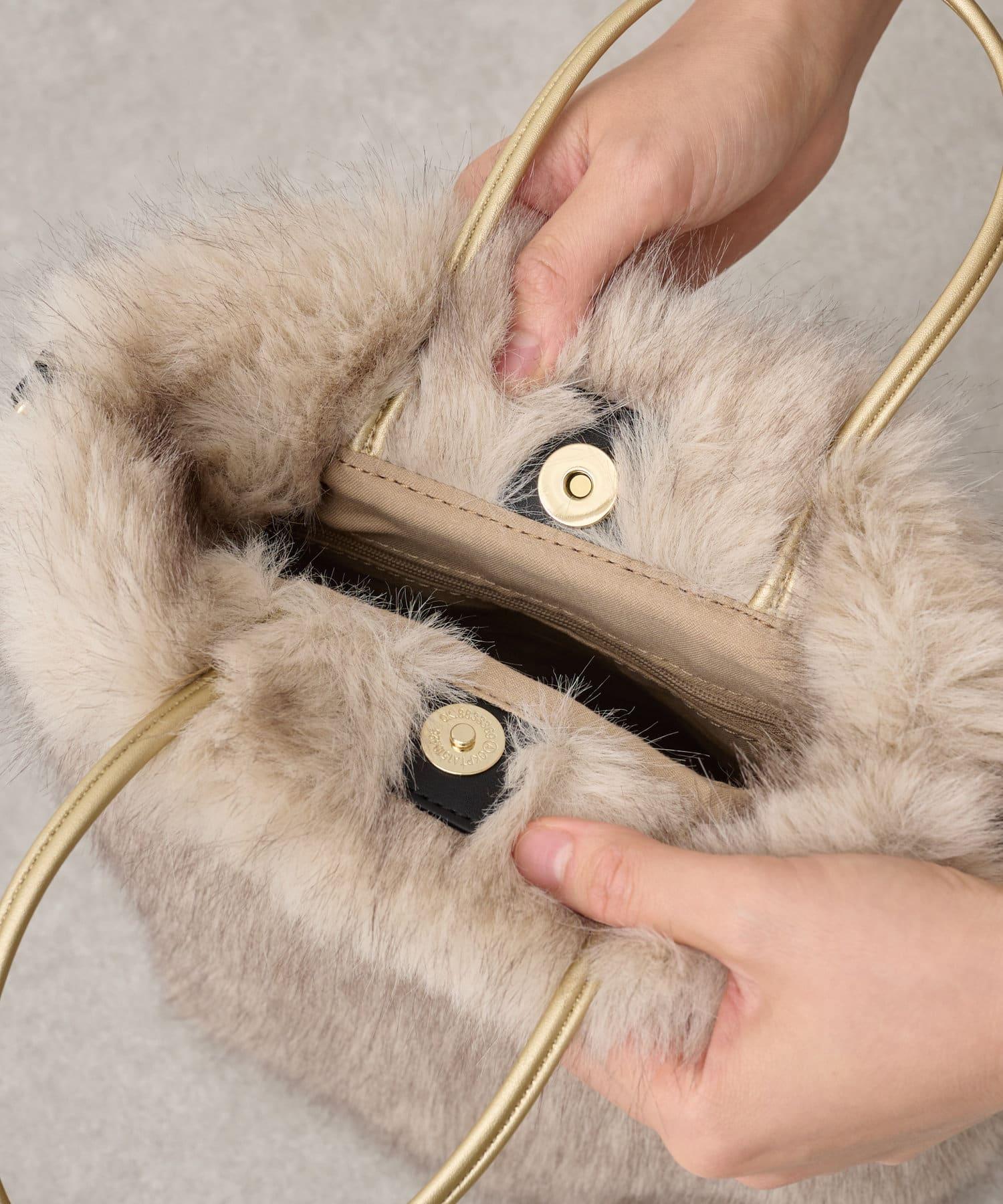 一款引人注目的雙向包,毛皮蓬鬆。