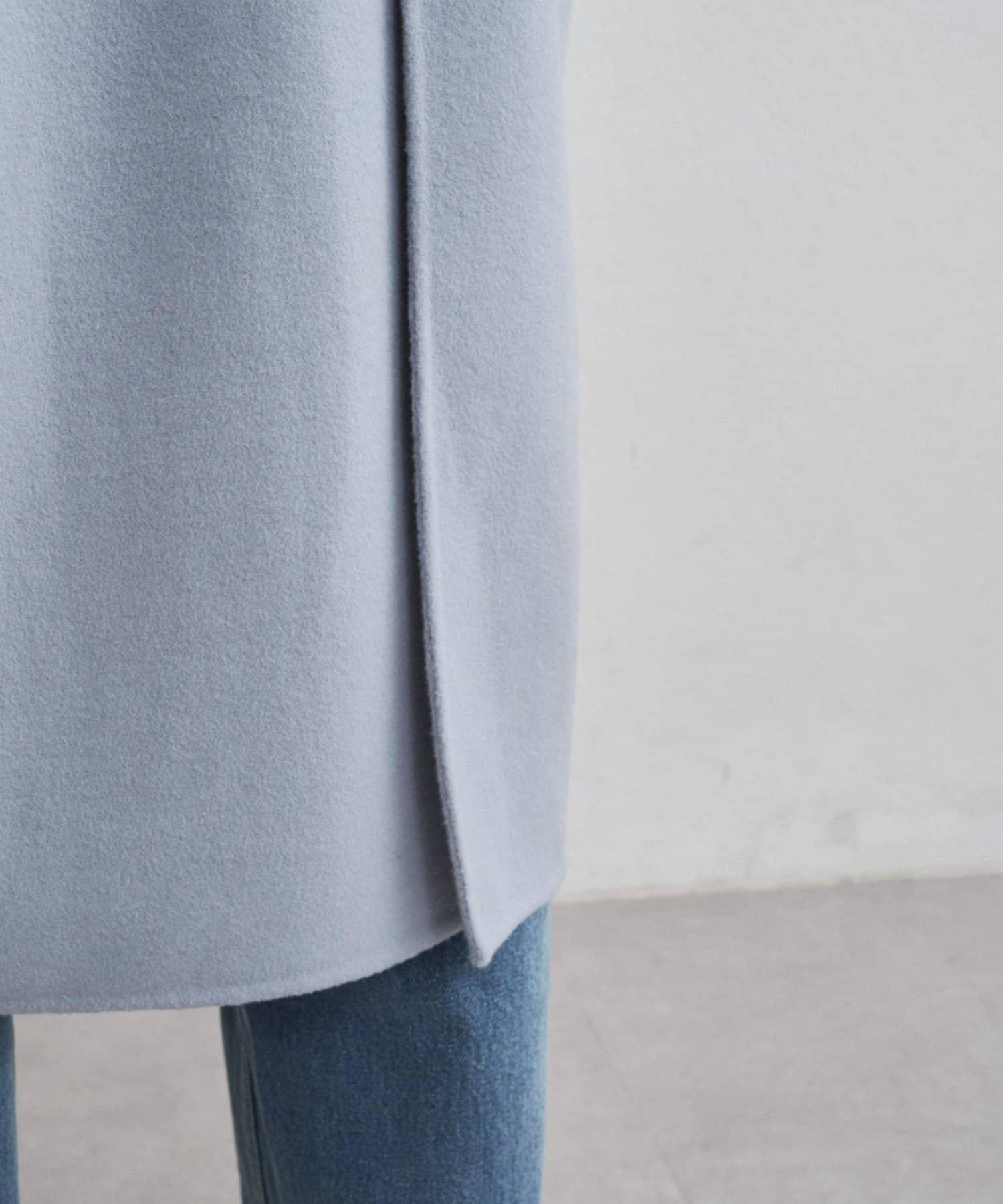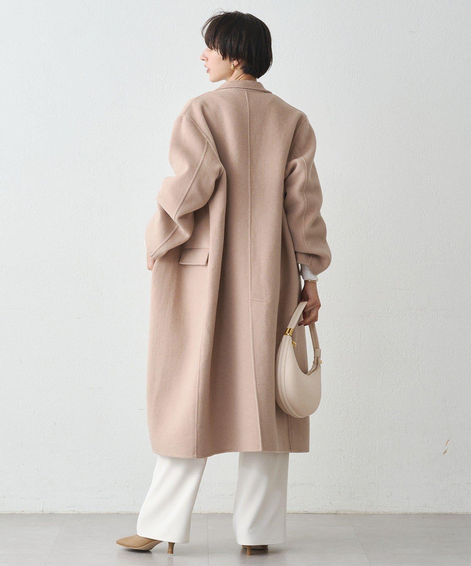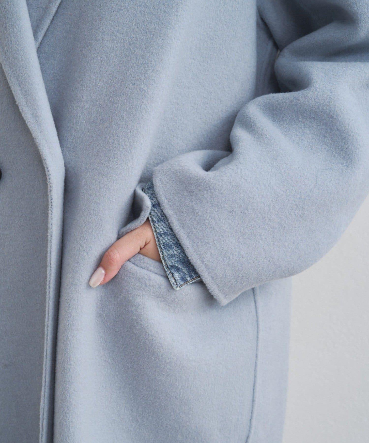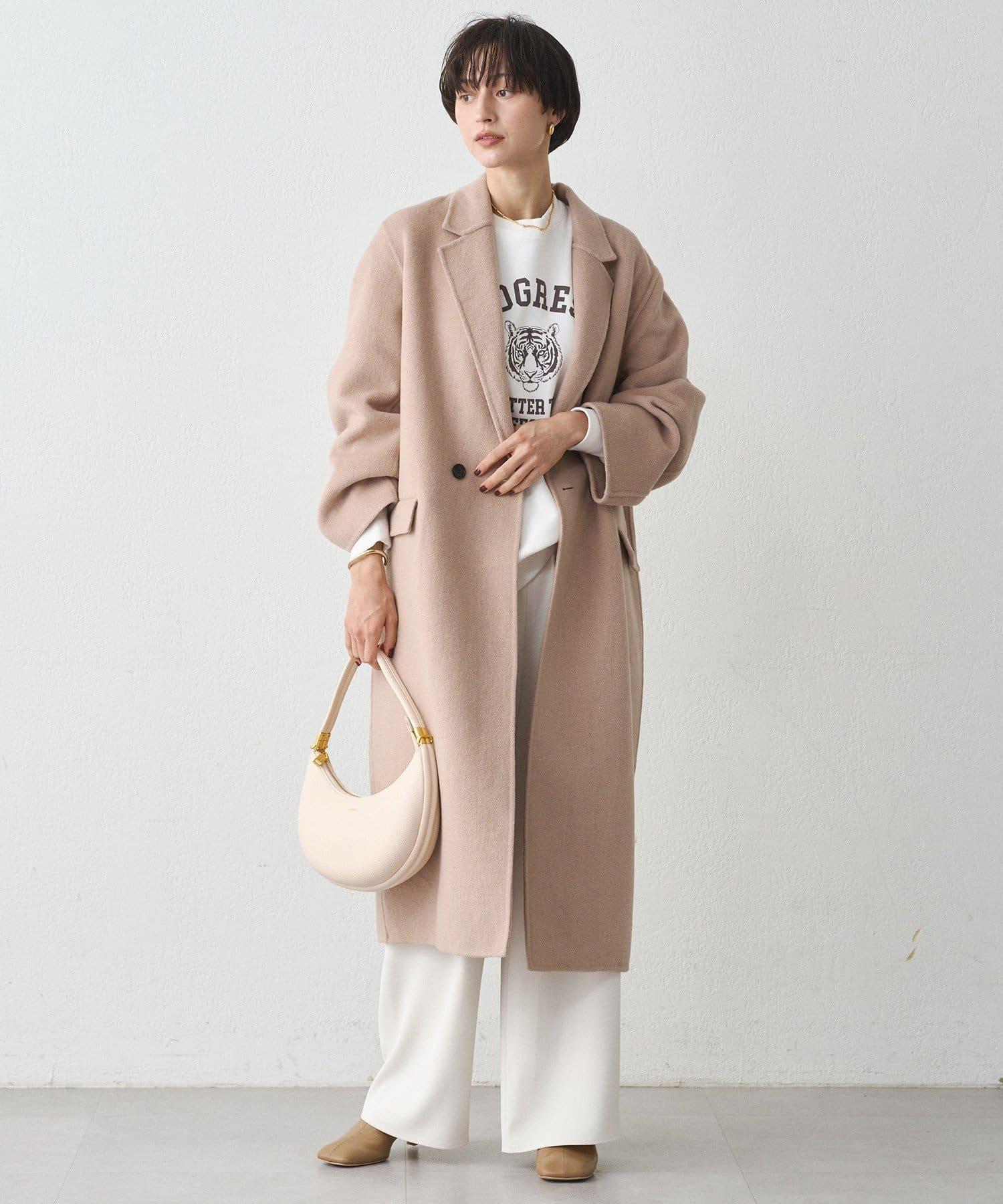 反面剪裁,將兩塊面料縫合為一體,即使沒有襯裡,也能帶來溫暖蓬鬆的穿著感受。