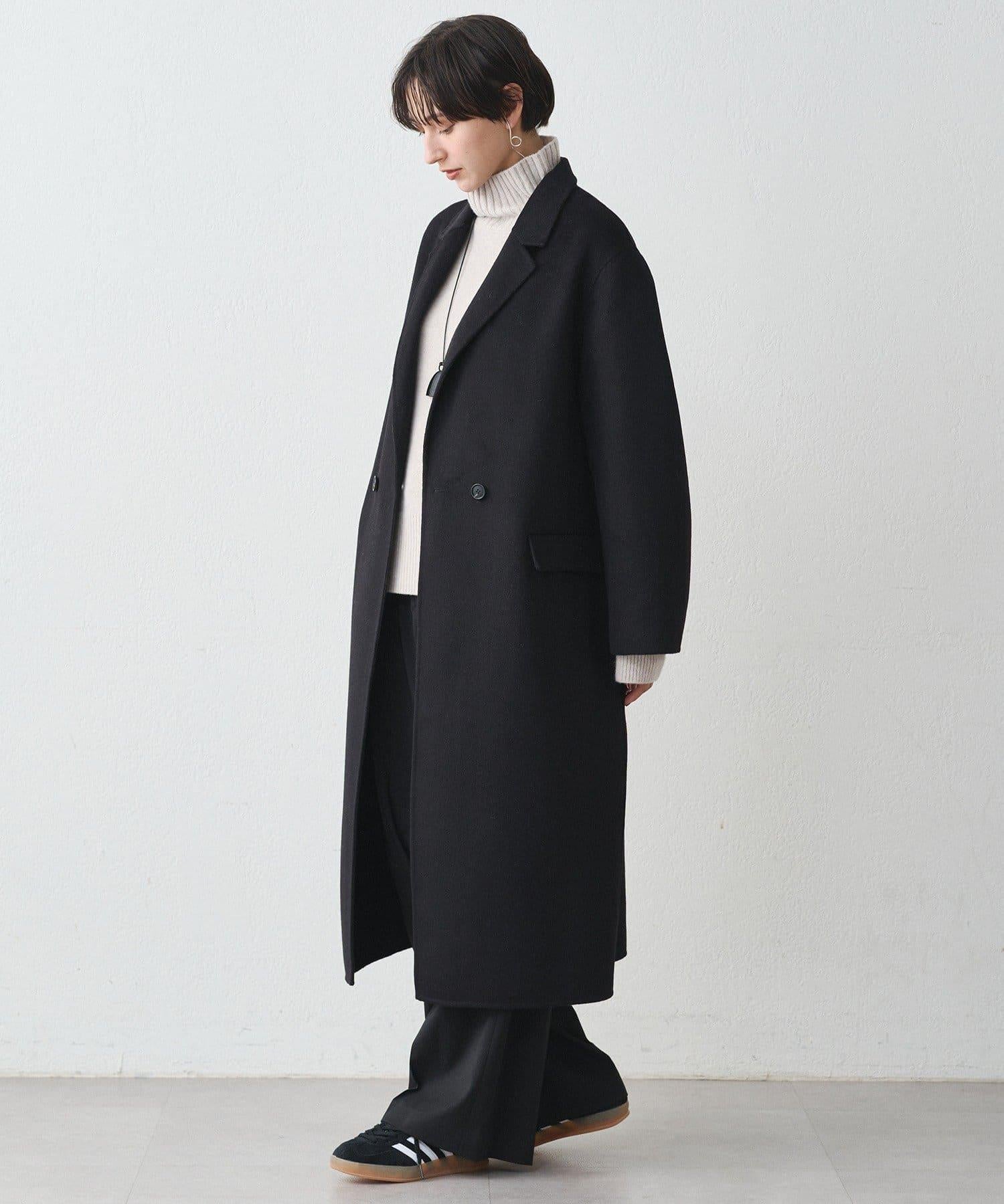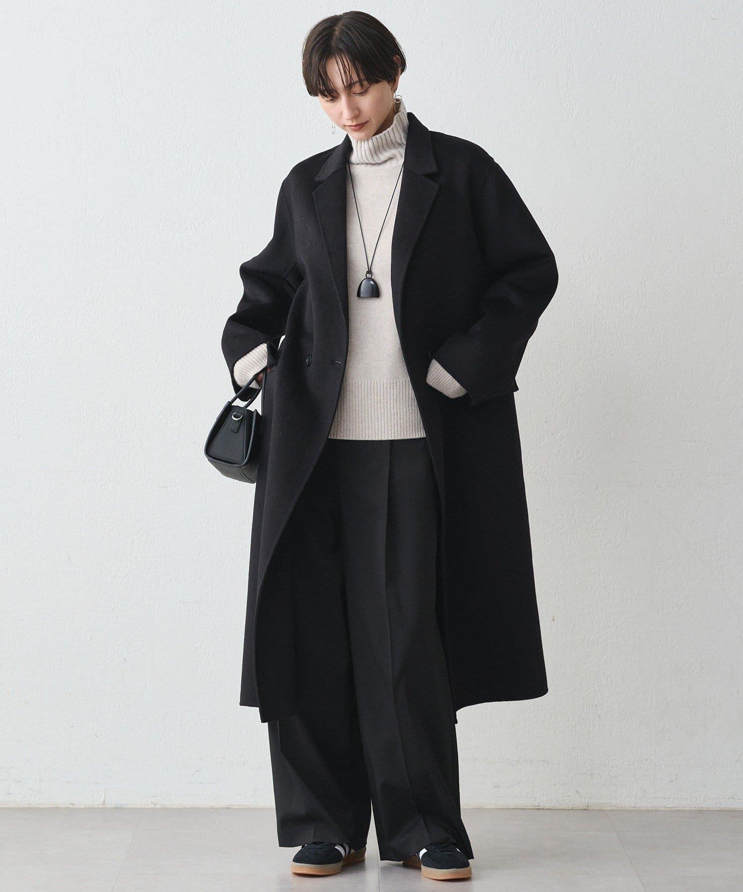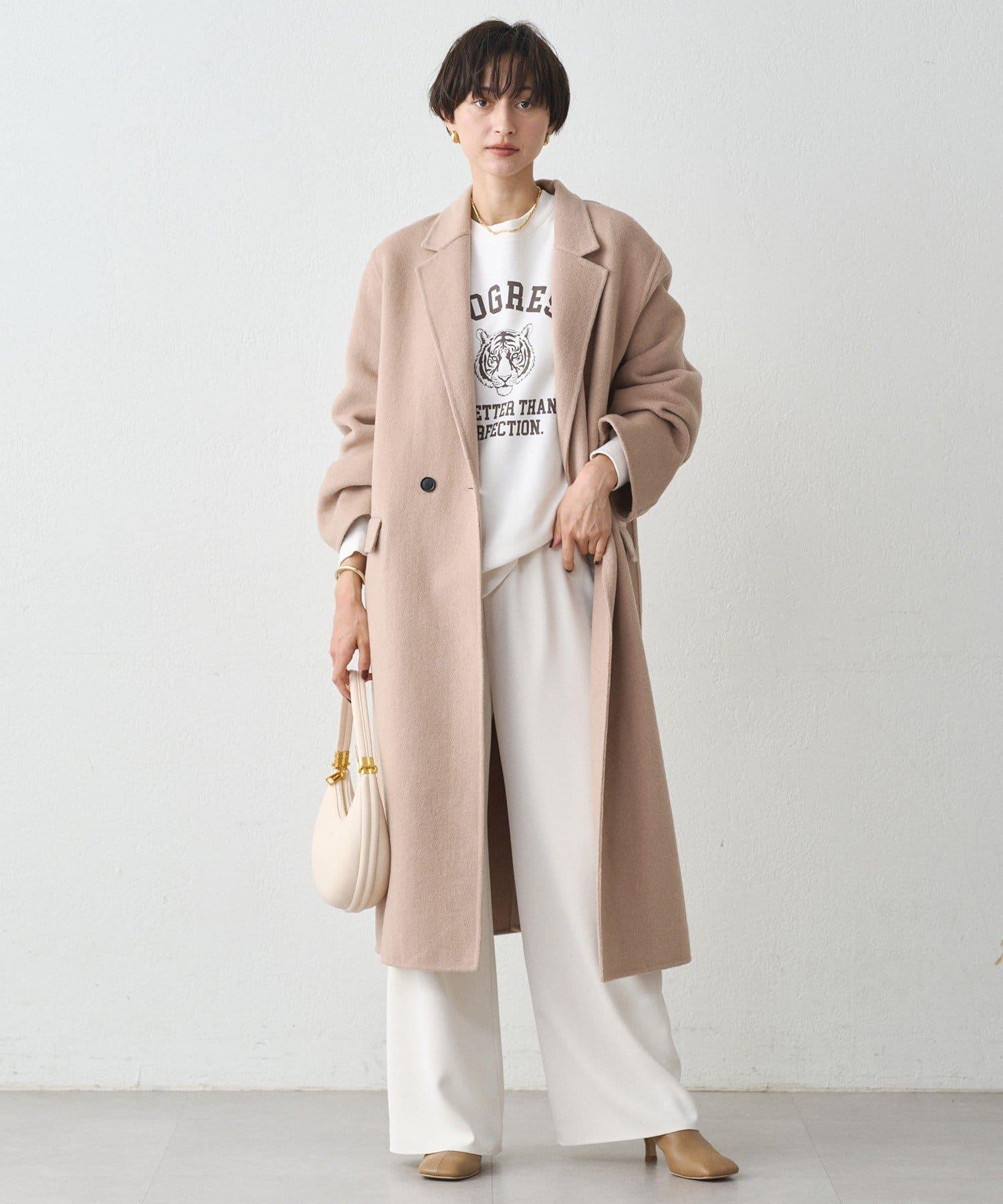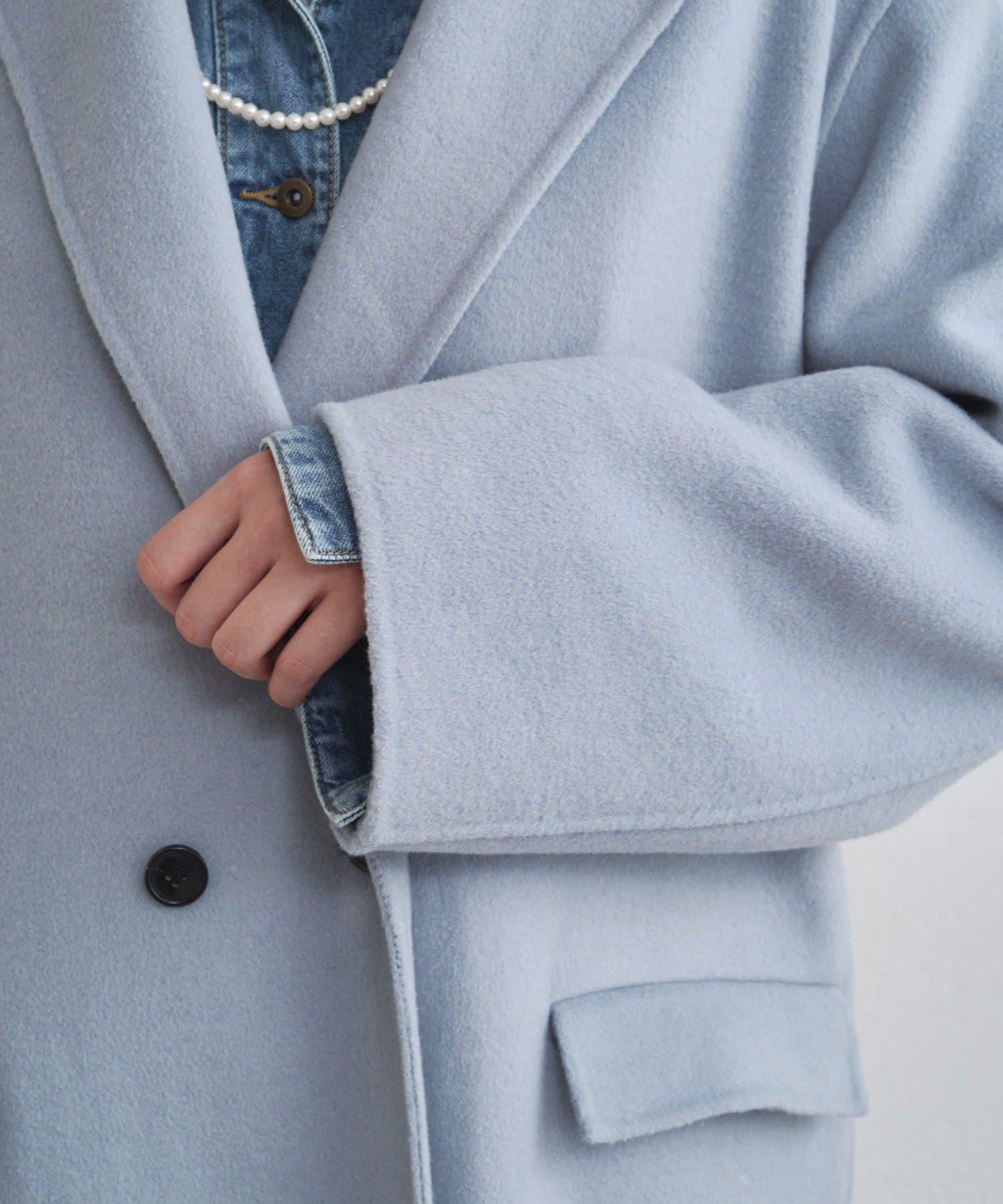 反面剪裁,將兩塊面料縫合為一體,即使沒有襯裡,也能帶來溫暖蓬鬆的穿著感受。