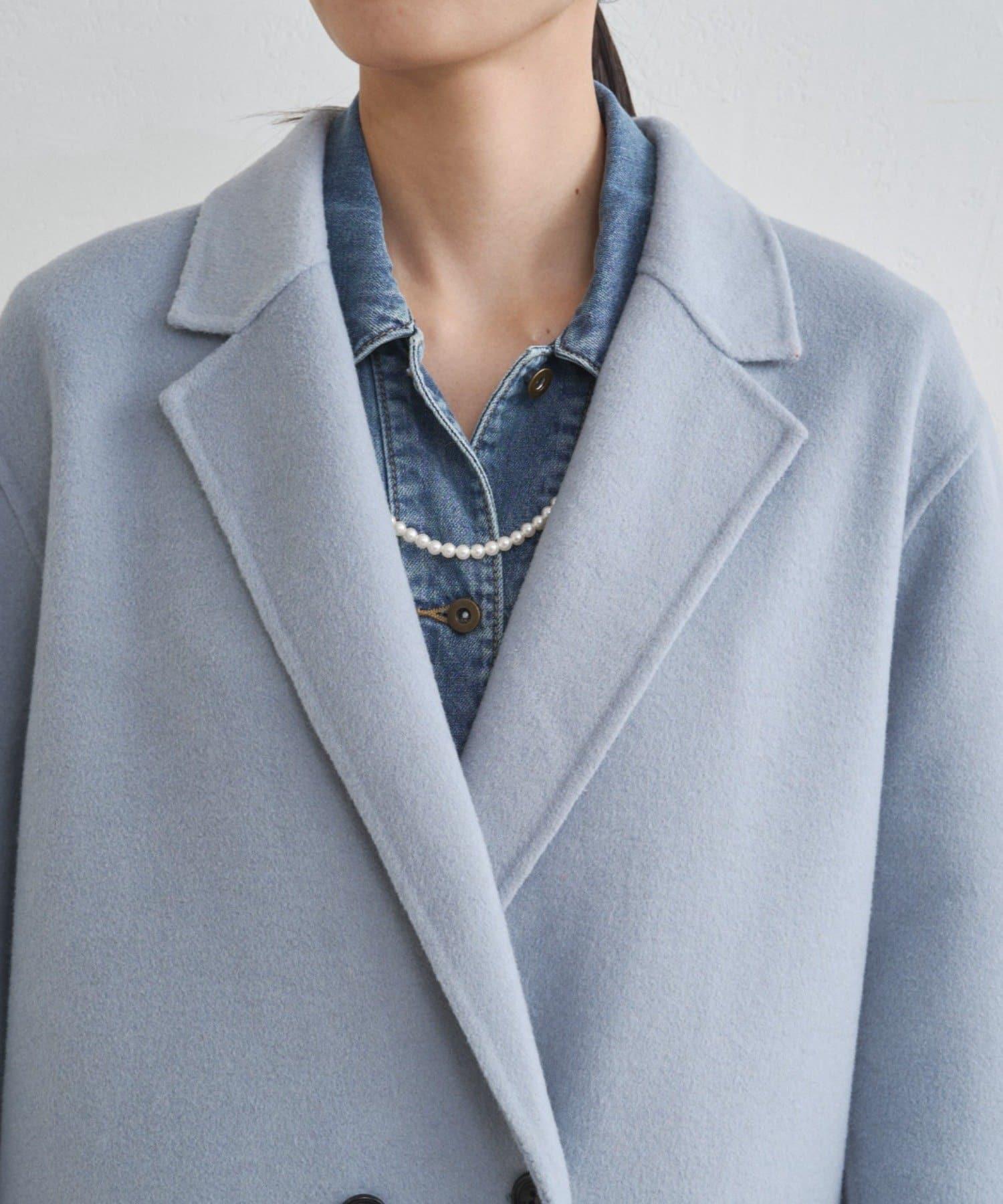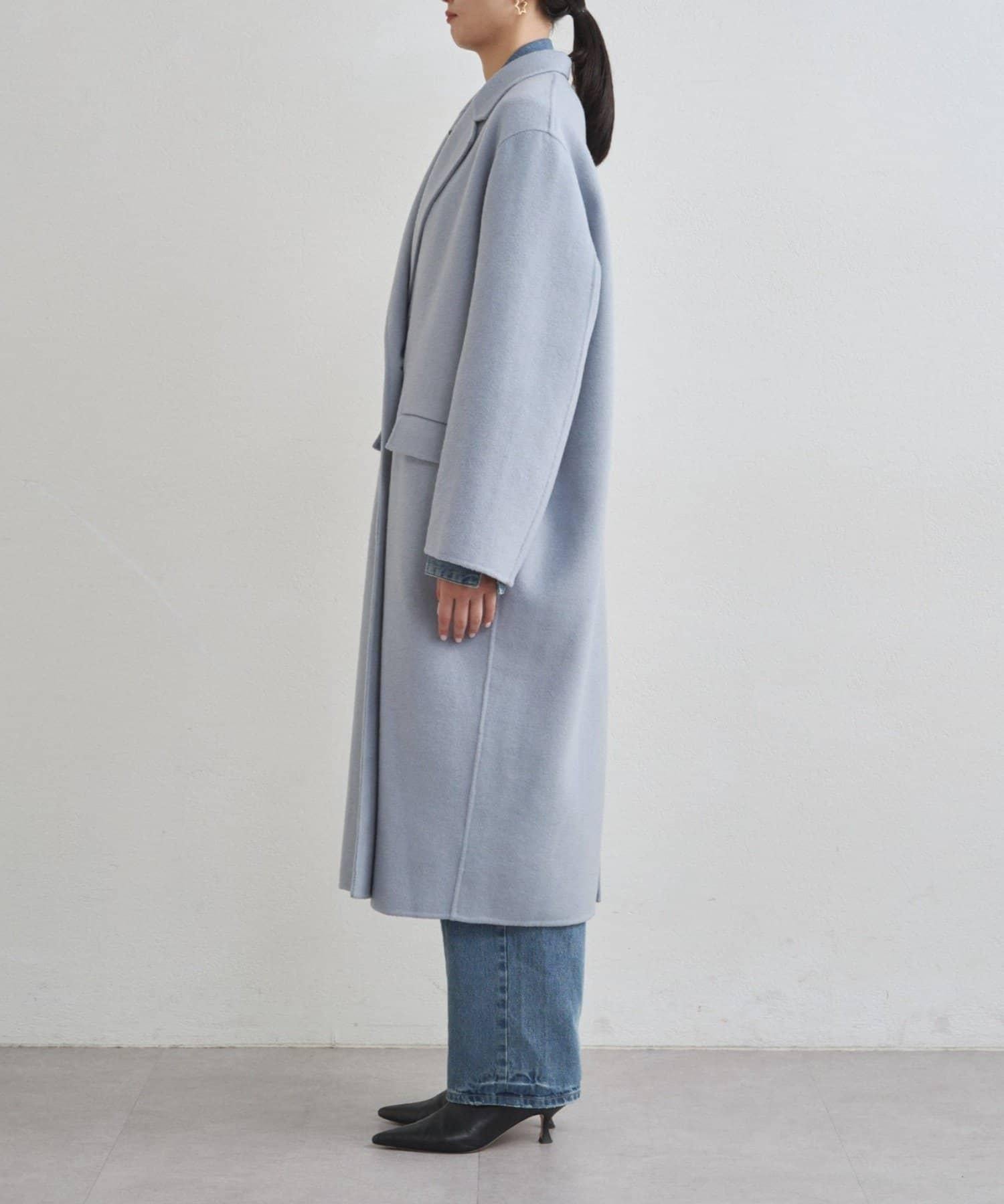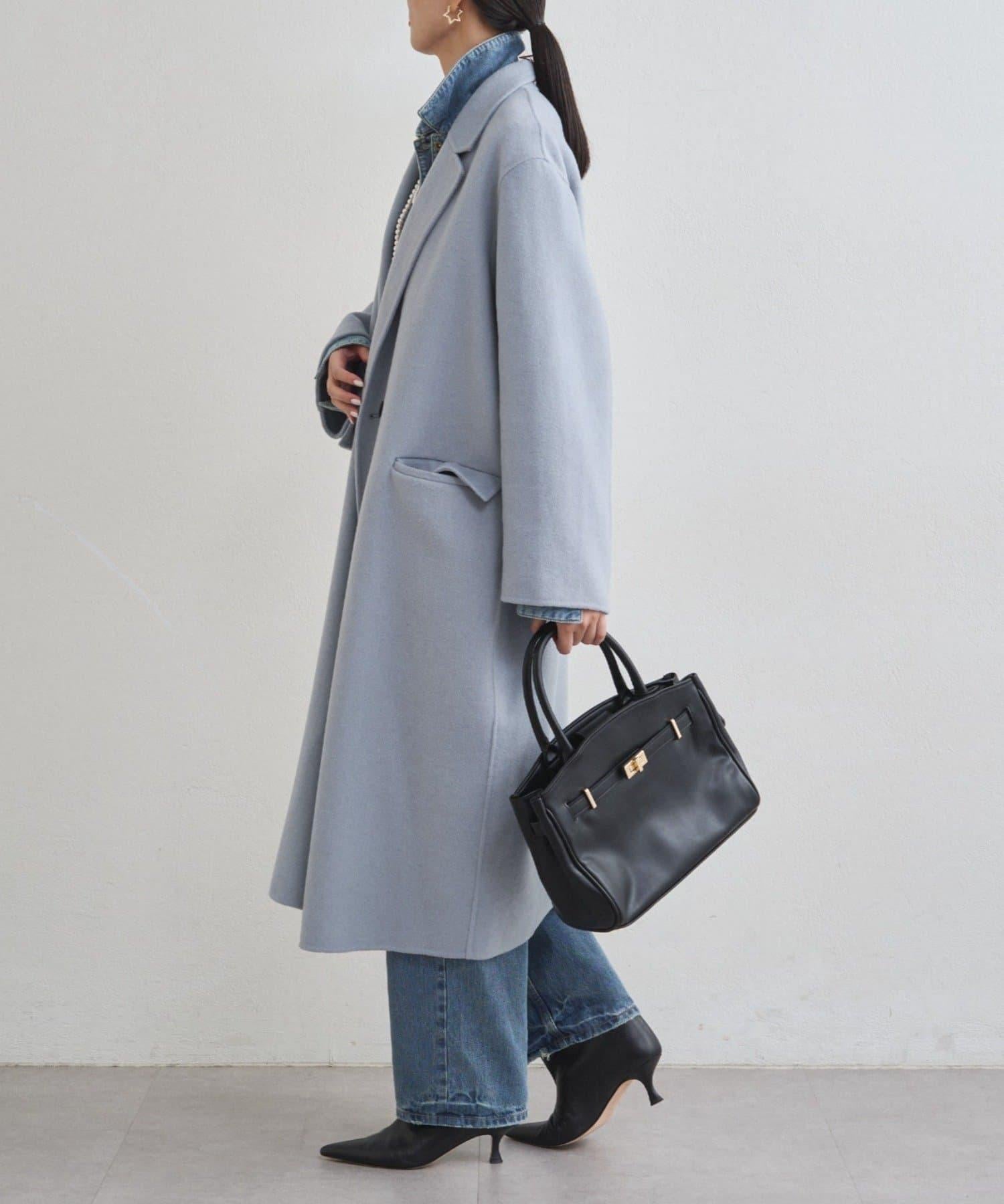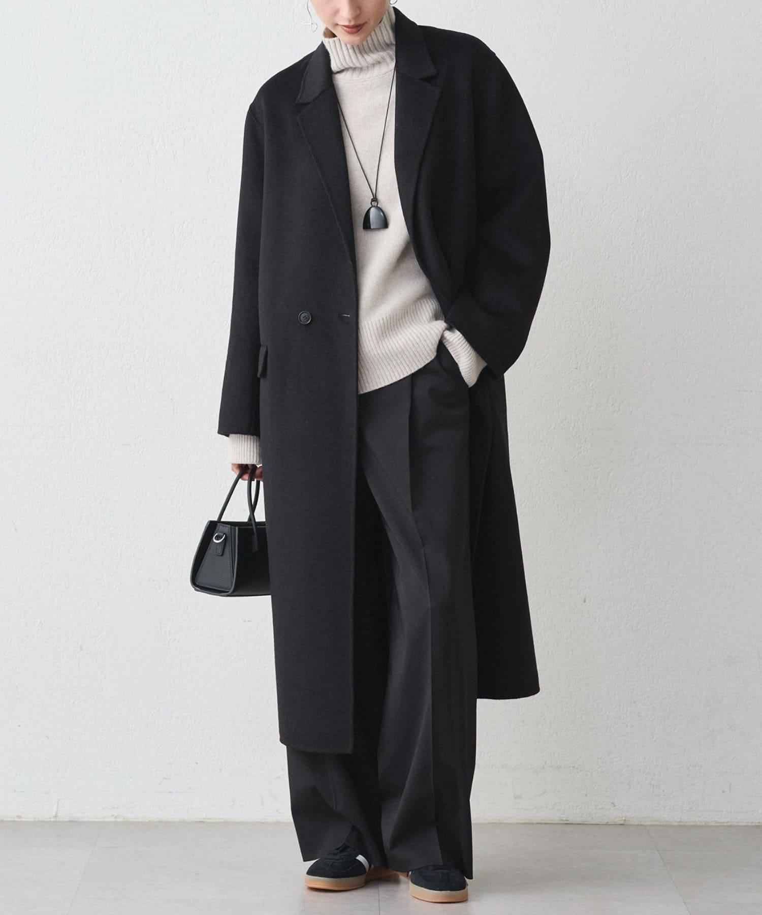 反面剪裁,將兩塊面料縫合為一體,即使沒有襯裡,也能帶來溫暖蓬鬆的穿著感受。
