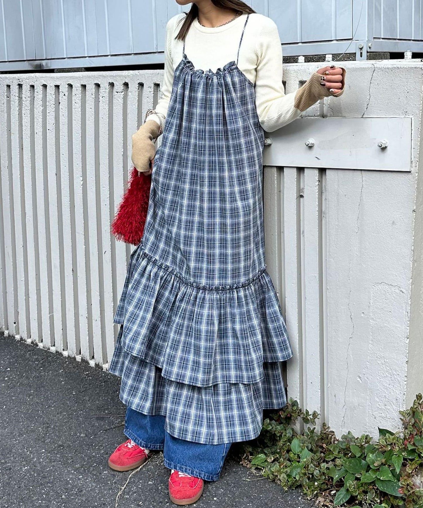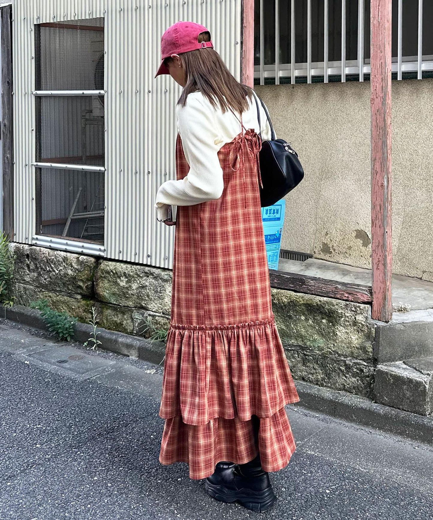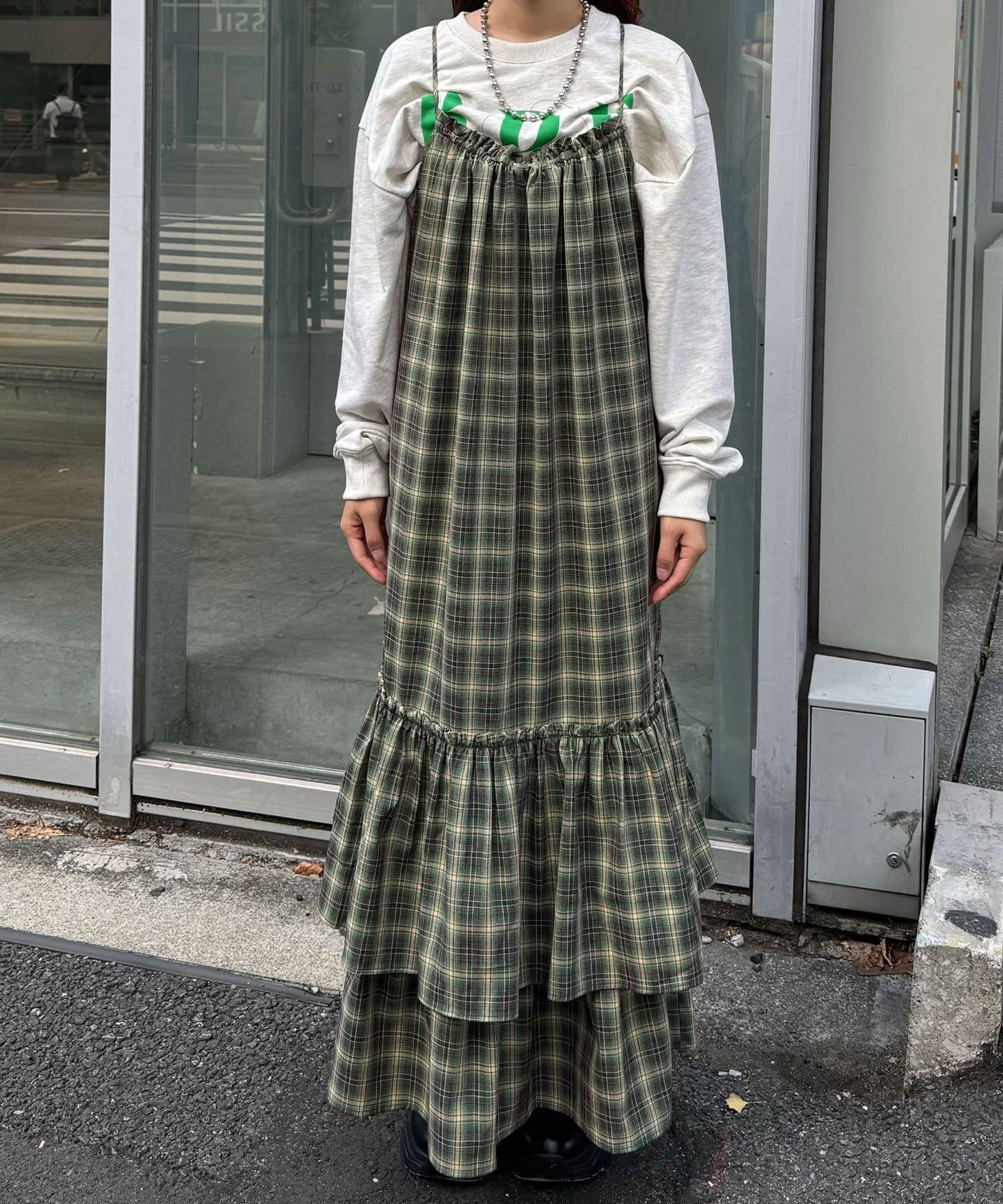 【2024AW】格紋荷葉邊吊帶 ONE PIECE