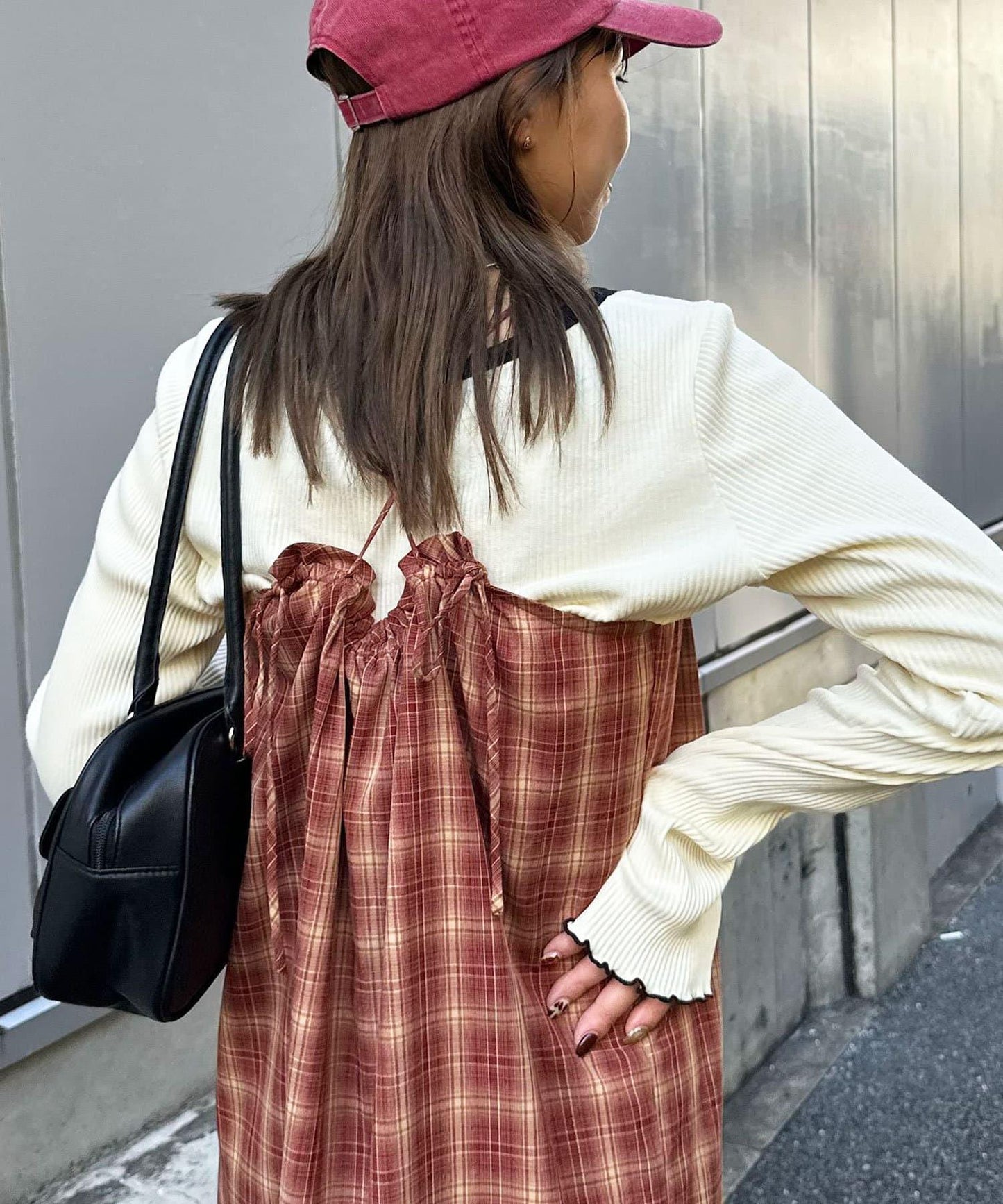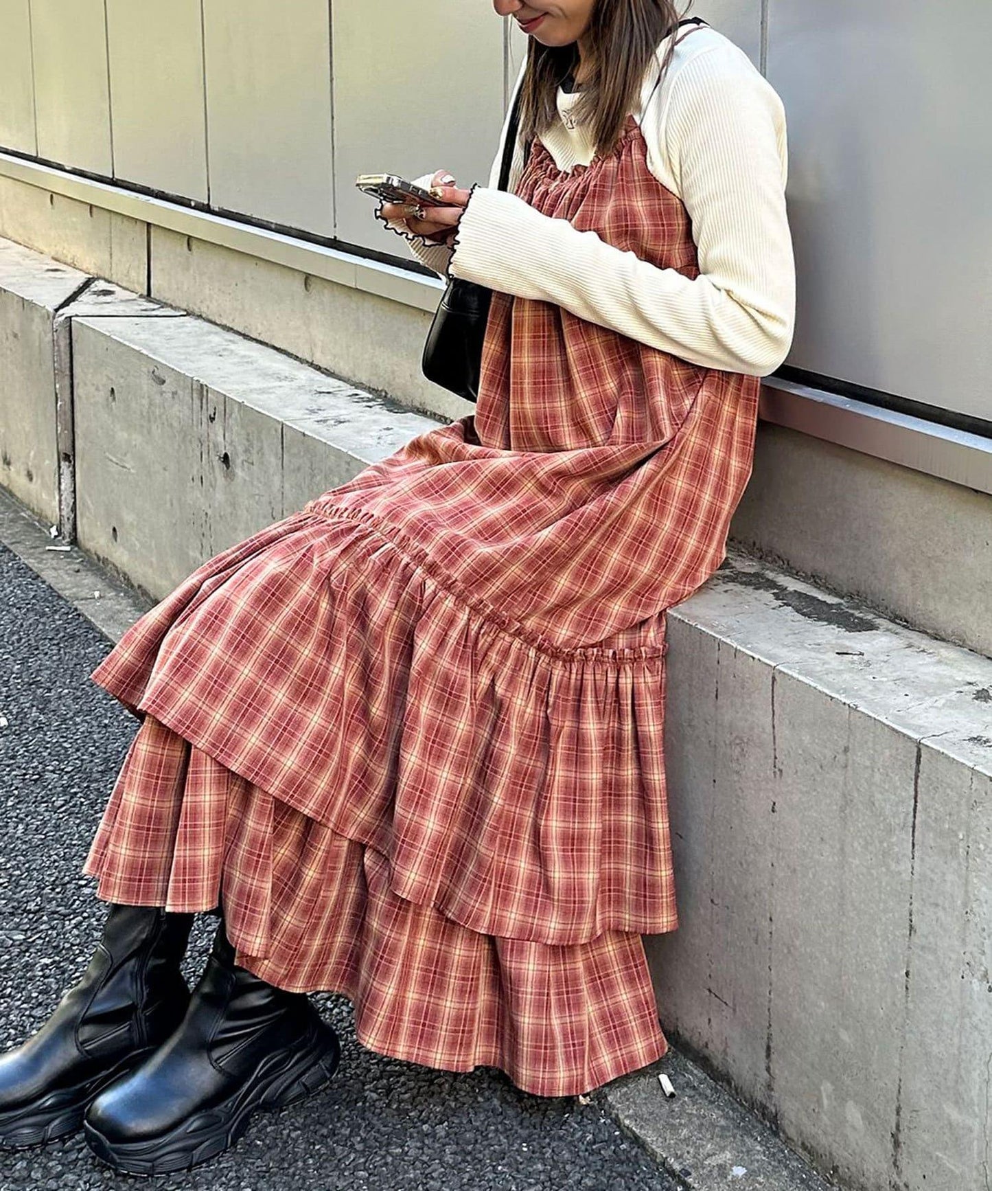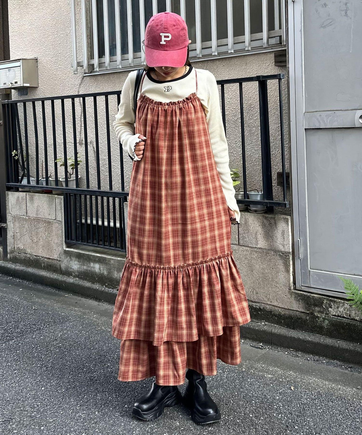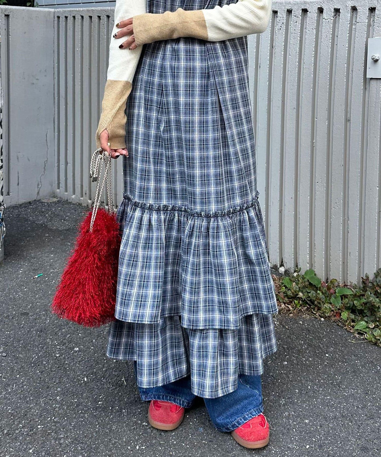【2024AW】格紋荷葉邊吊帶 ONE PIECE