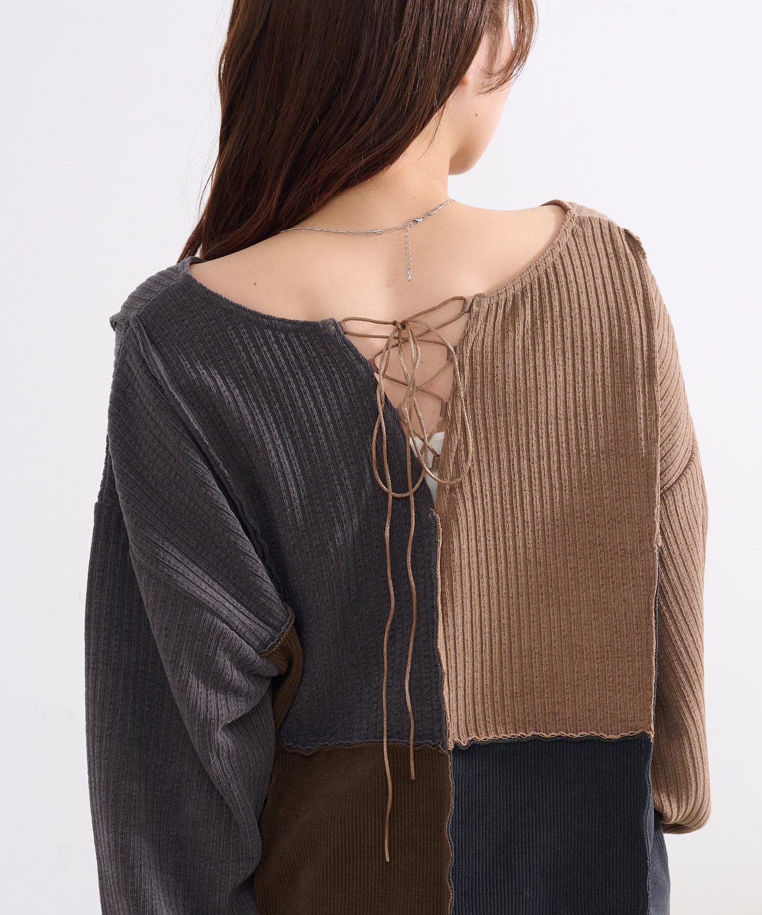 將羅紋面料與拼接設計相結合的趣味剪接。