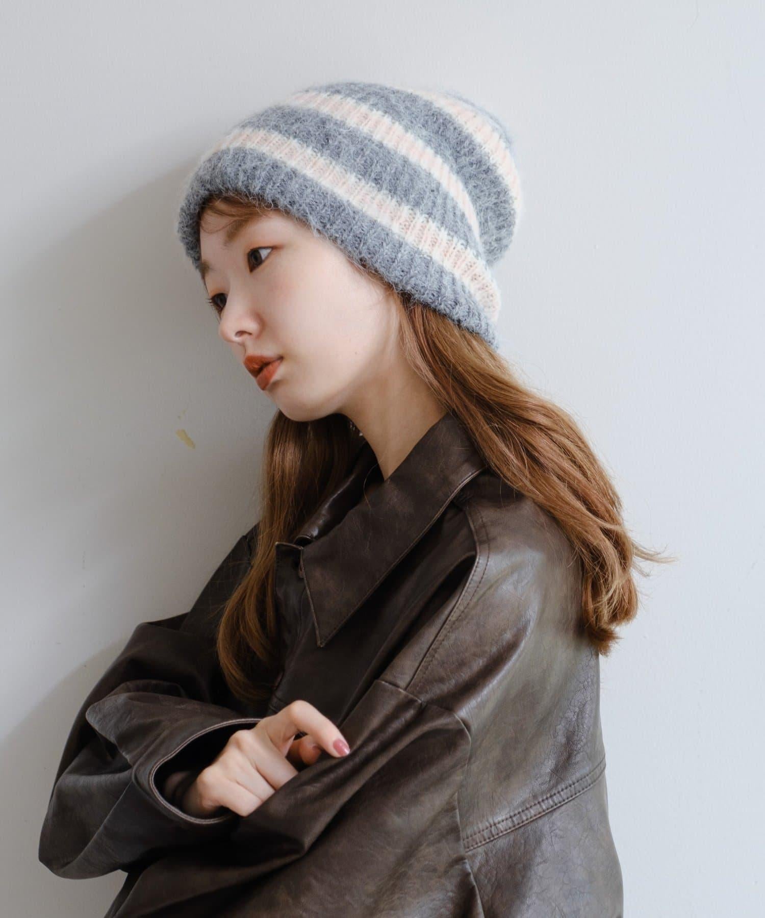用柔軟的毛線編織的保暖鑲邊針織帽。