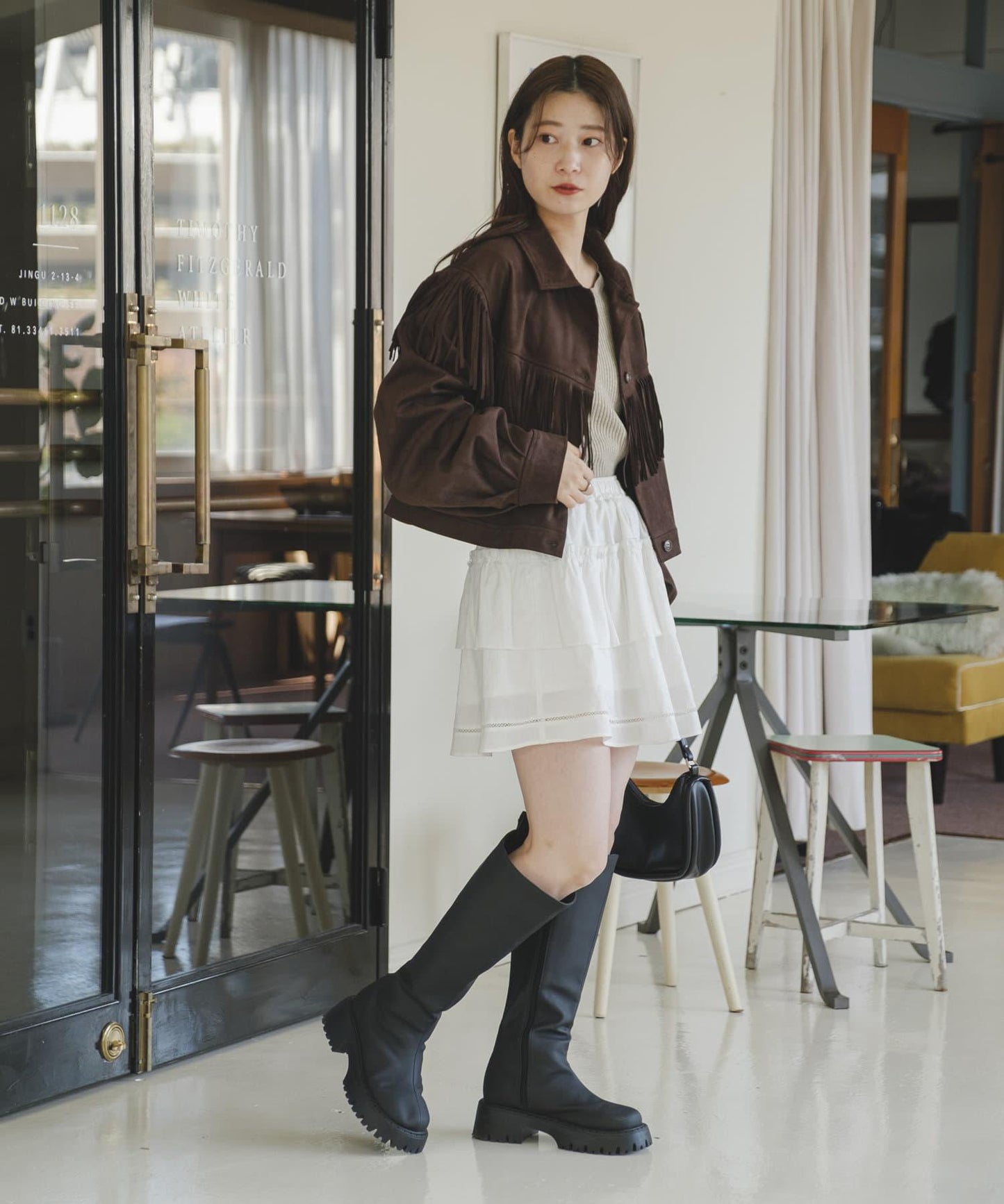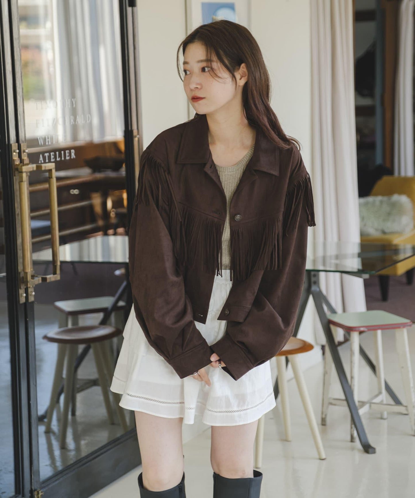 【2025SS/內襯有】絨麵皮流蘇夾克