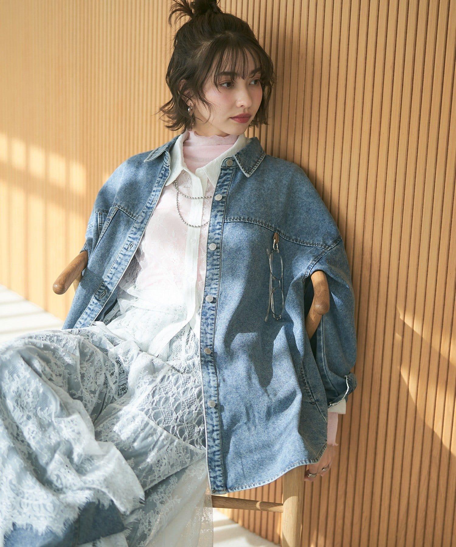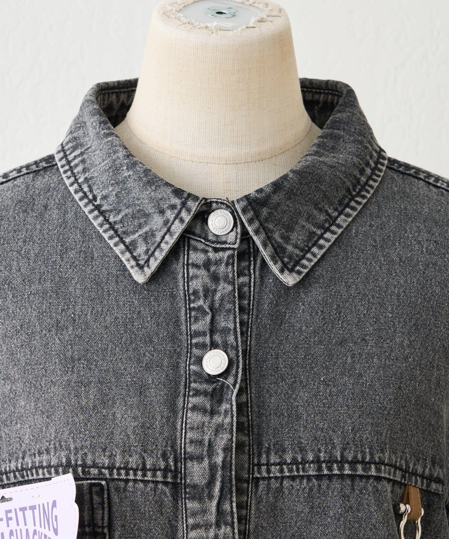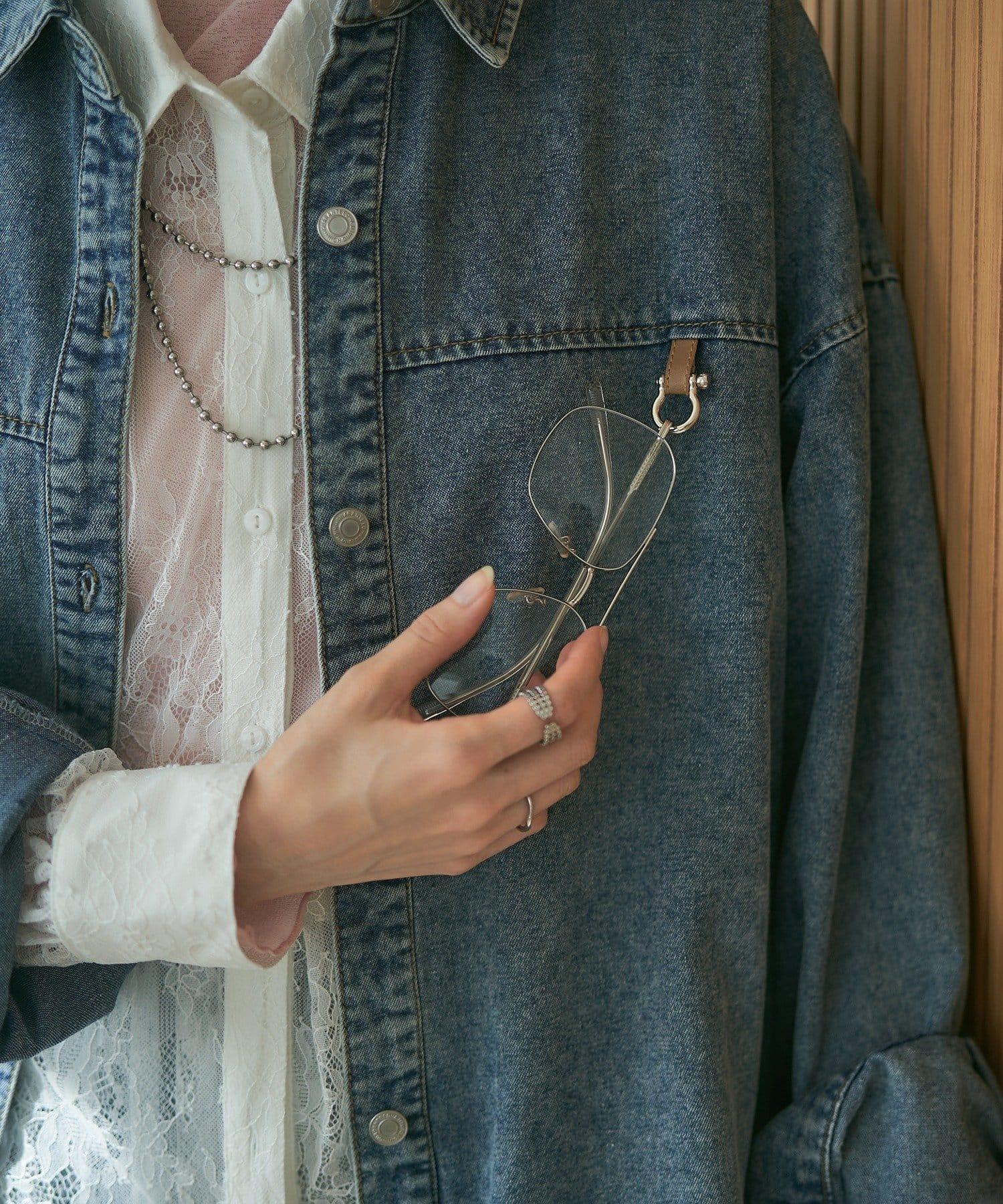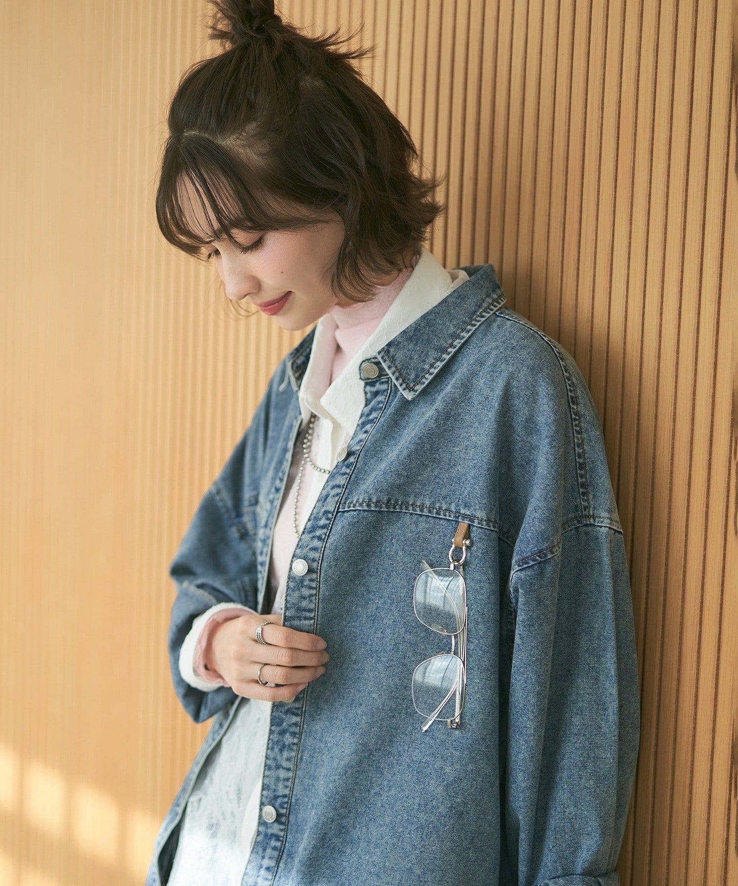 此款上衣可搭配同材質的牛仔長褲,打造套裝造型。