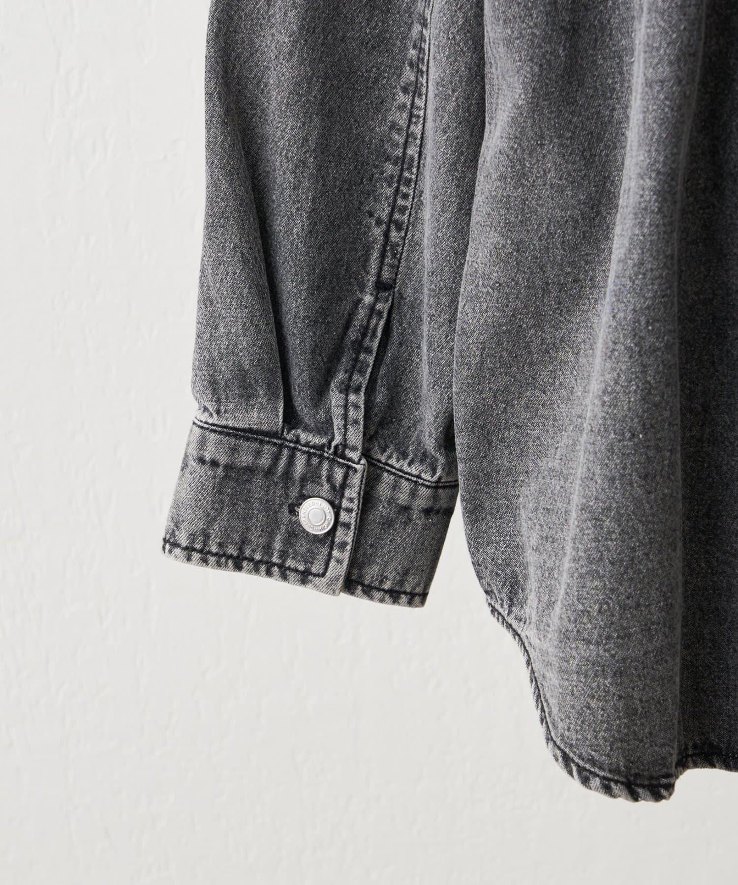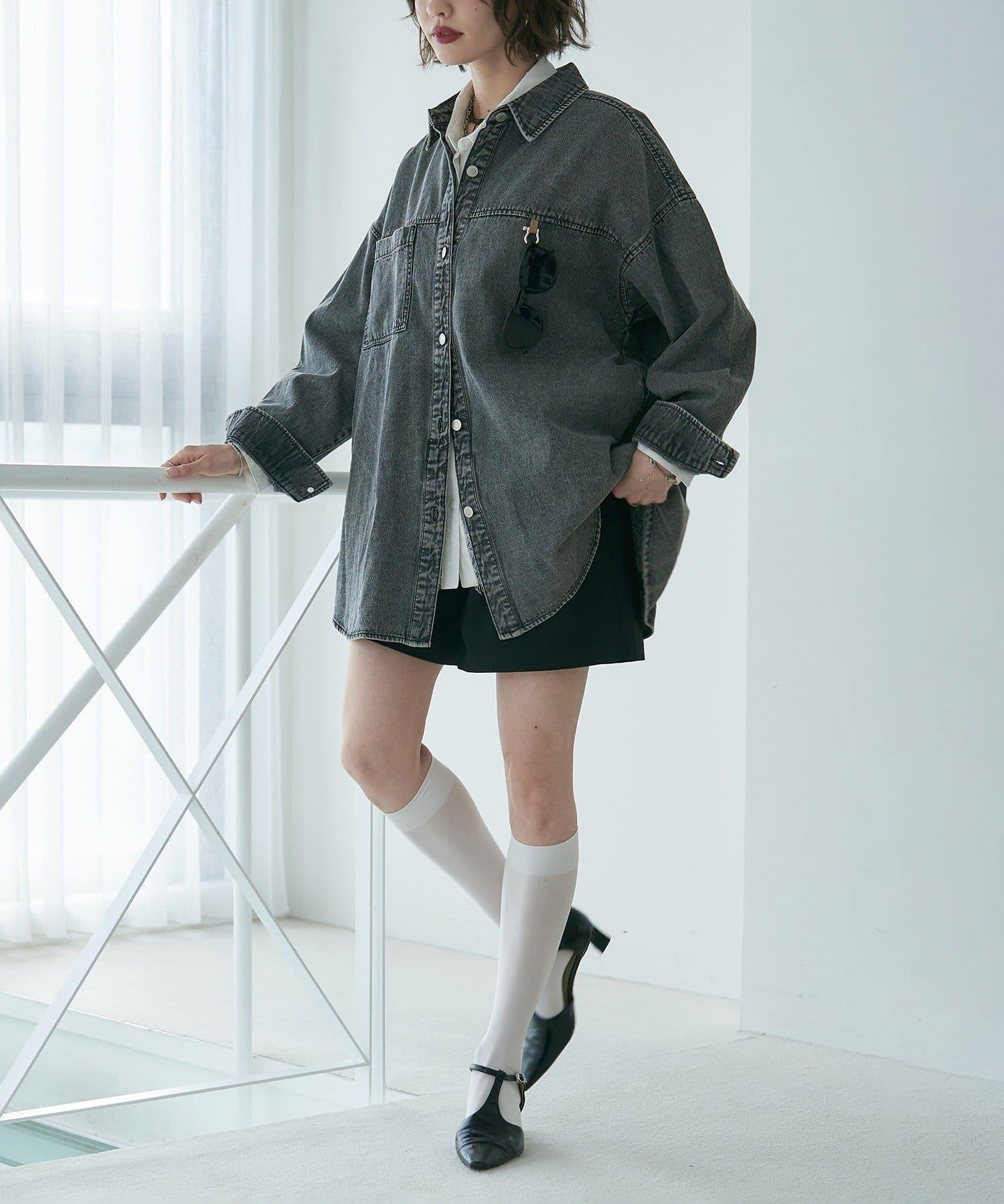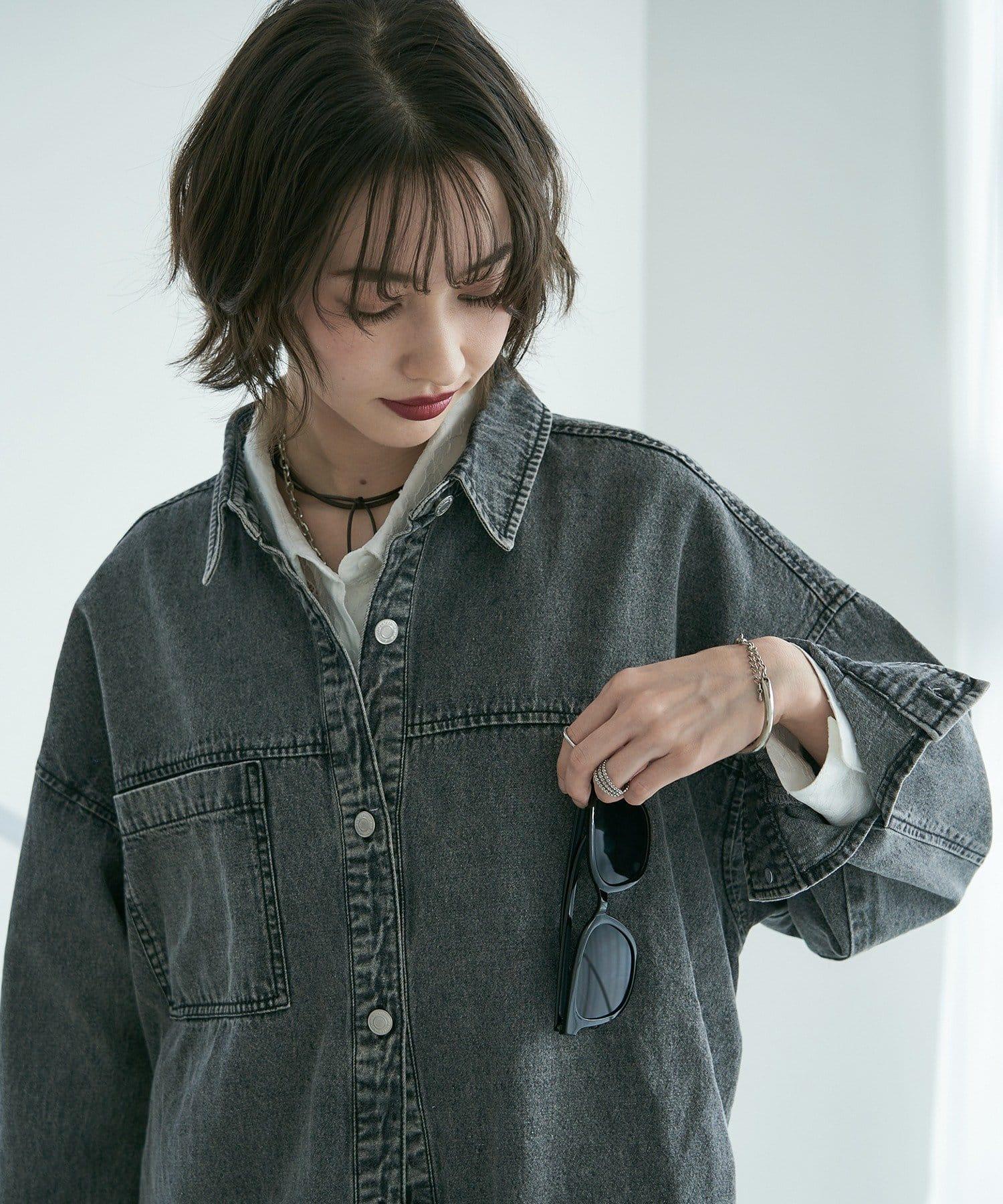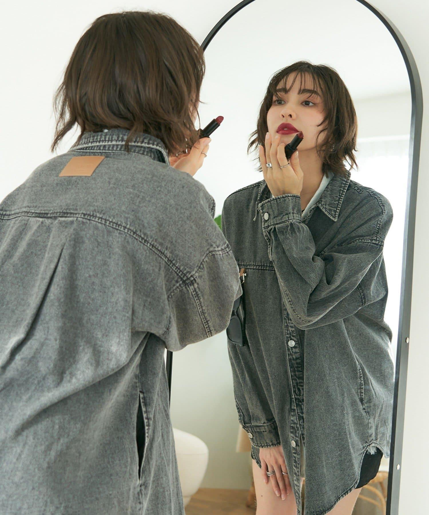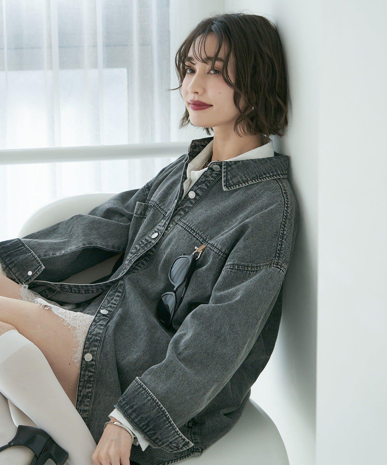 此款上衣可搭配同材質的牛仔長褲,打造套裝造型。