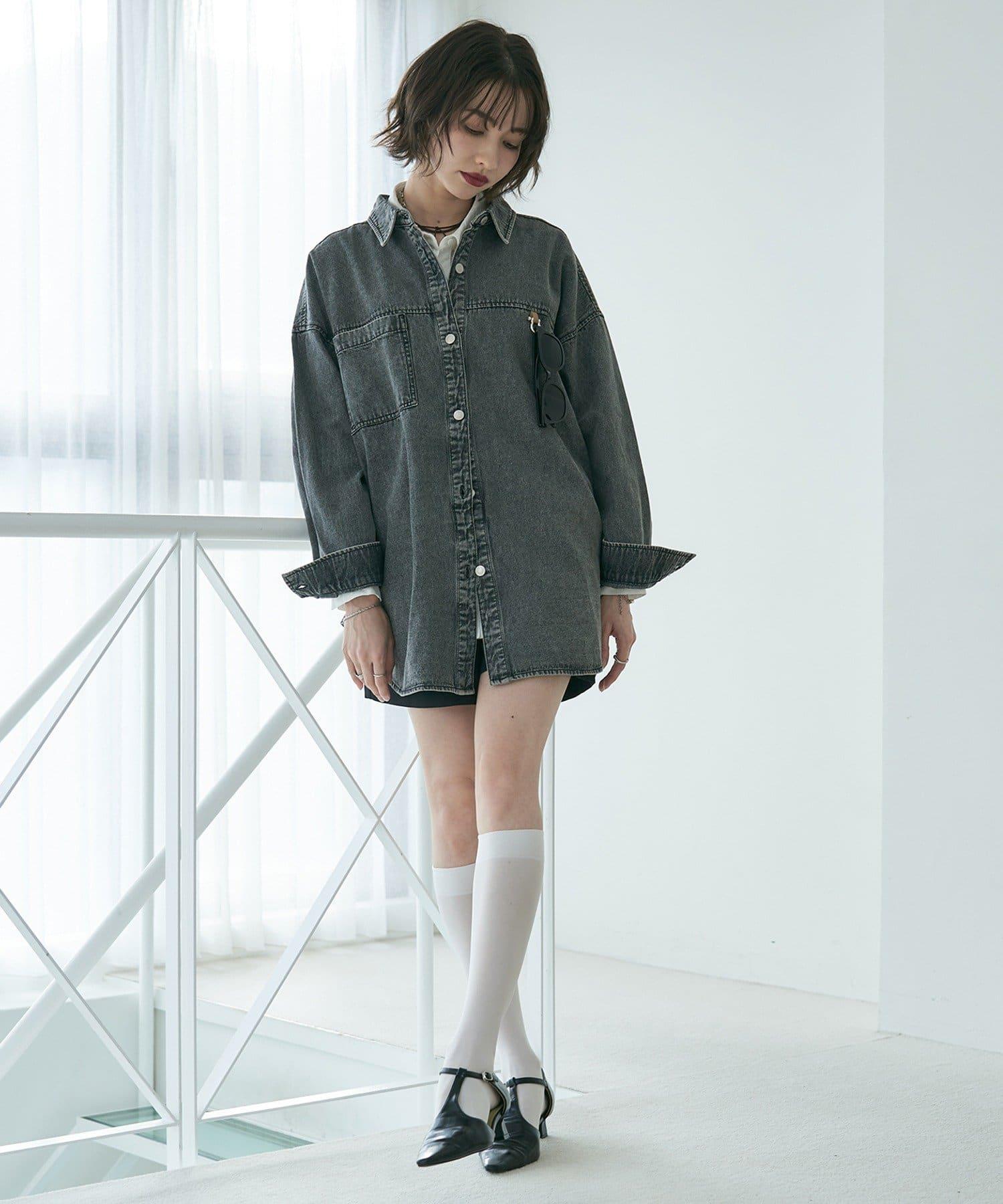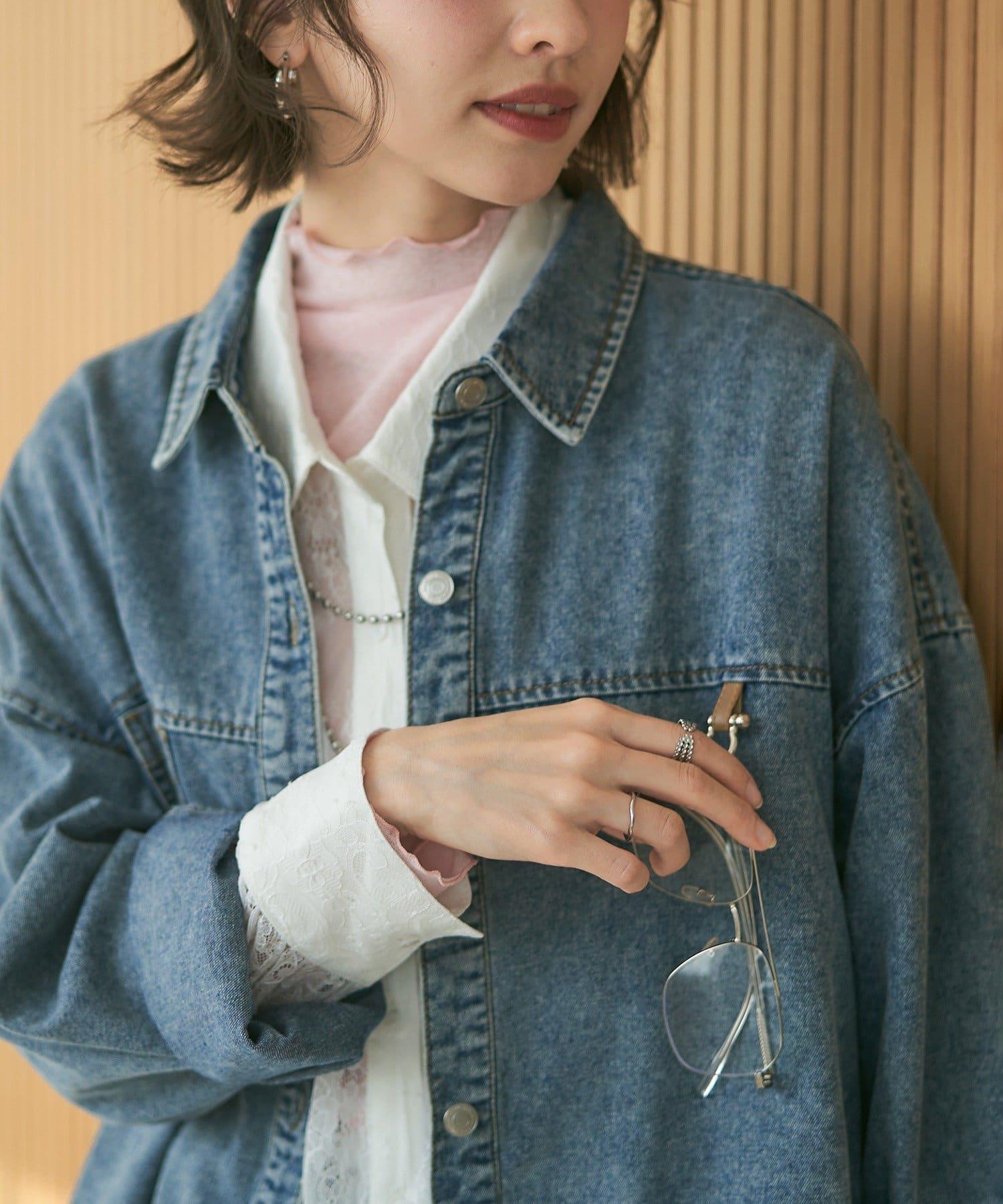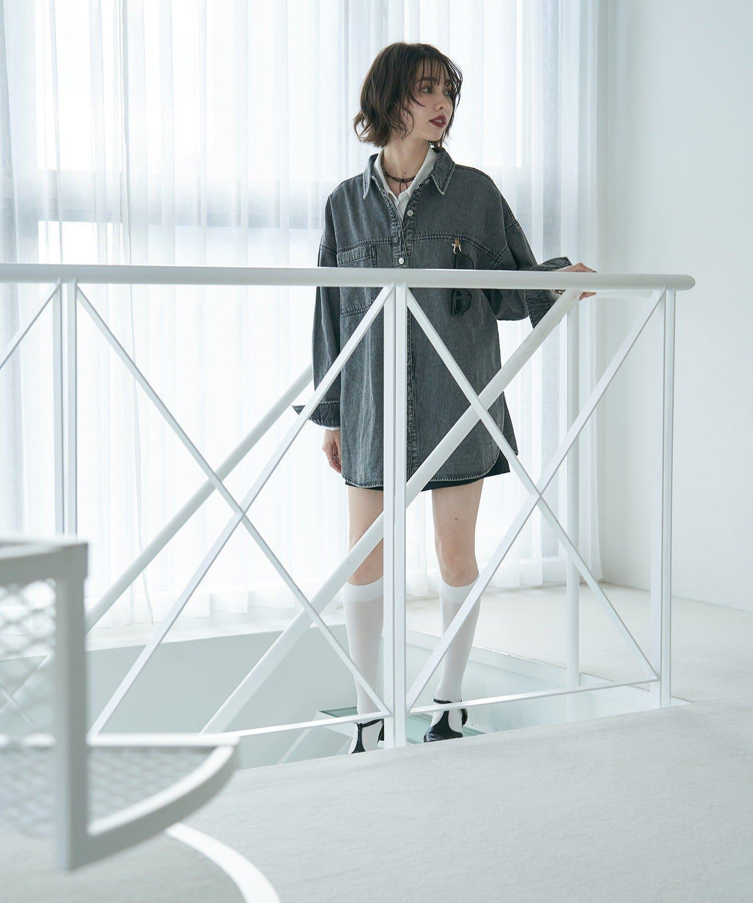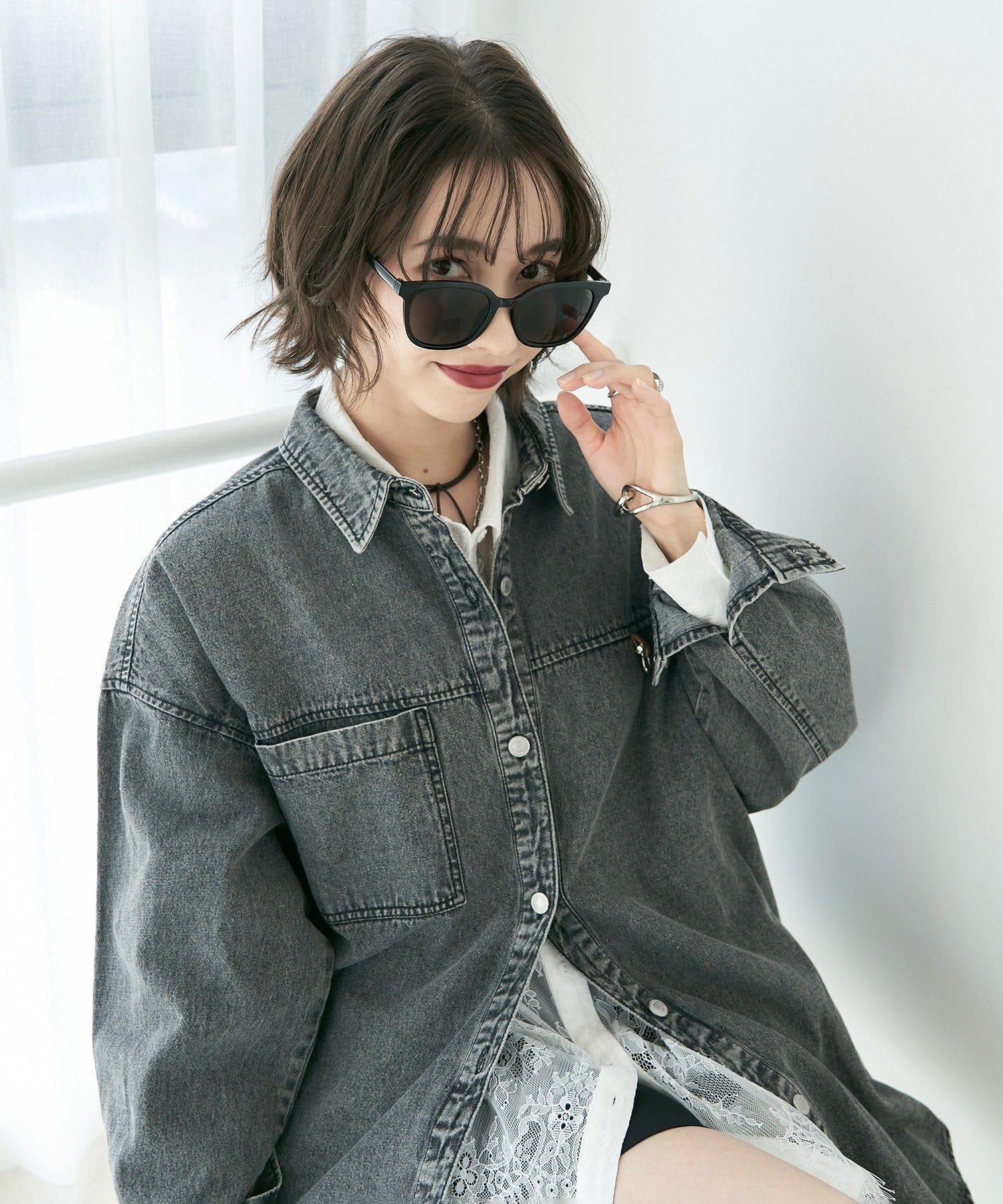 此款上衣可搭配同材質的牛仔長褲,打造套裝造型。