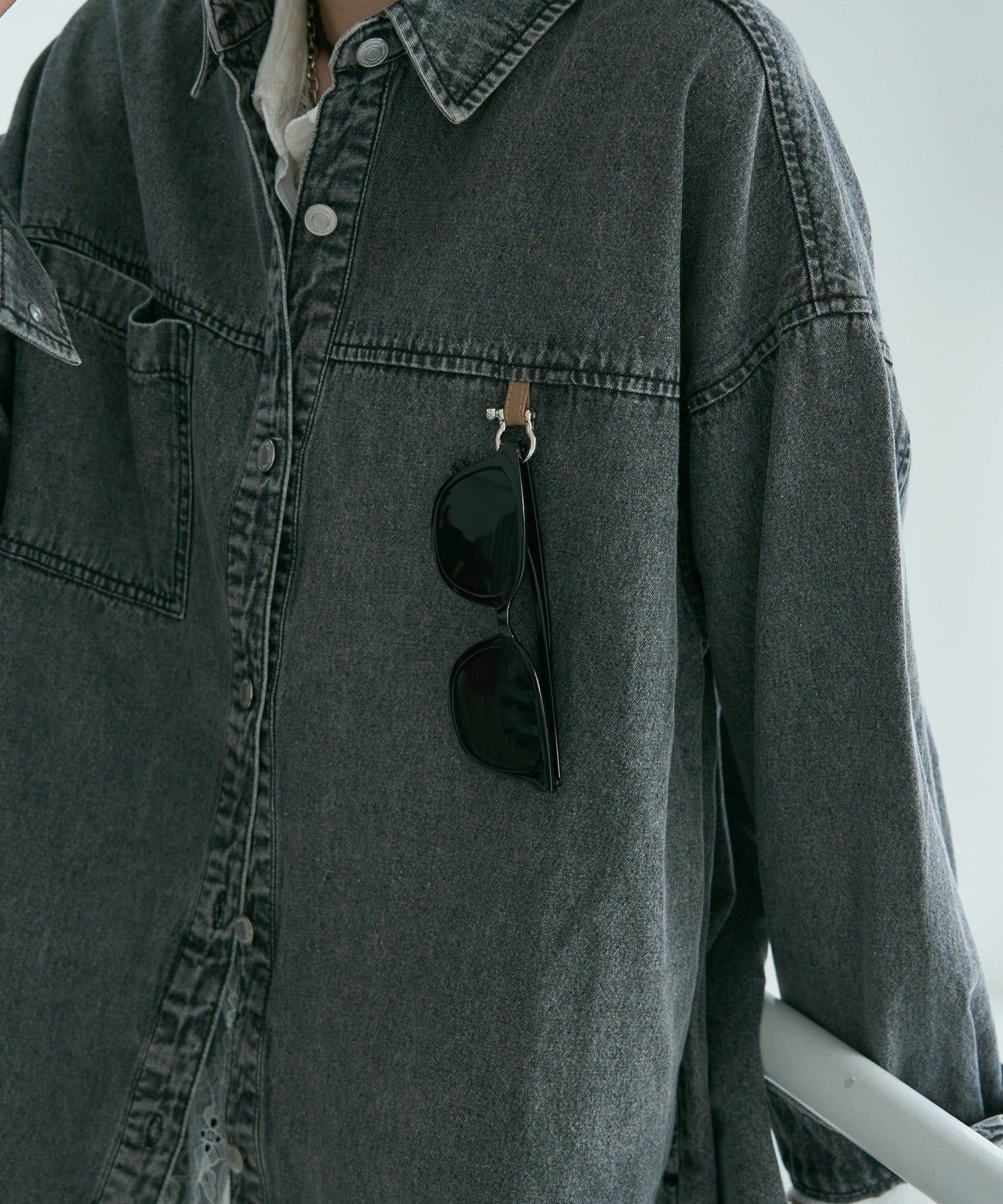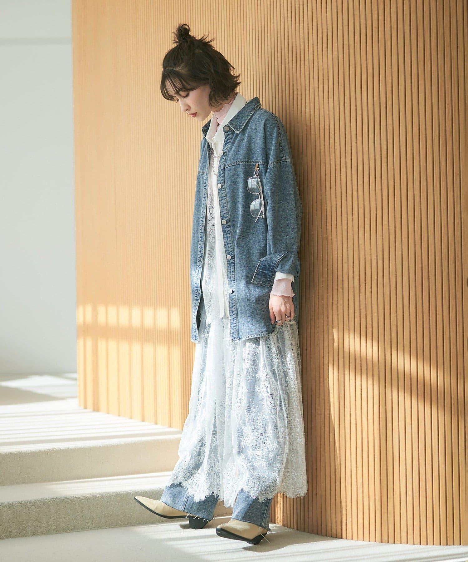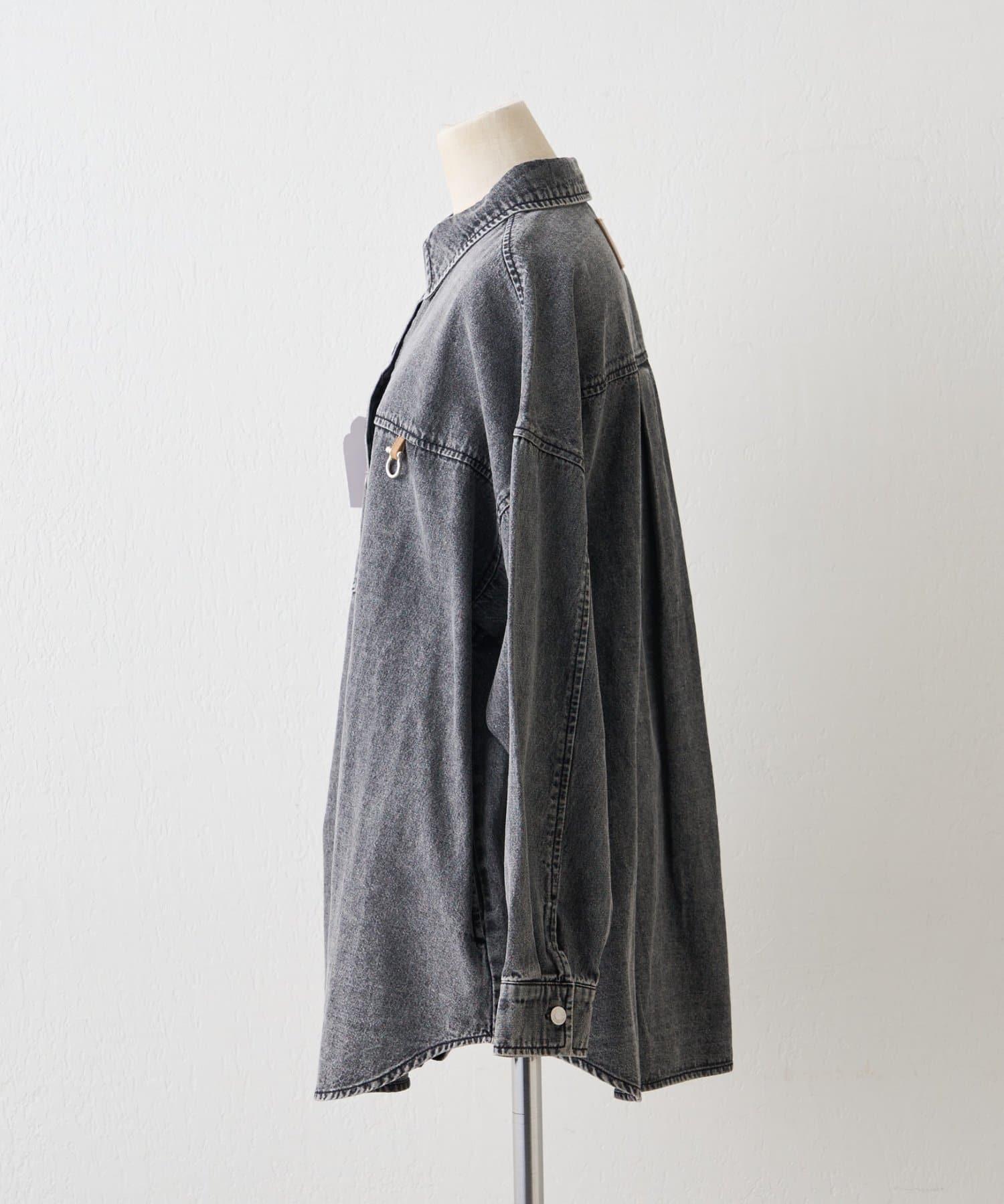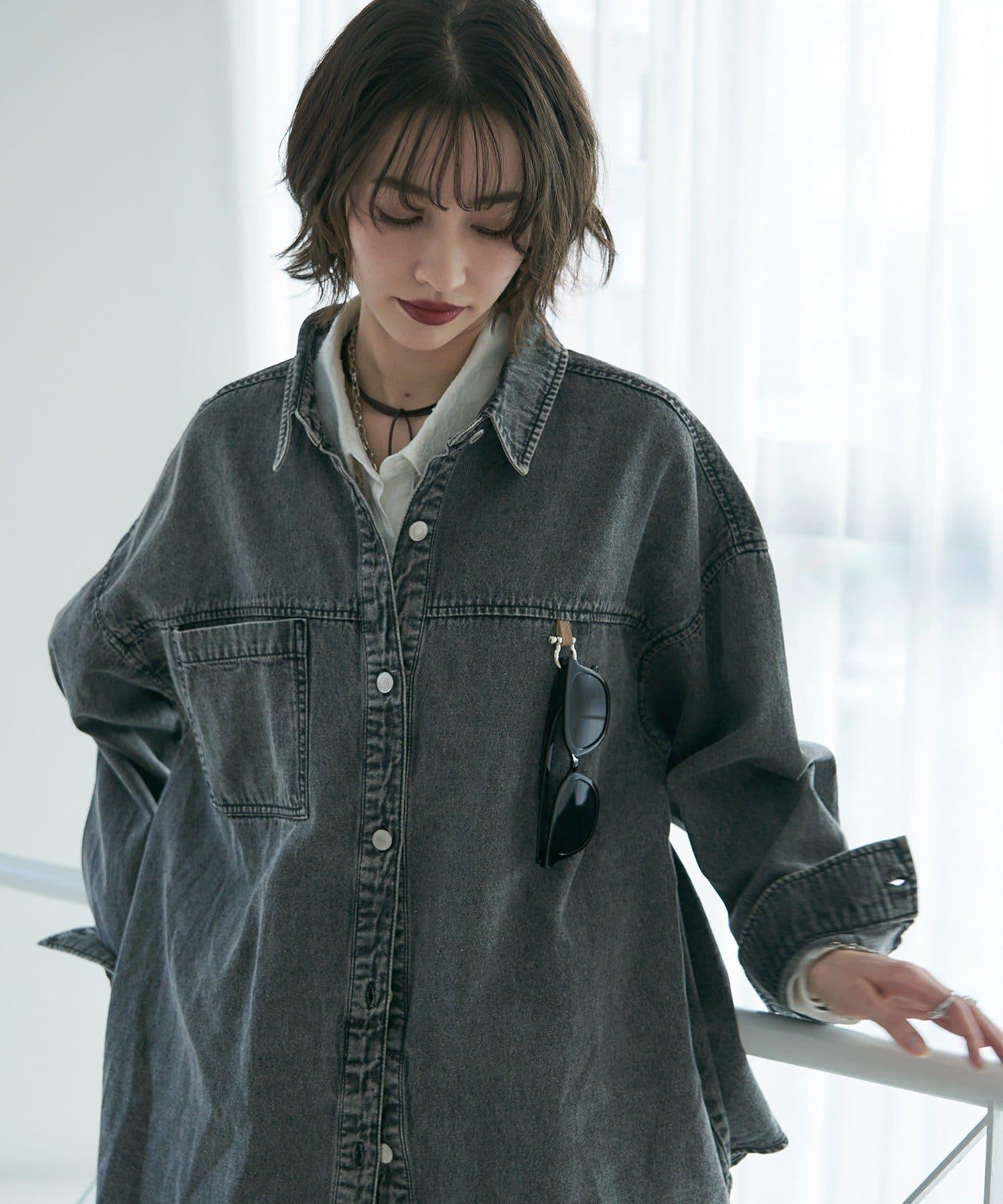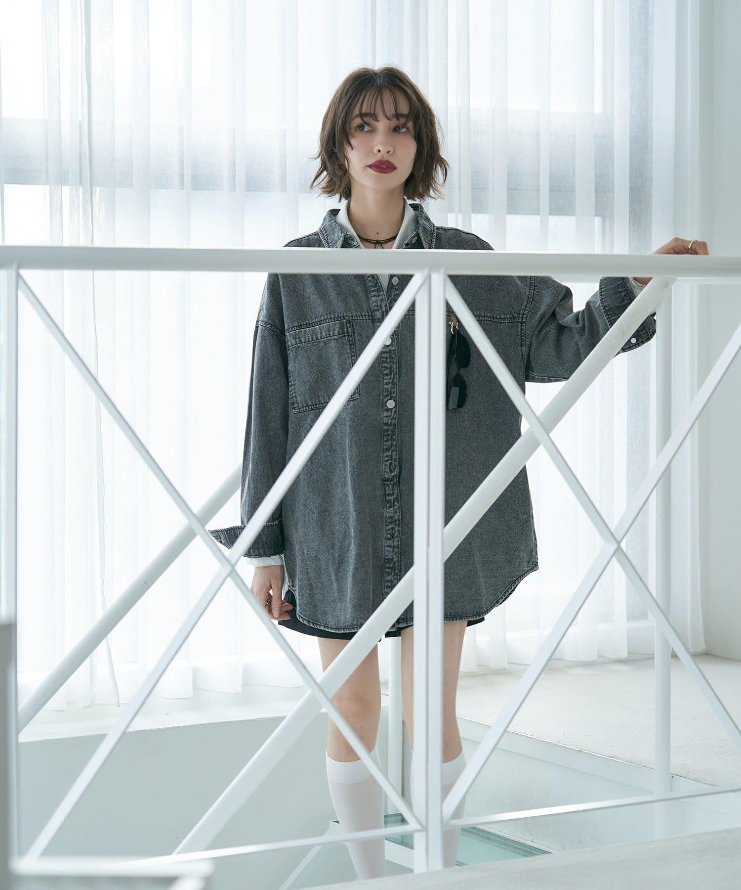 此款上衣可搭配同材質的牛仔長褲,打造套裝造型。