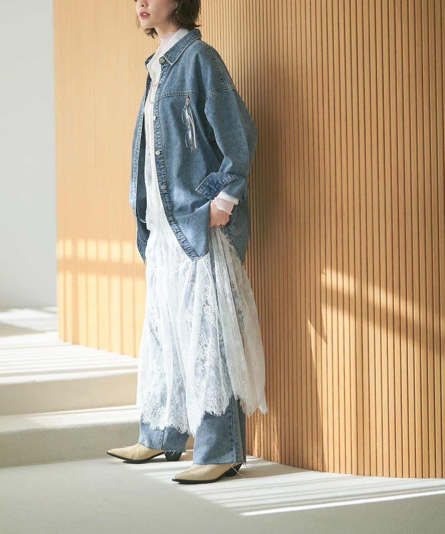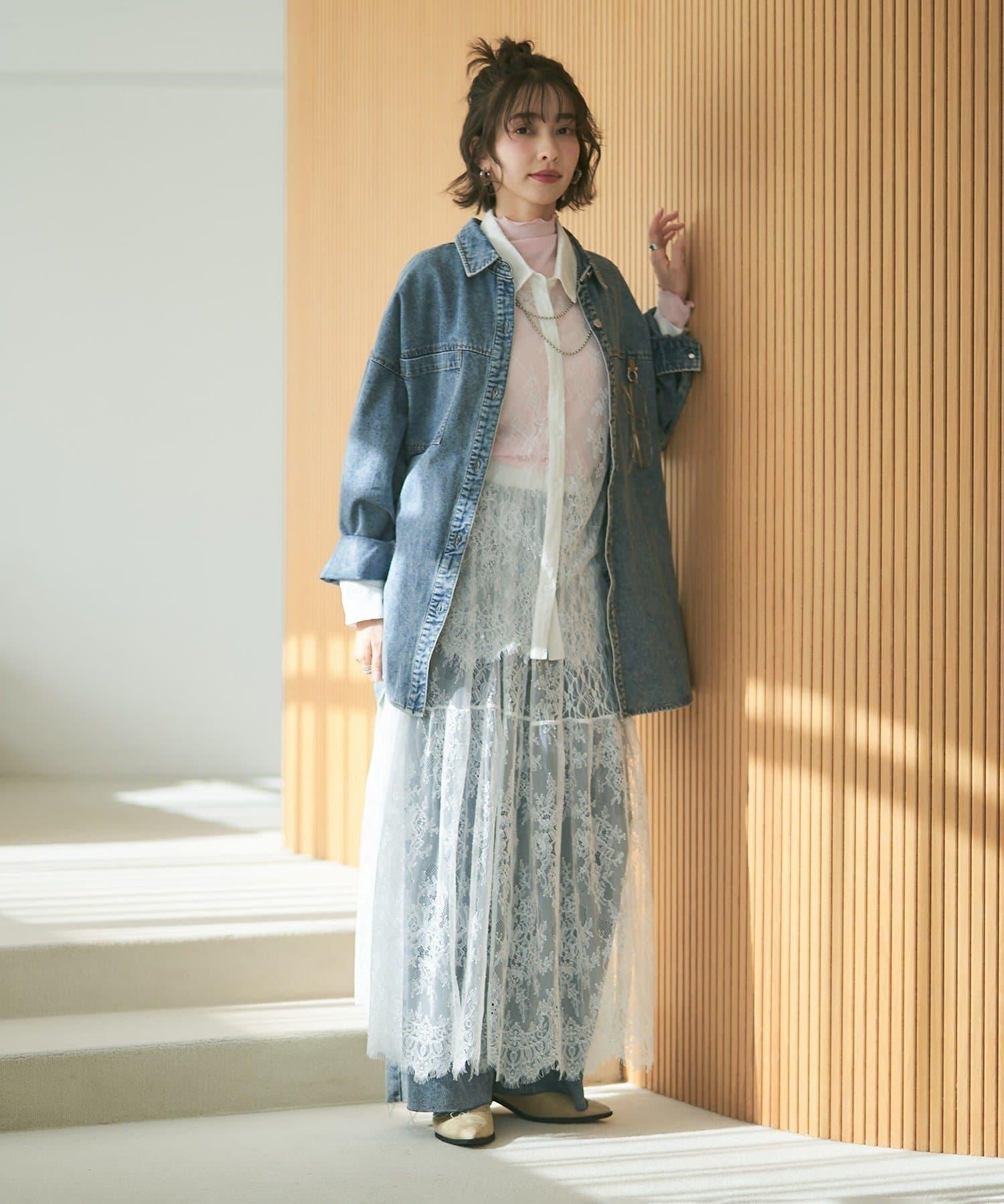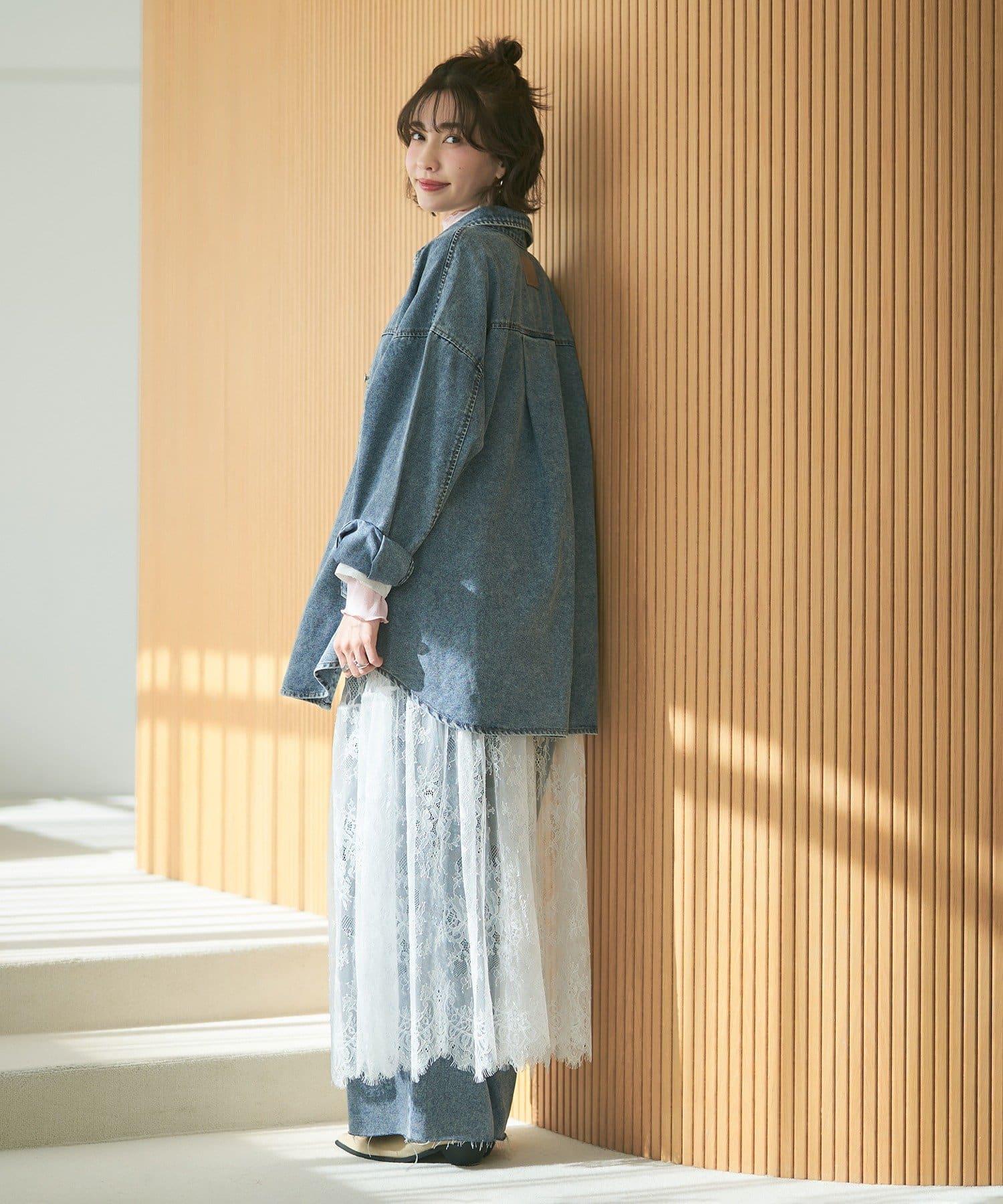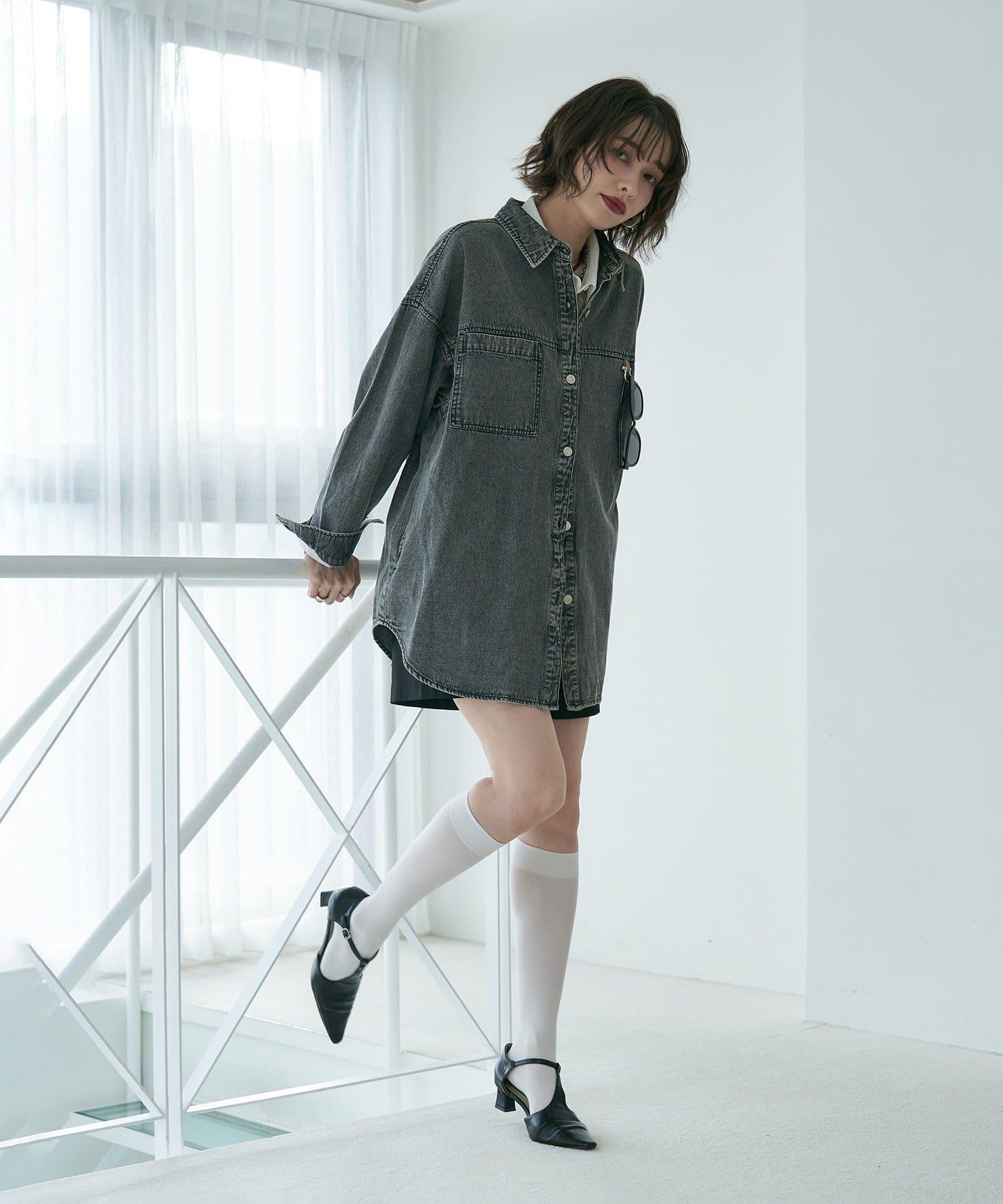 此款上衣可搭配同材質的牛仔長褲,打造套裝造型。