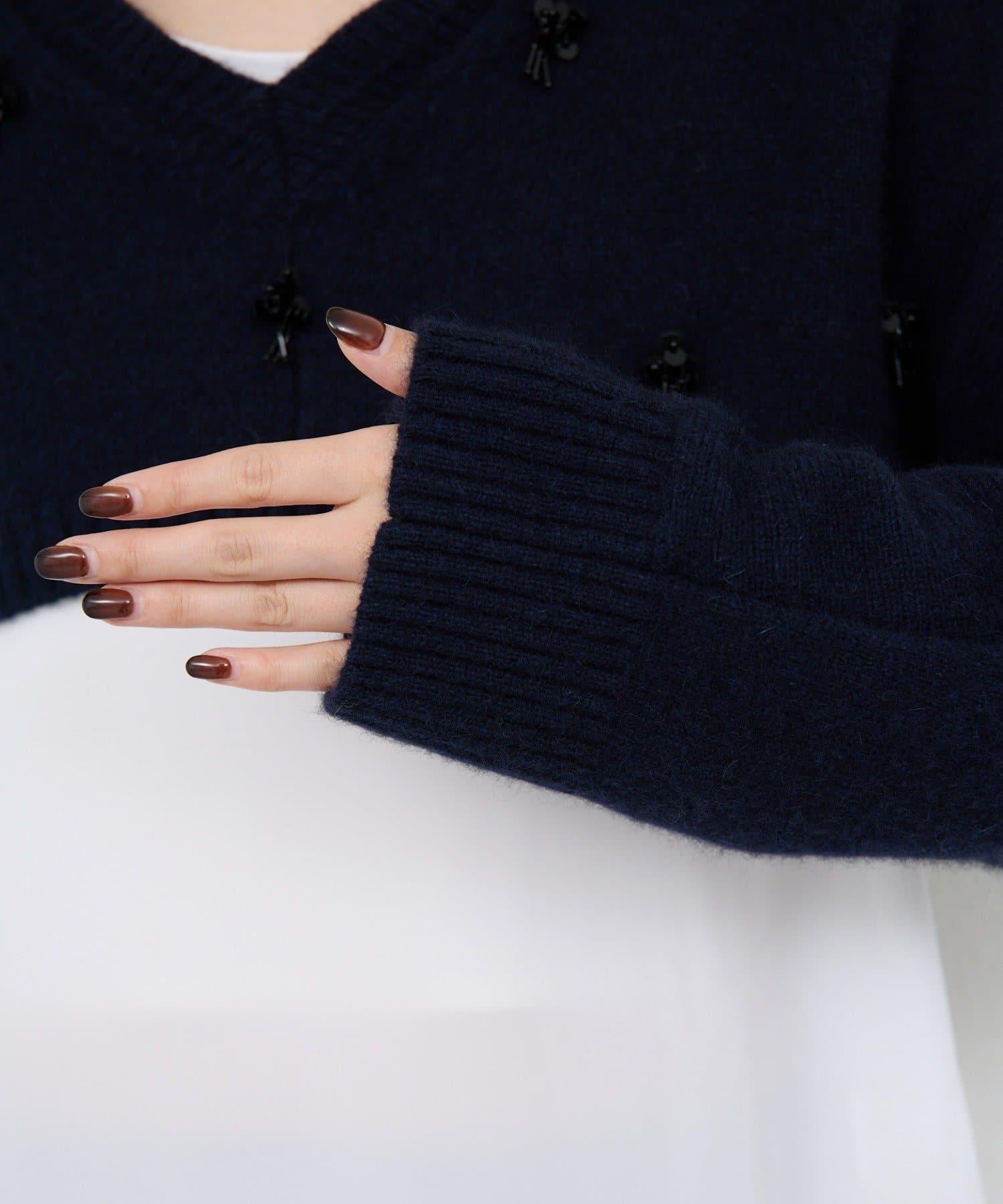 【25週年紀念款】寶石裝飾短款V領針織衫
