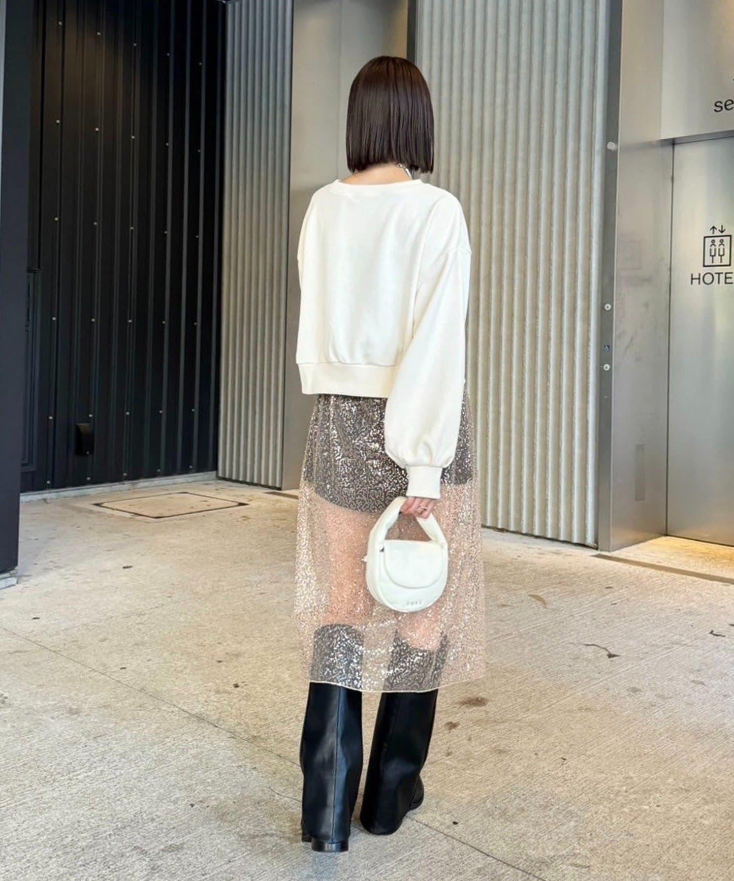 這款衛衣給人休閒的印象,所以搭配可愛的裙子也很可愛♡。