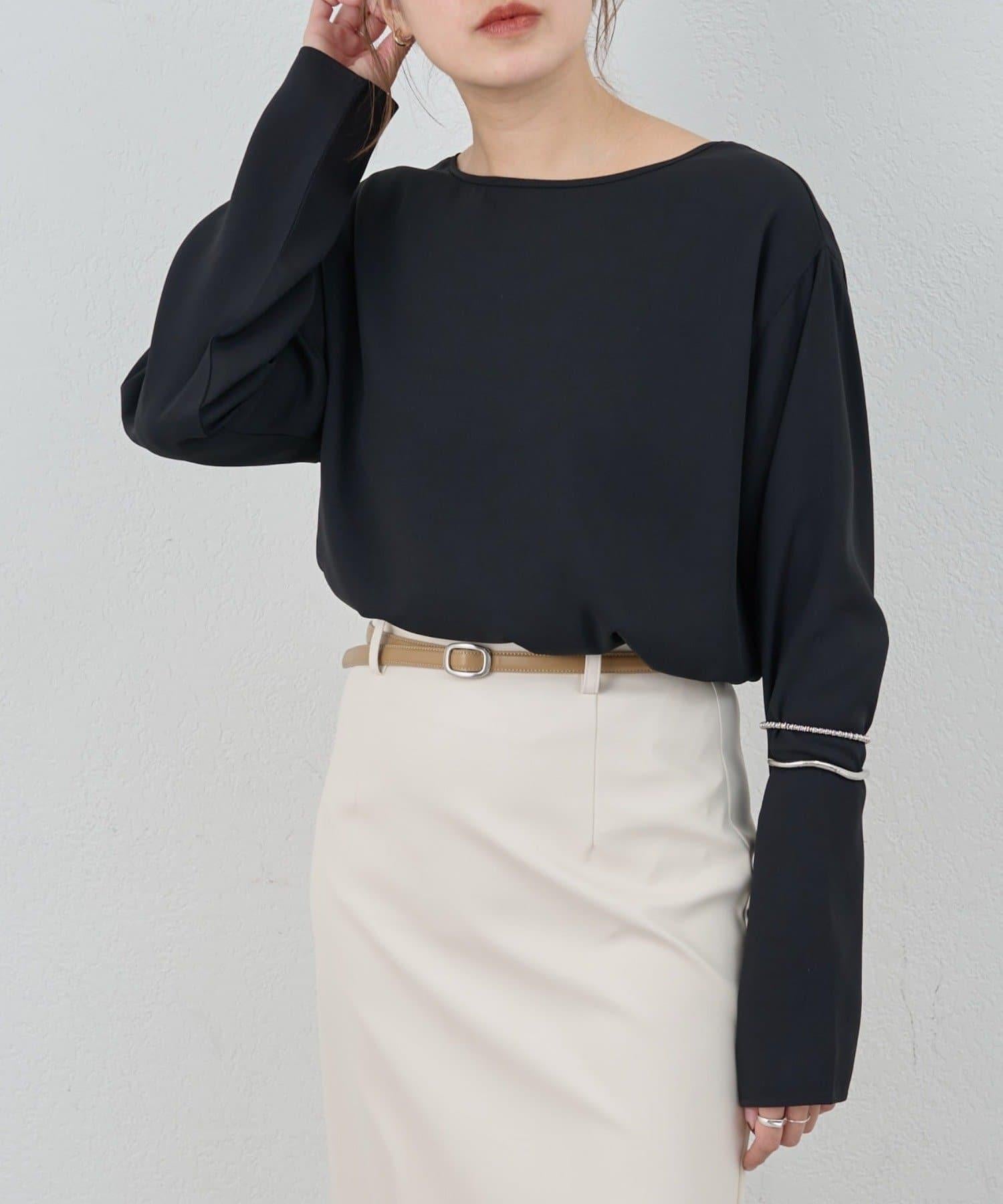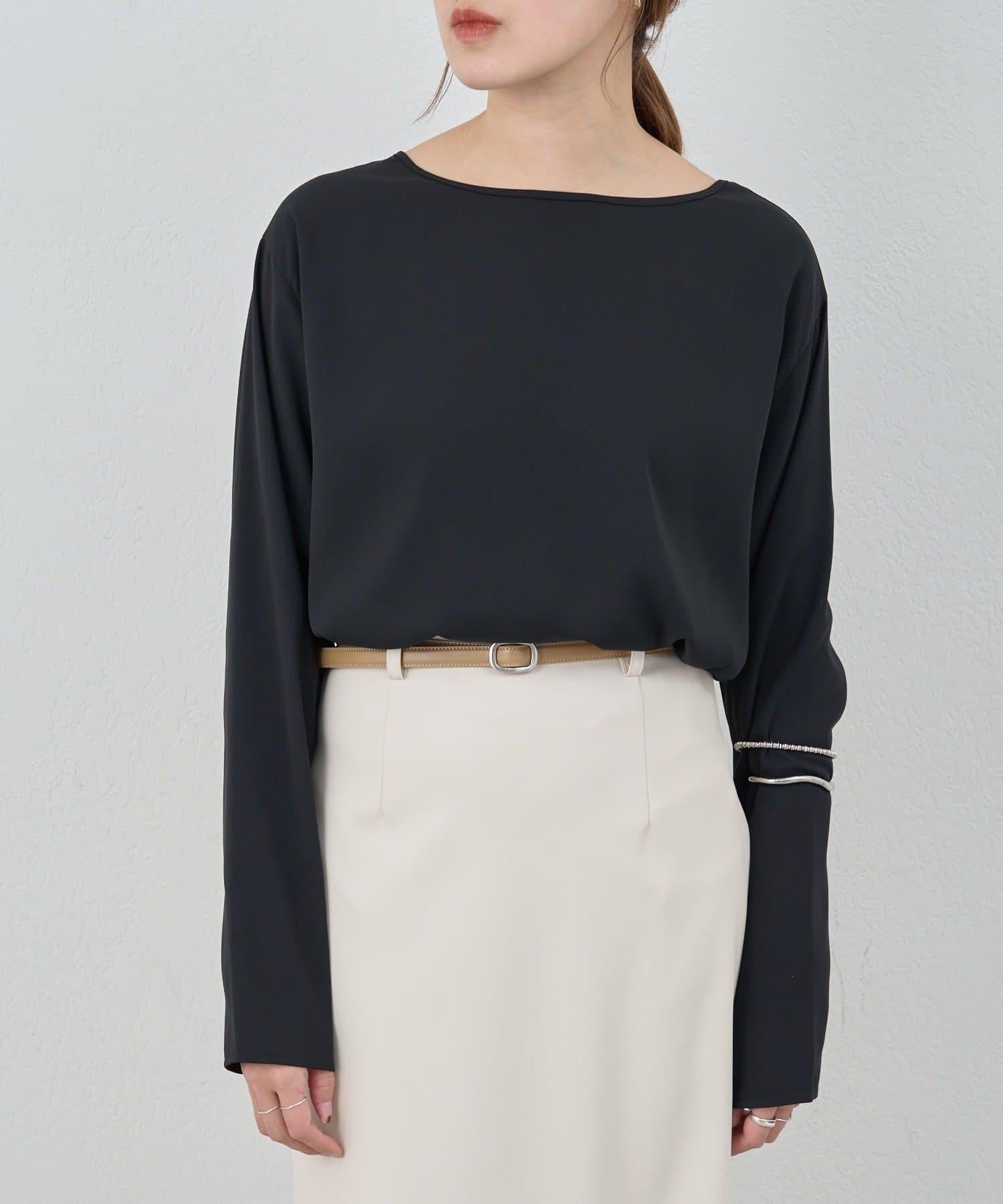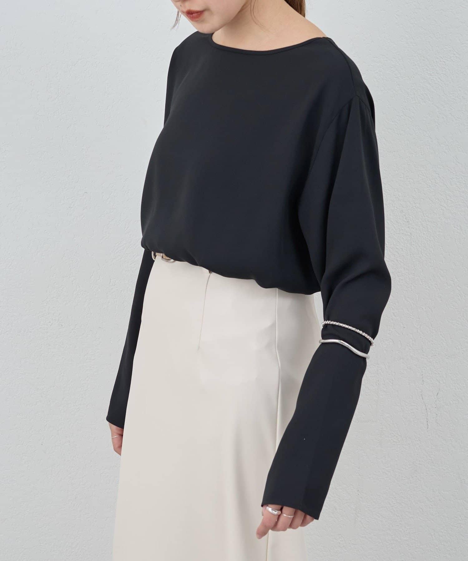 輕柔的船形領口設計增添了女性的柔美氣息,並能很好地展現肩部線條。