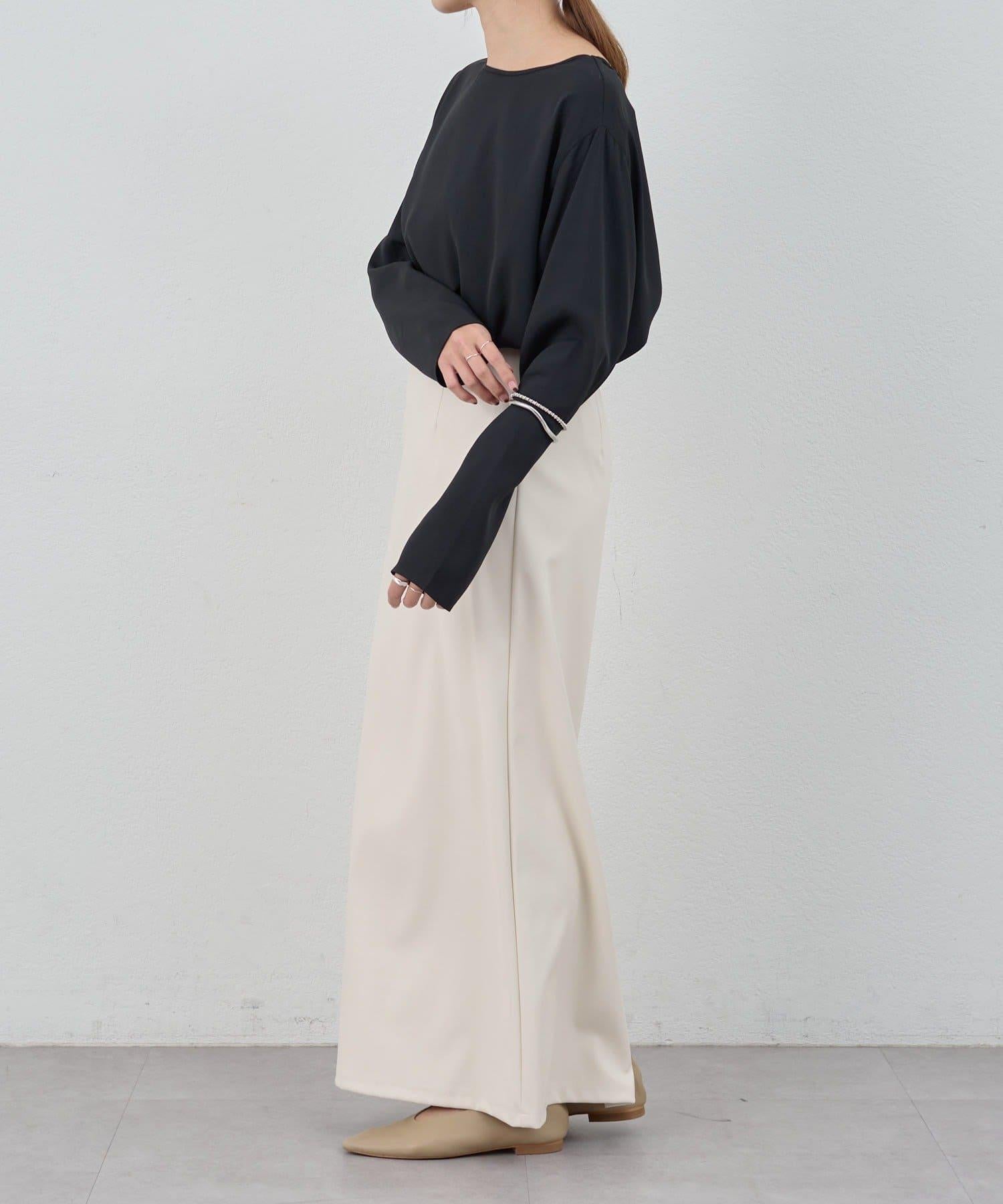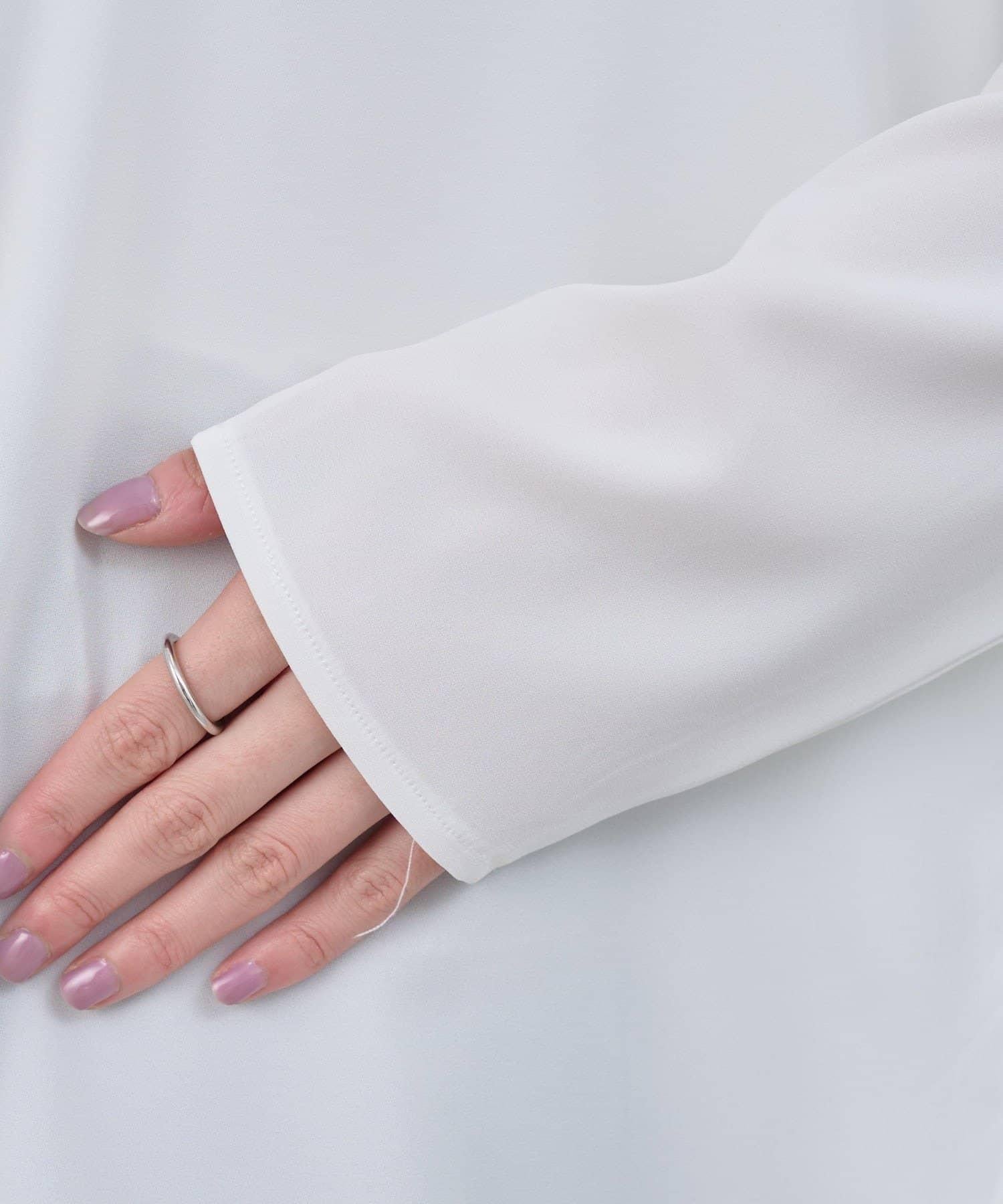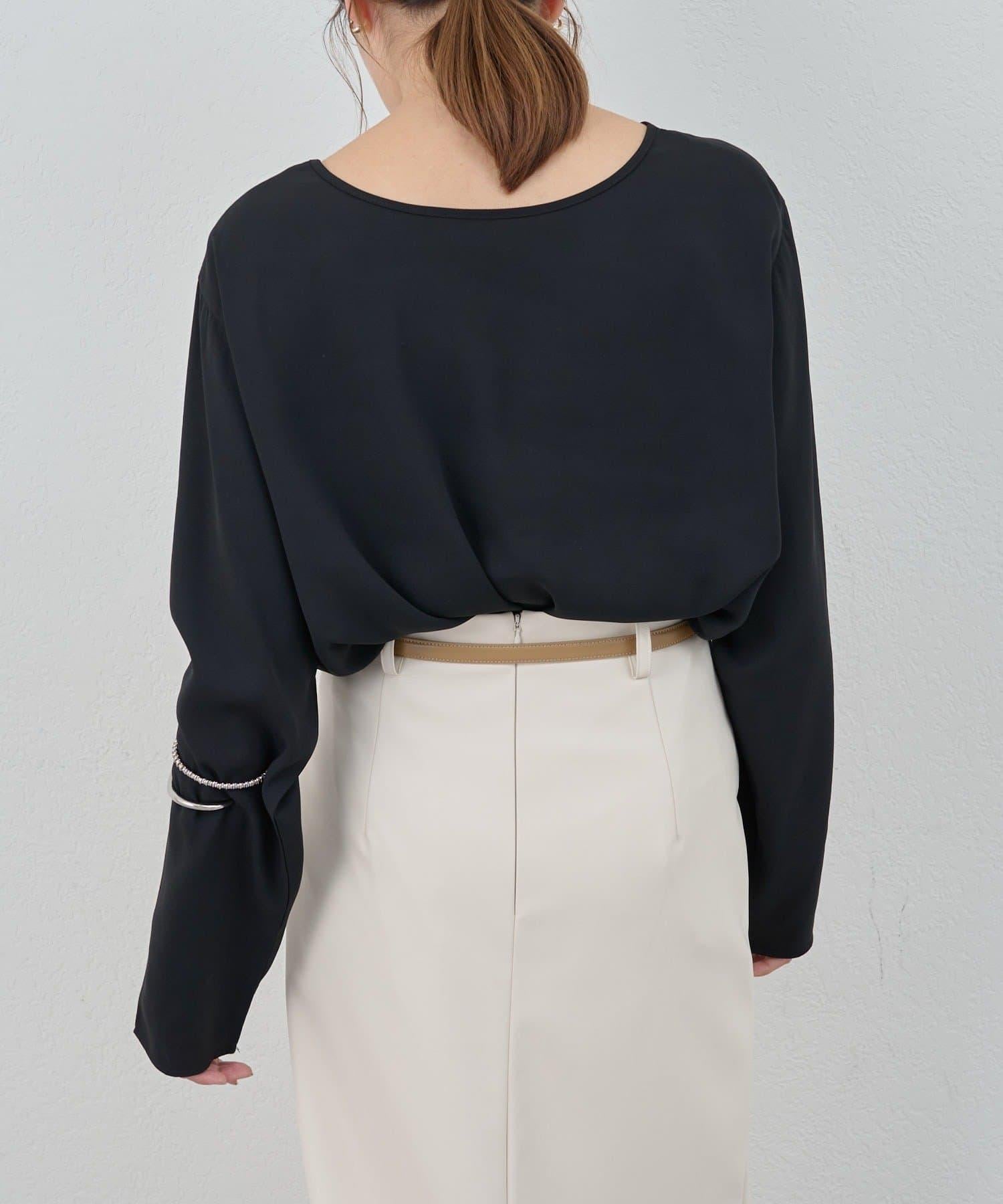 輕柔的船形領口設計增添了女性的柔美氣息,並能很好地展現肩部線條。