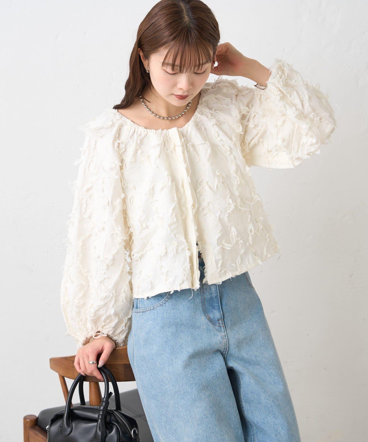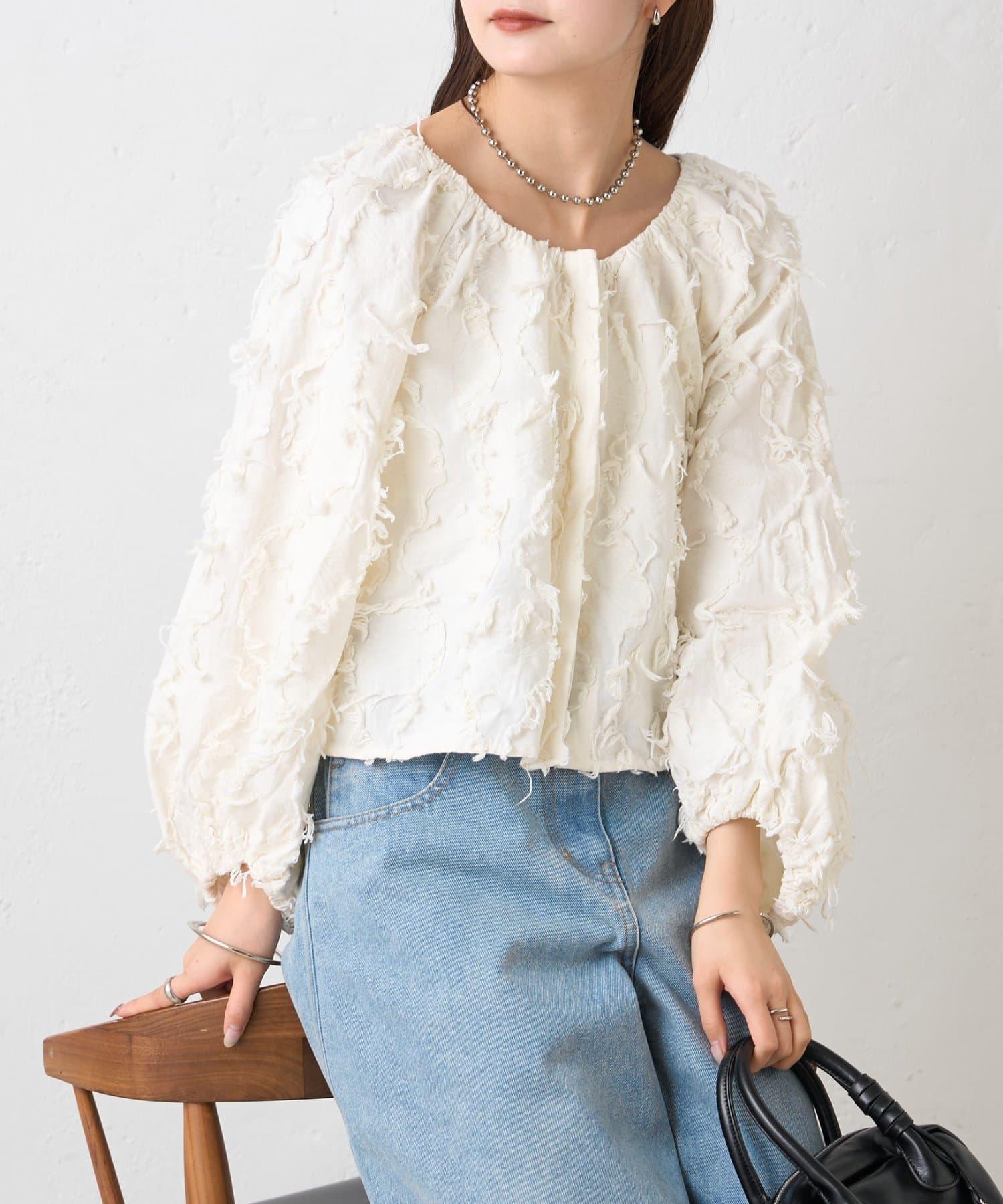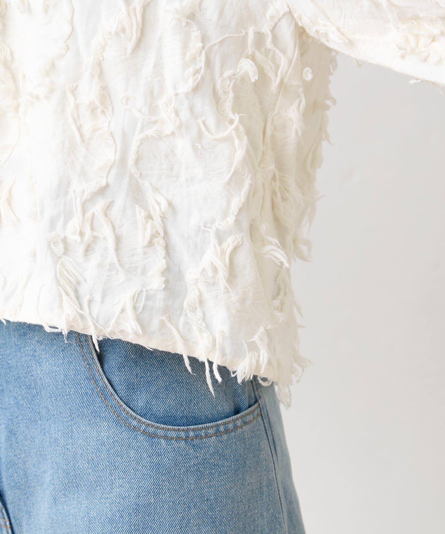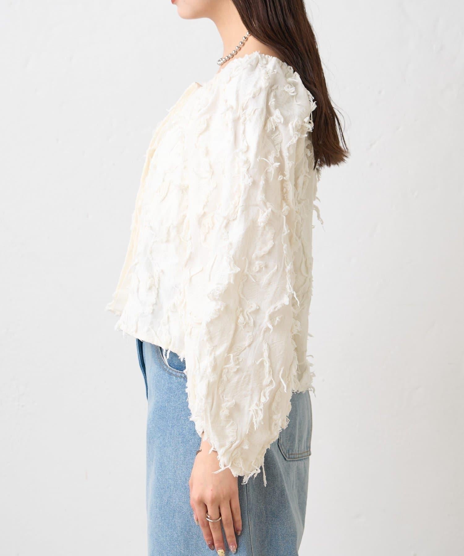 這款上衣採用精緻的提花設計,表面紋理迷人。