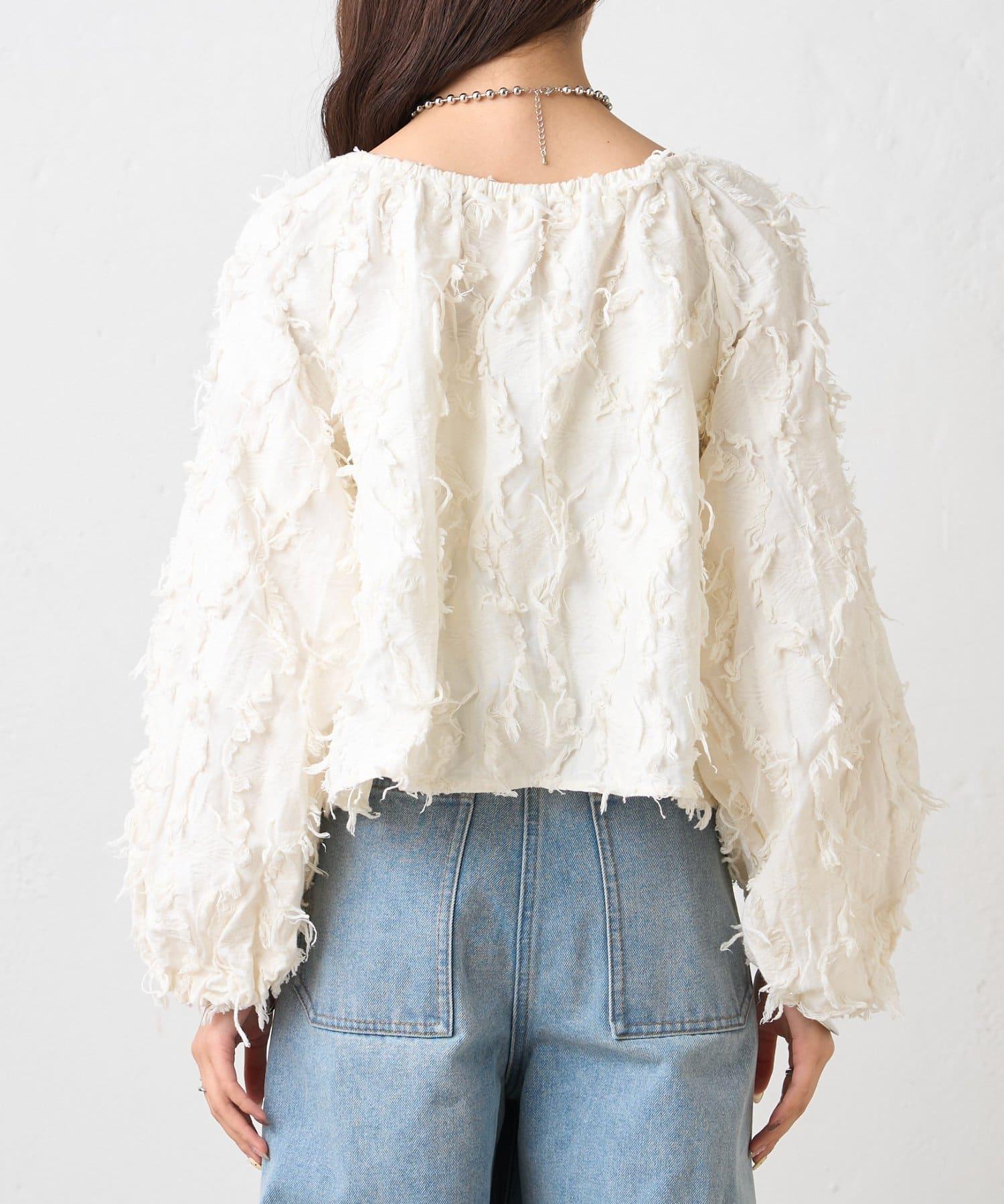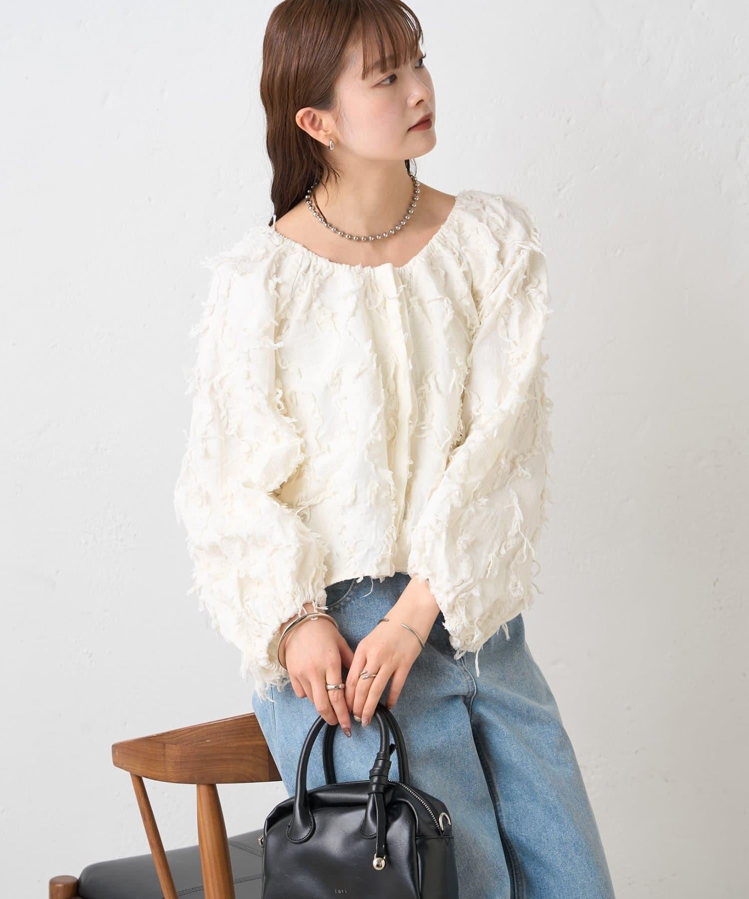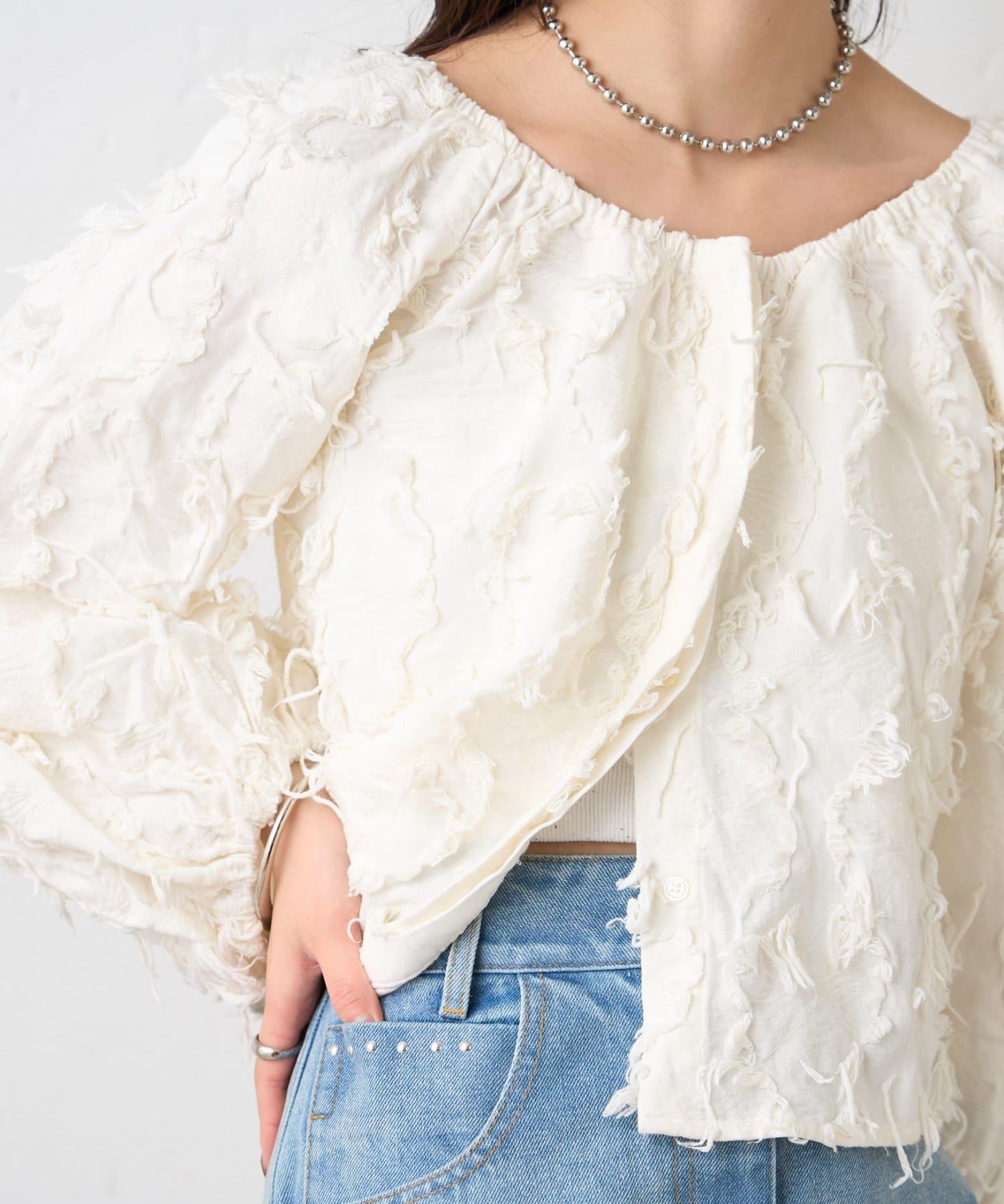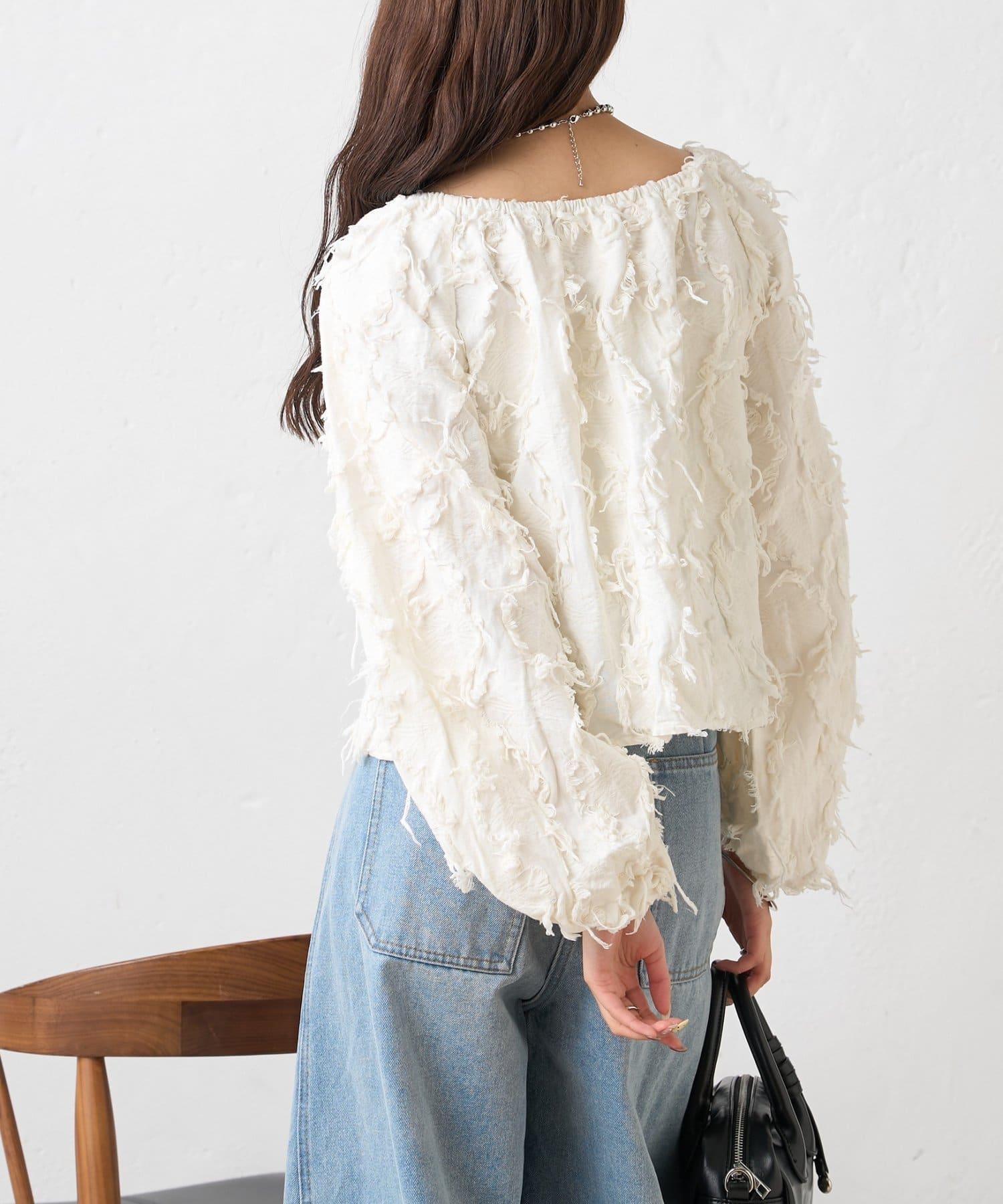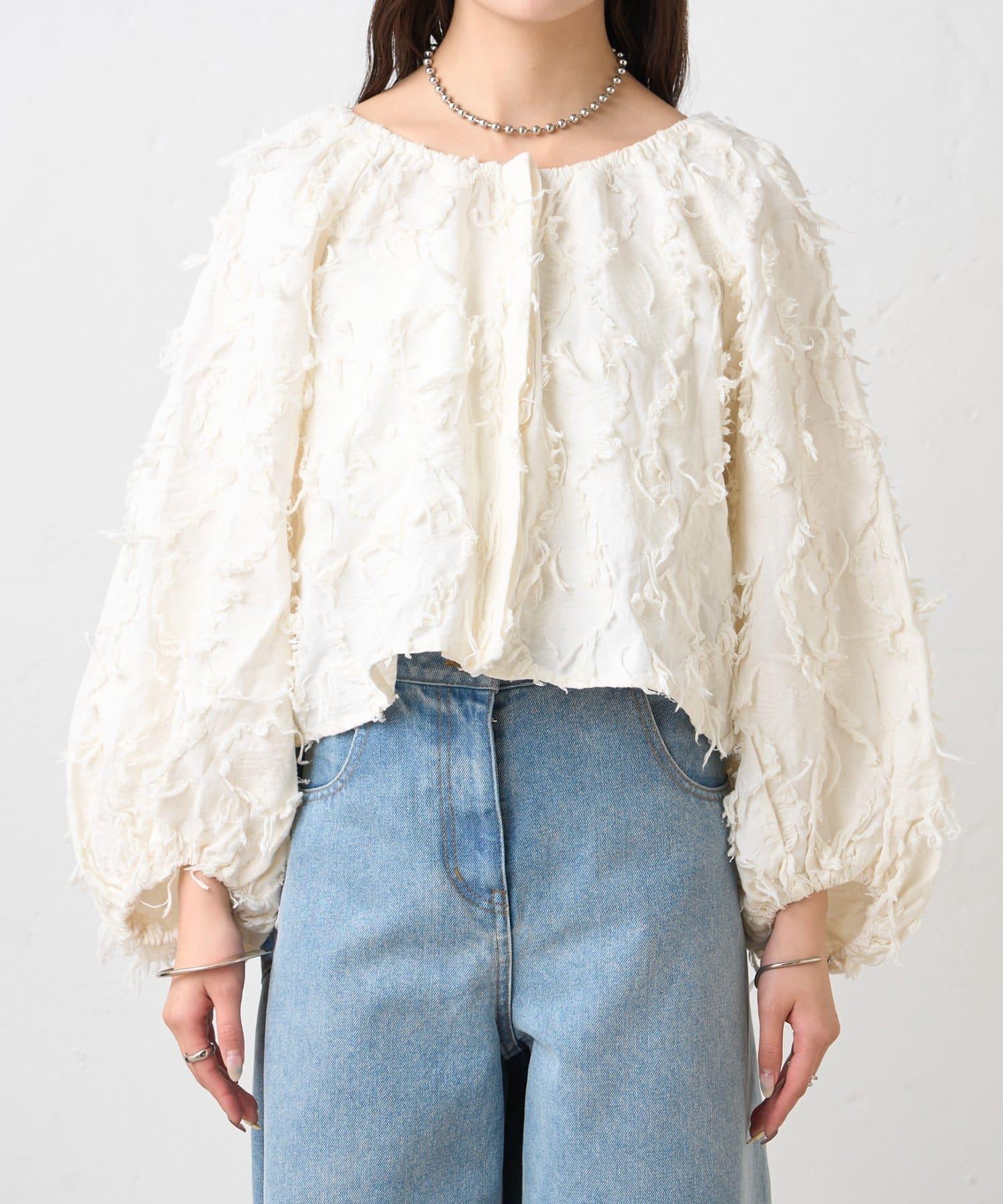 這款上衣採用精緻的提花設計,表面紋理迷人。