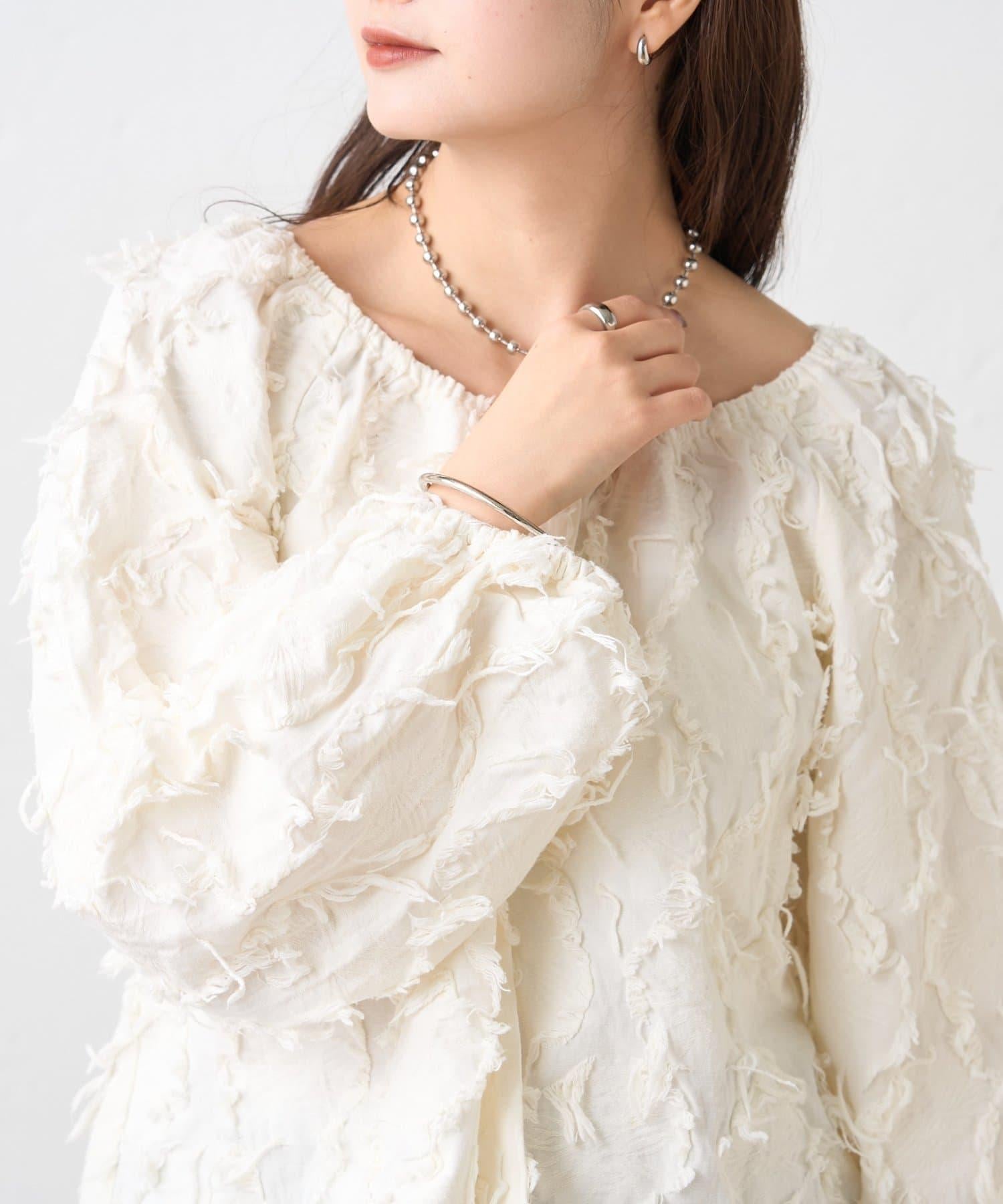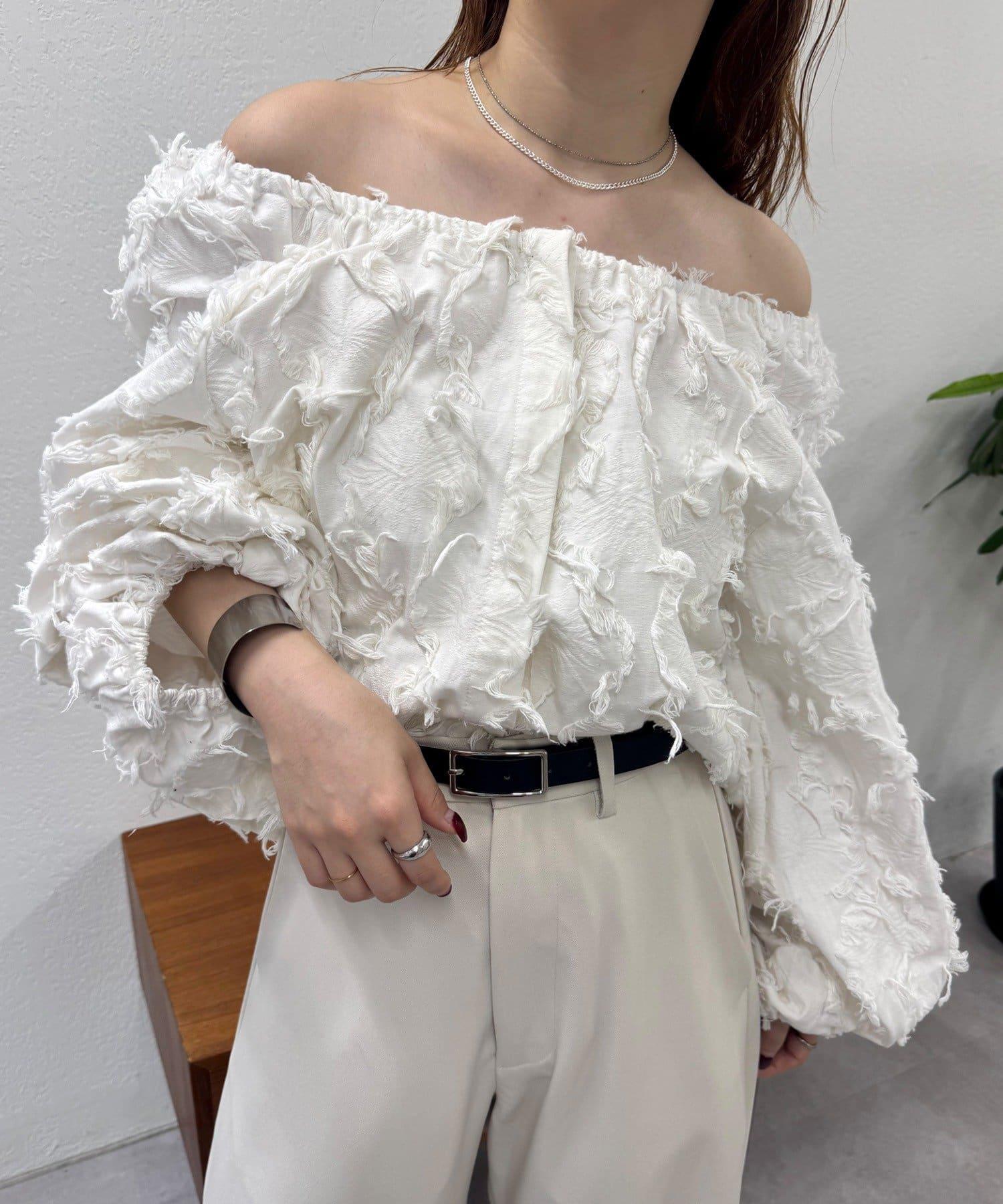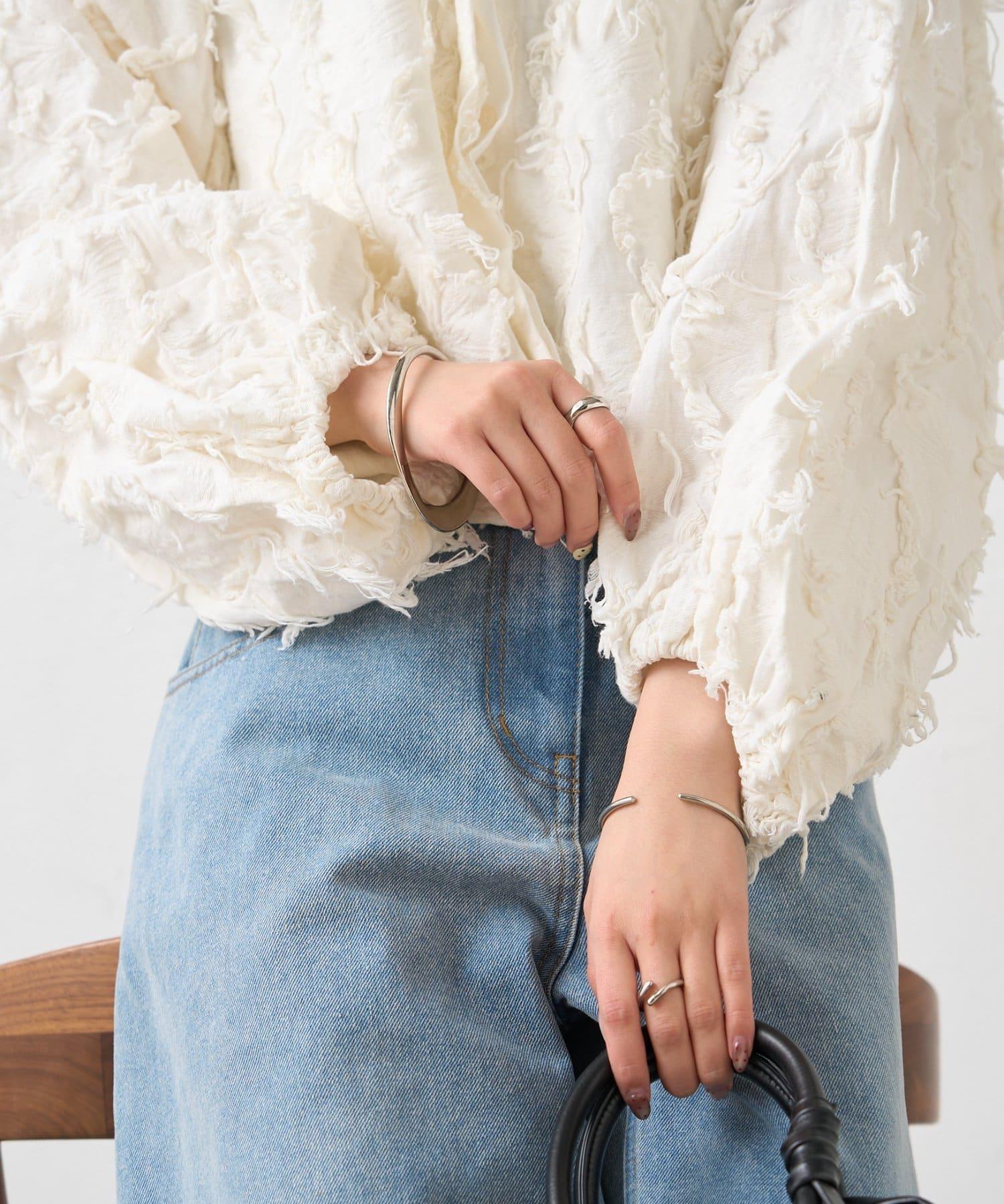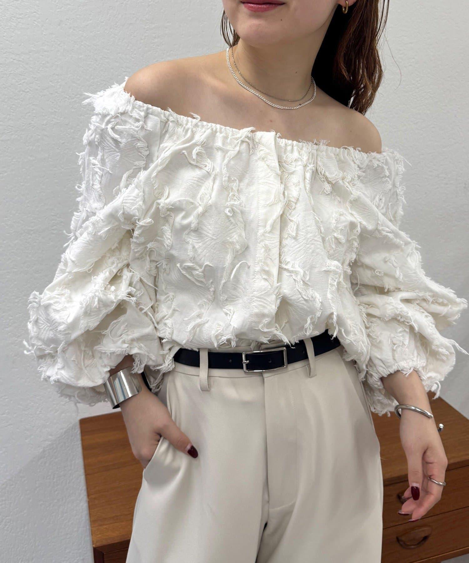 提花上衣給人以女性化的印象,單穿也很華麗!