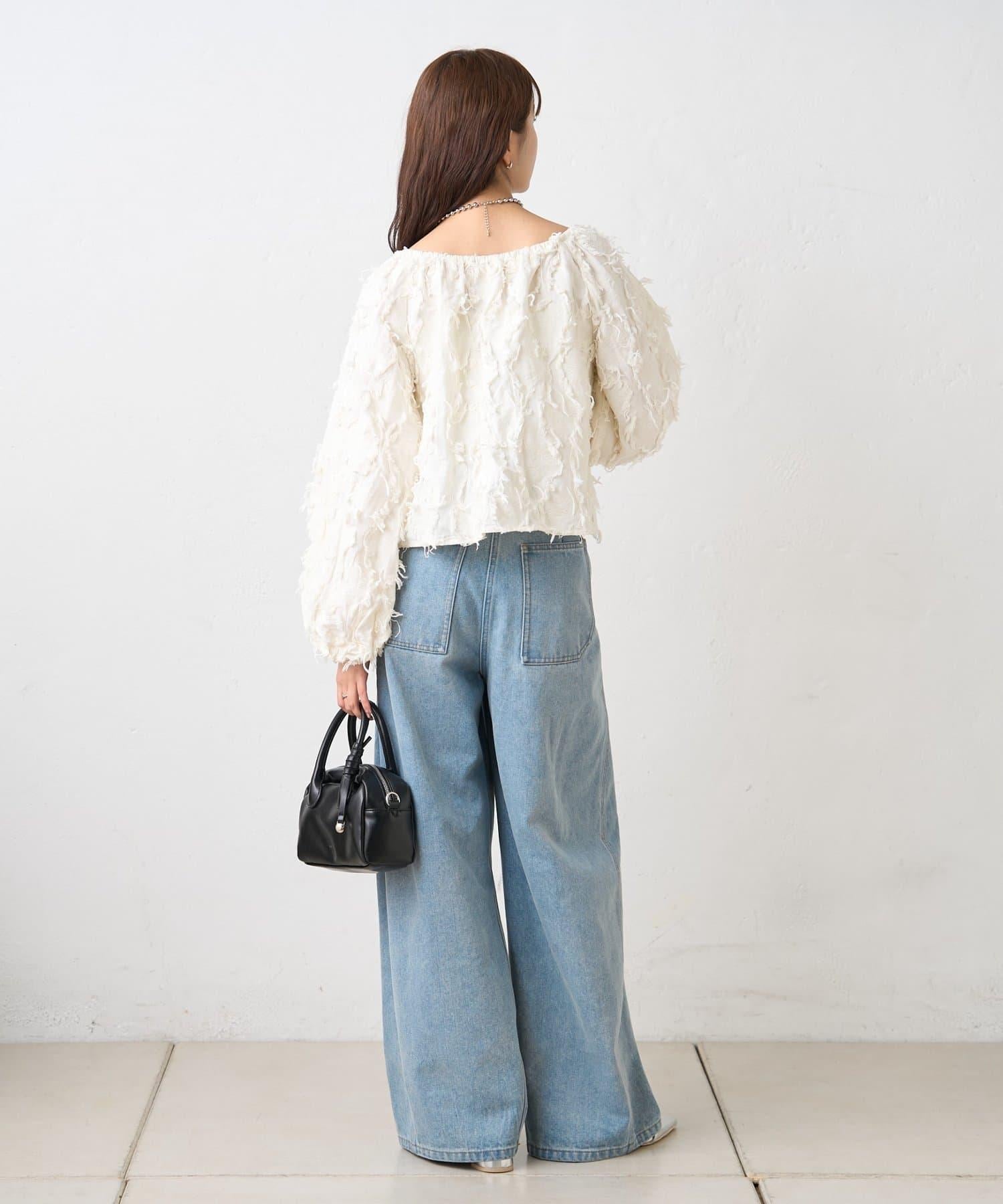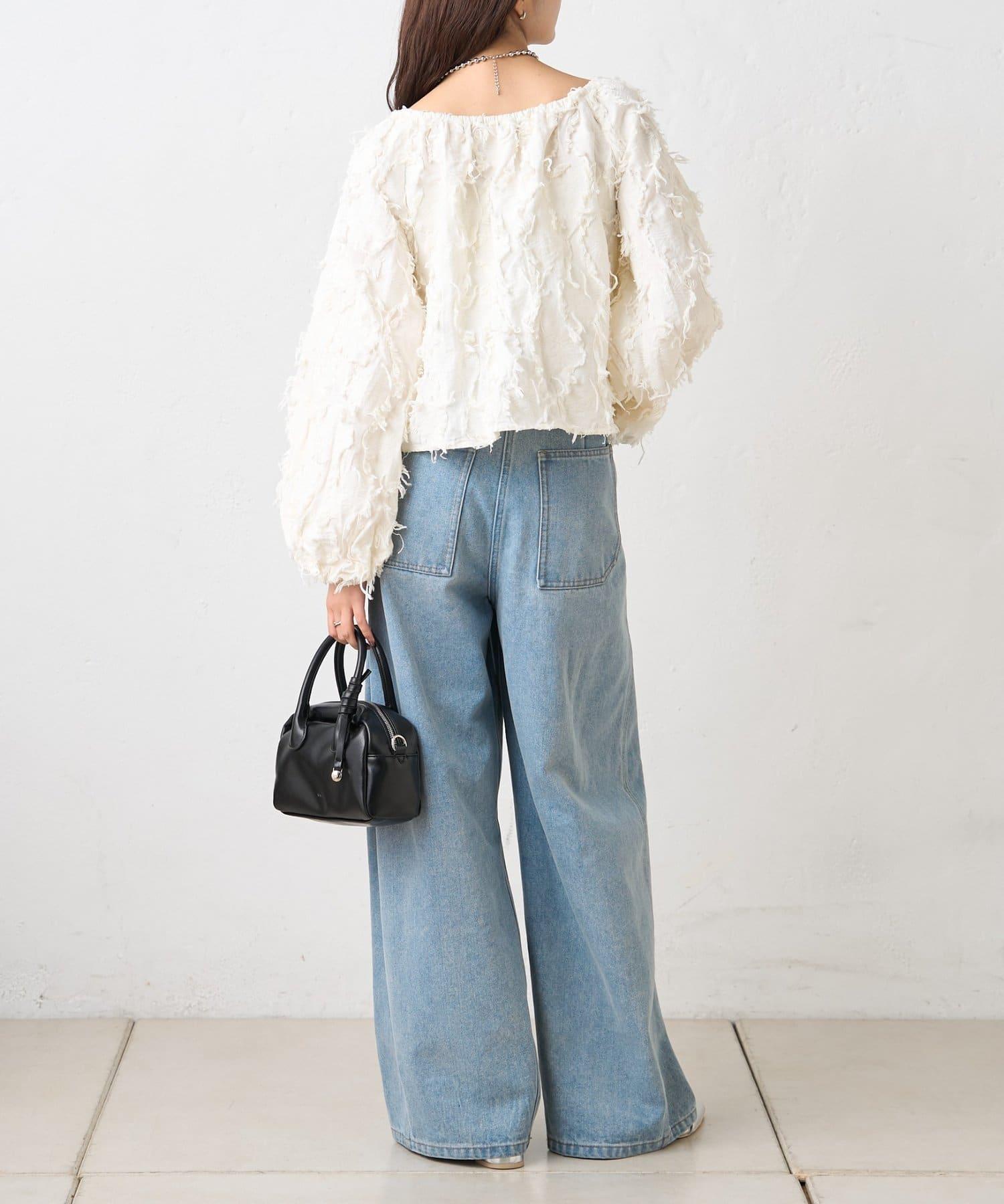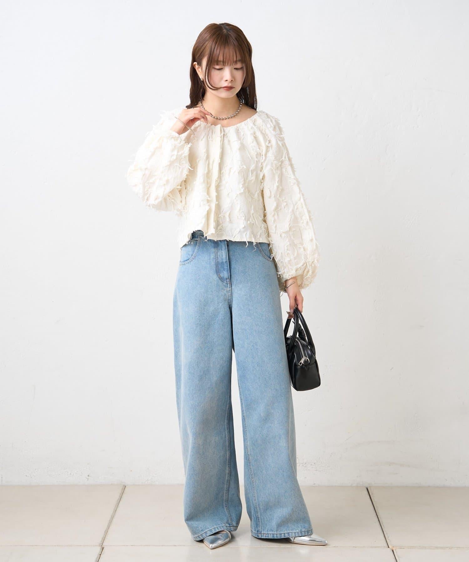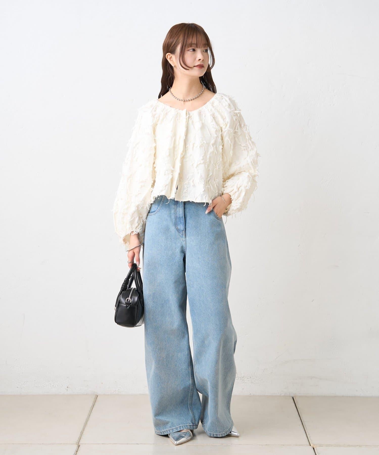 提花上衣給人以女性化的印象,單穿也很華麗!