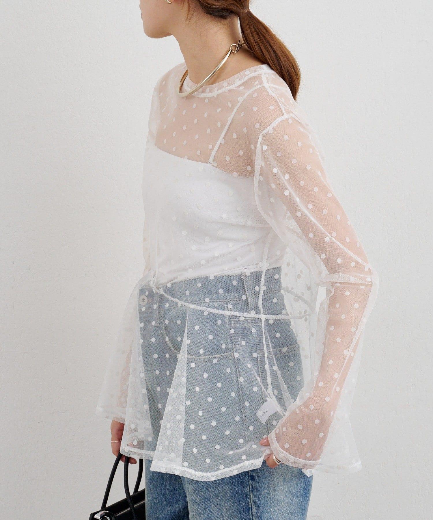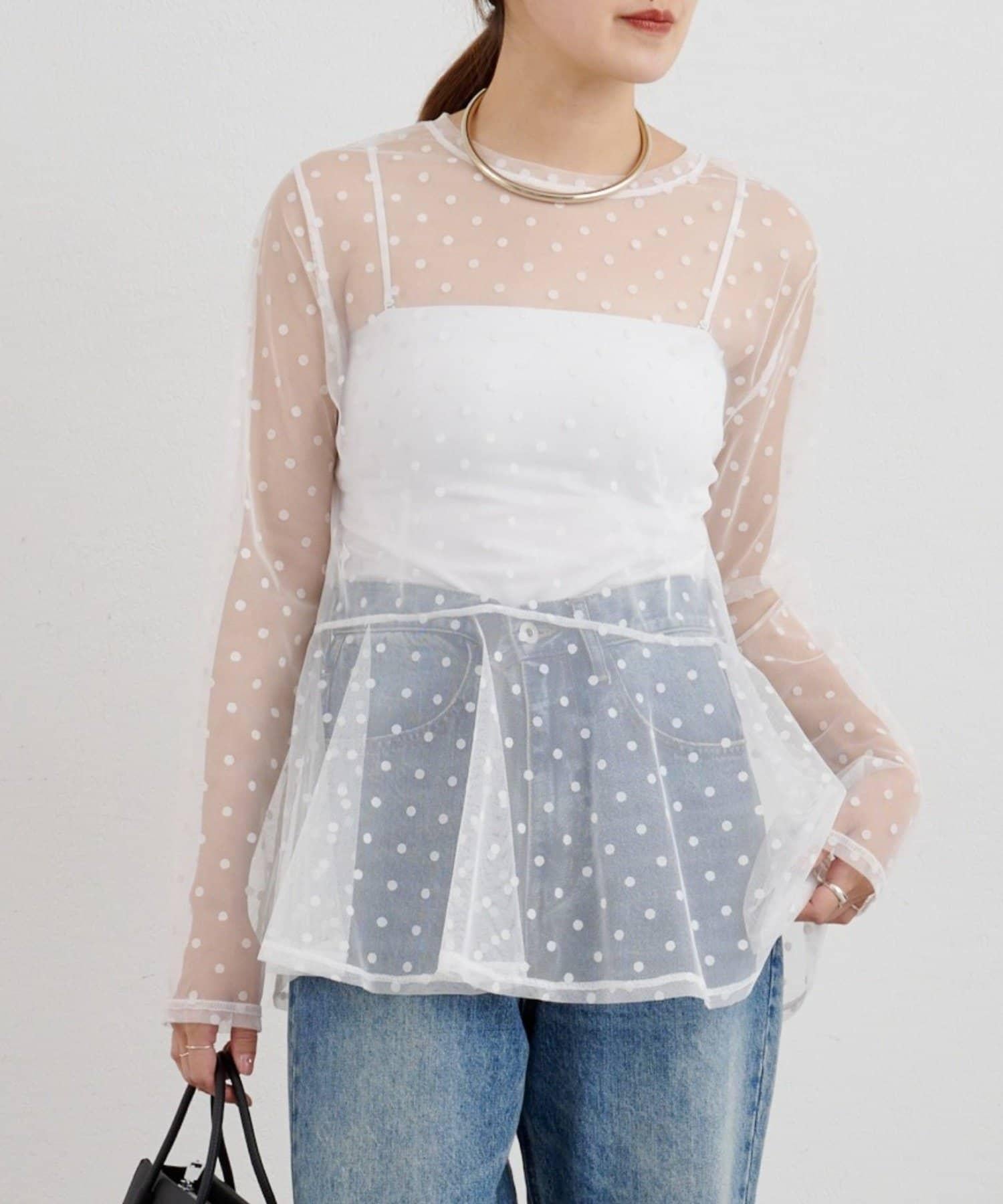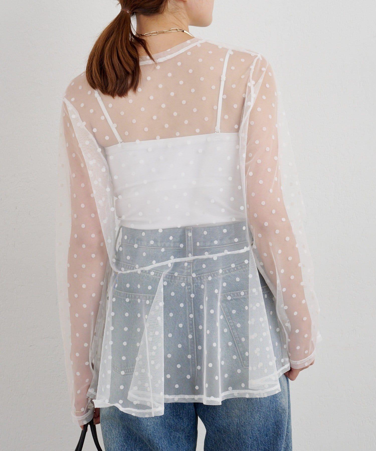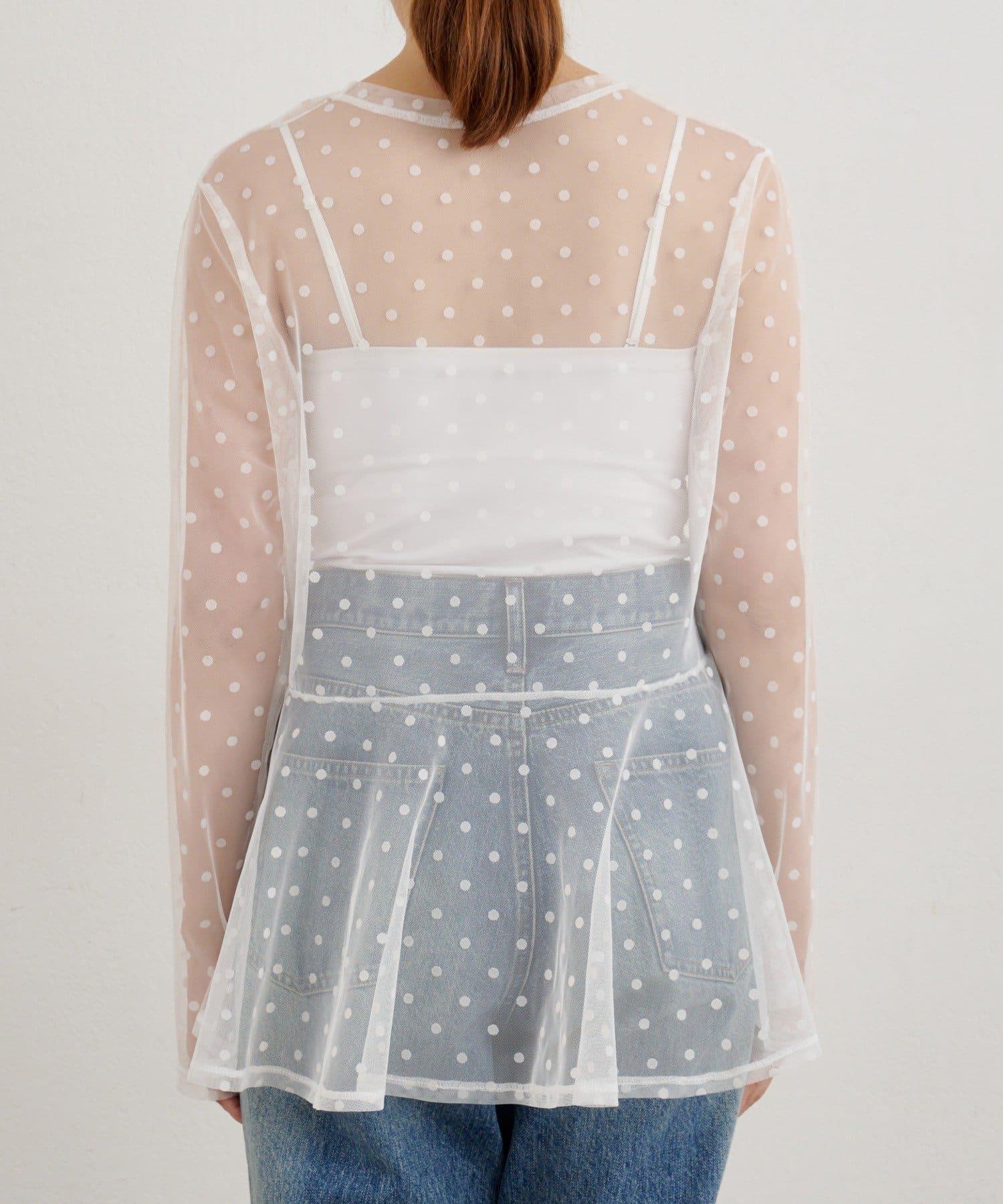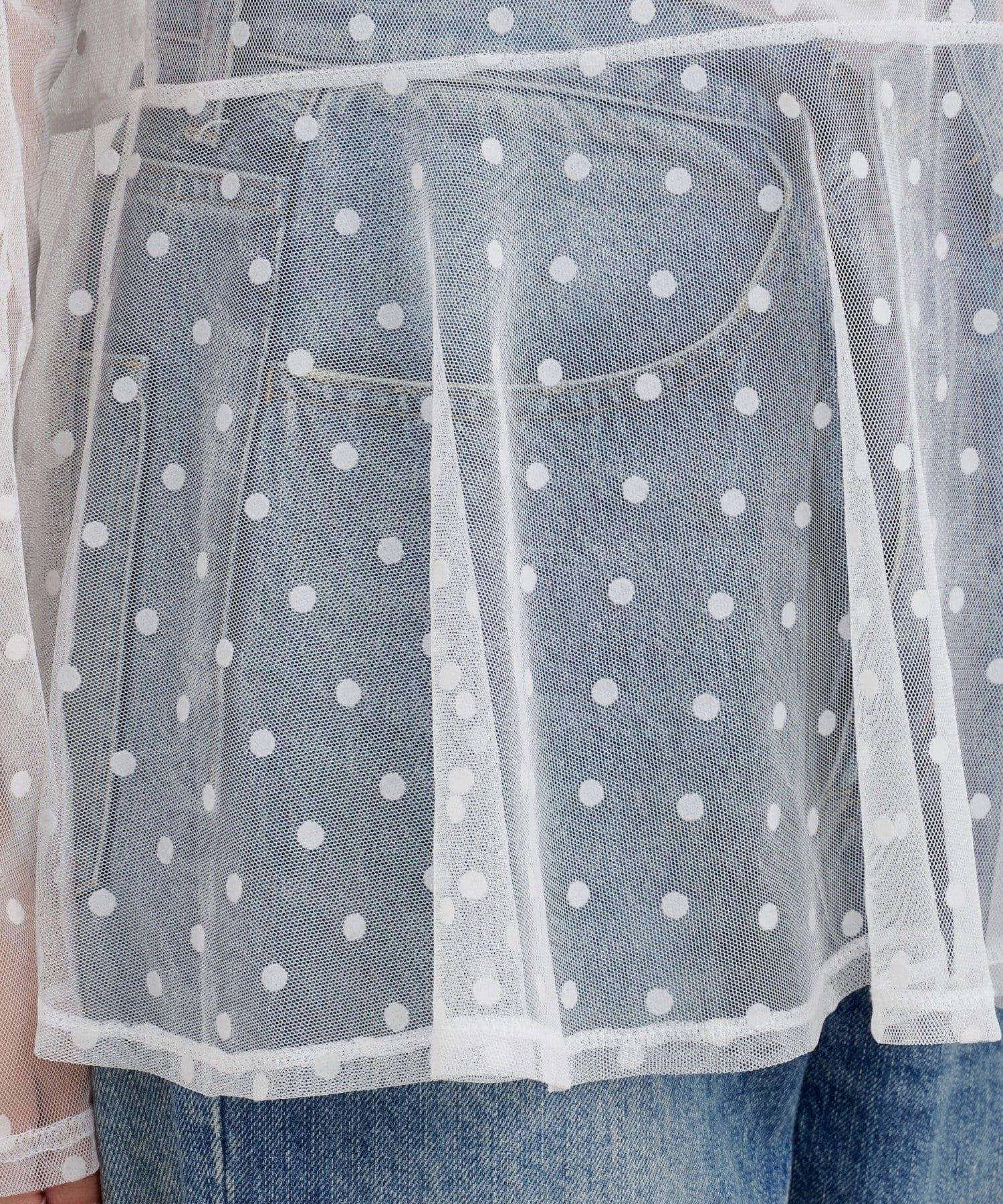 透視薄紗材質的上衣,配以植絨圓點印花。
