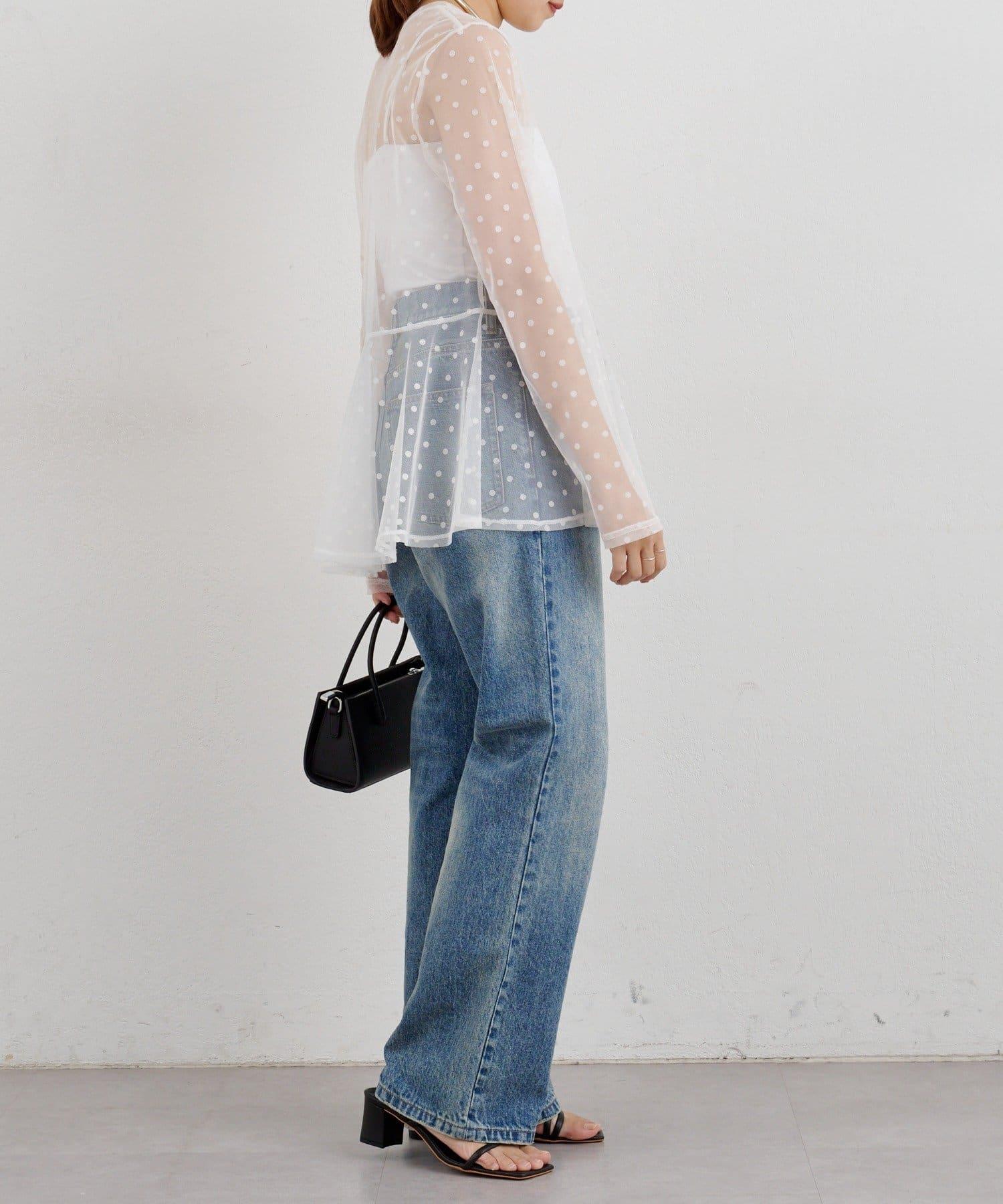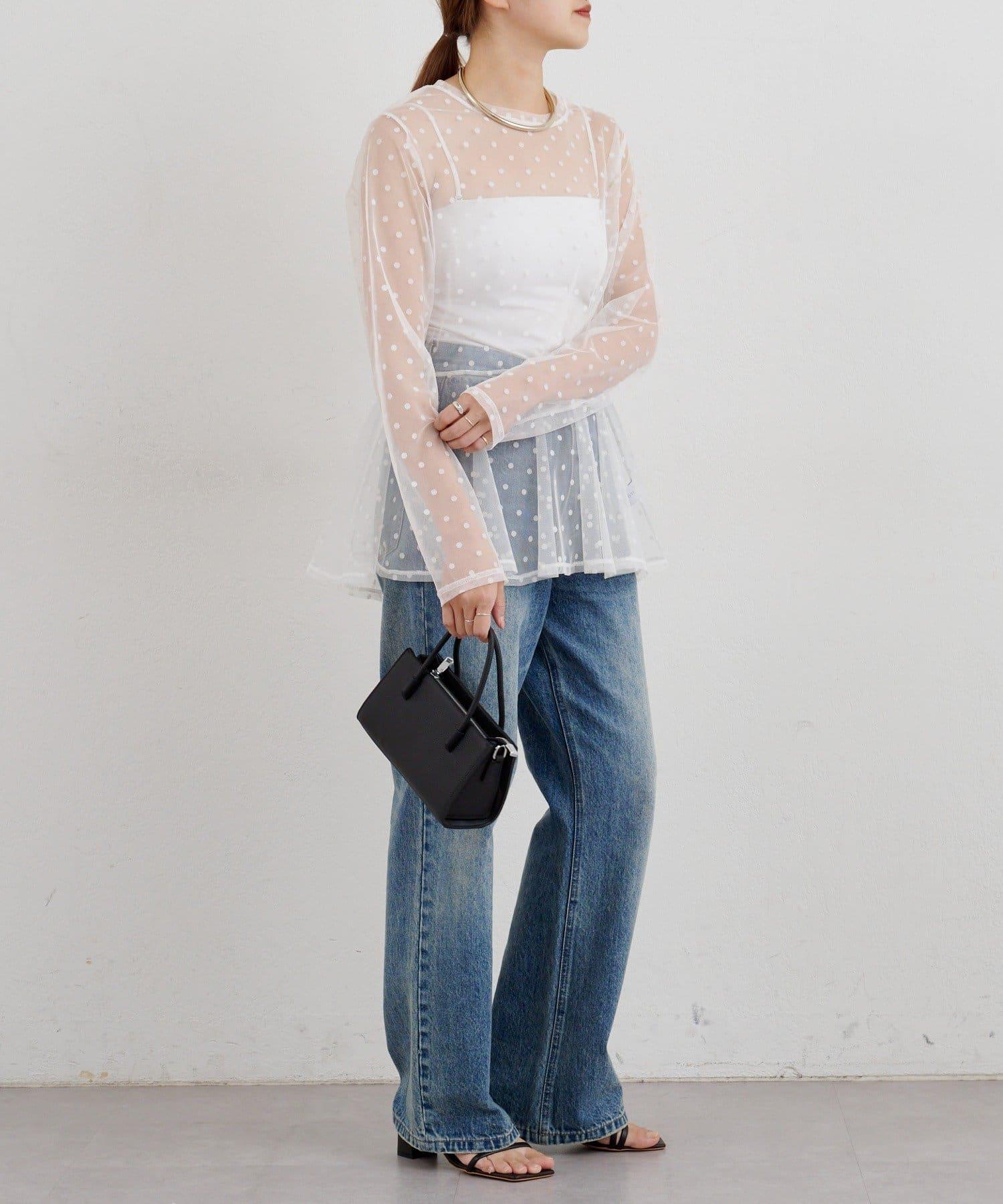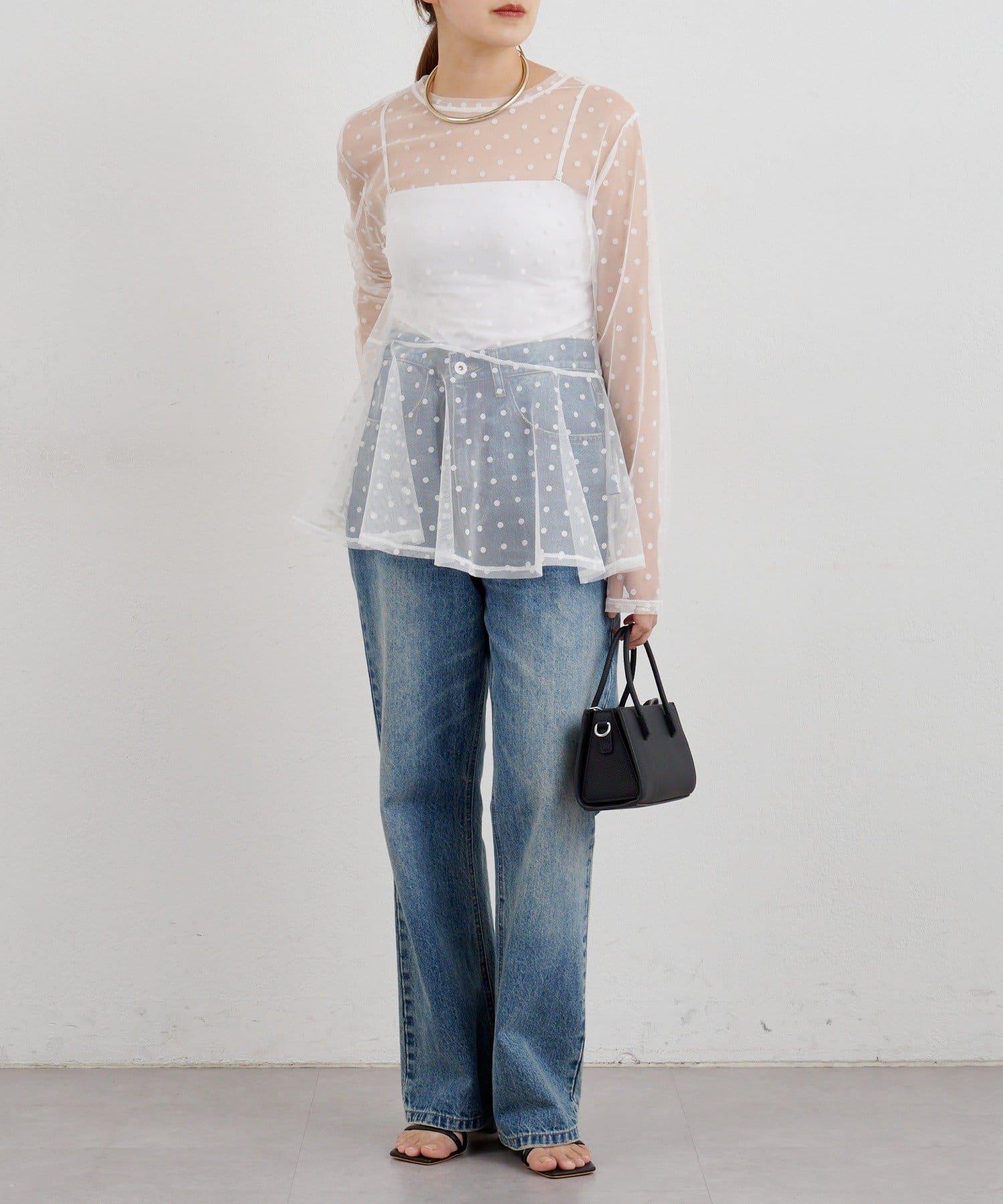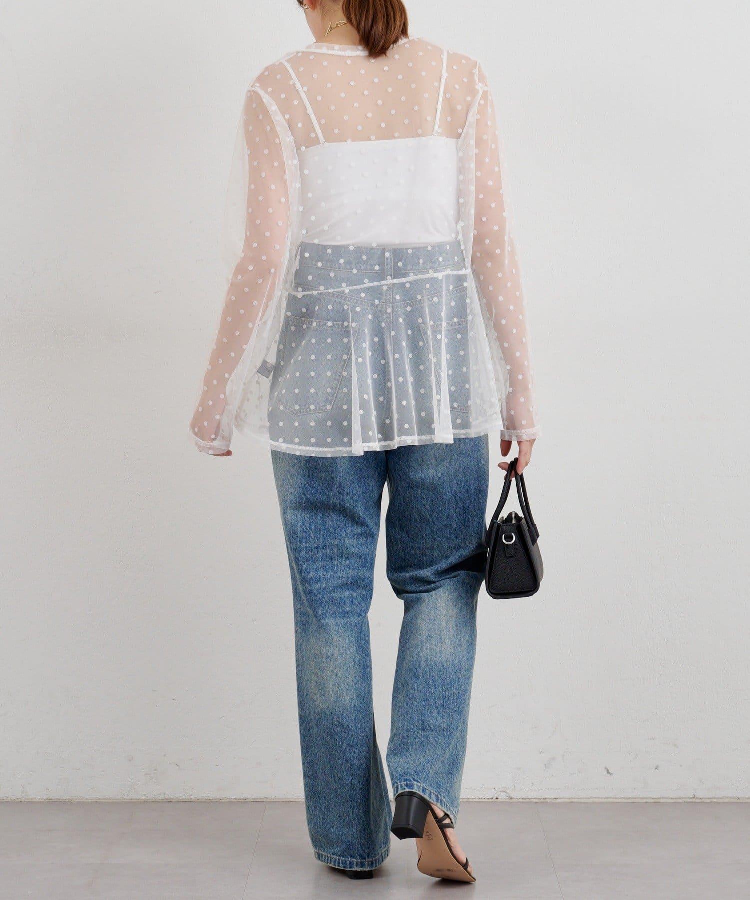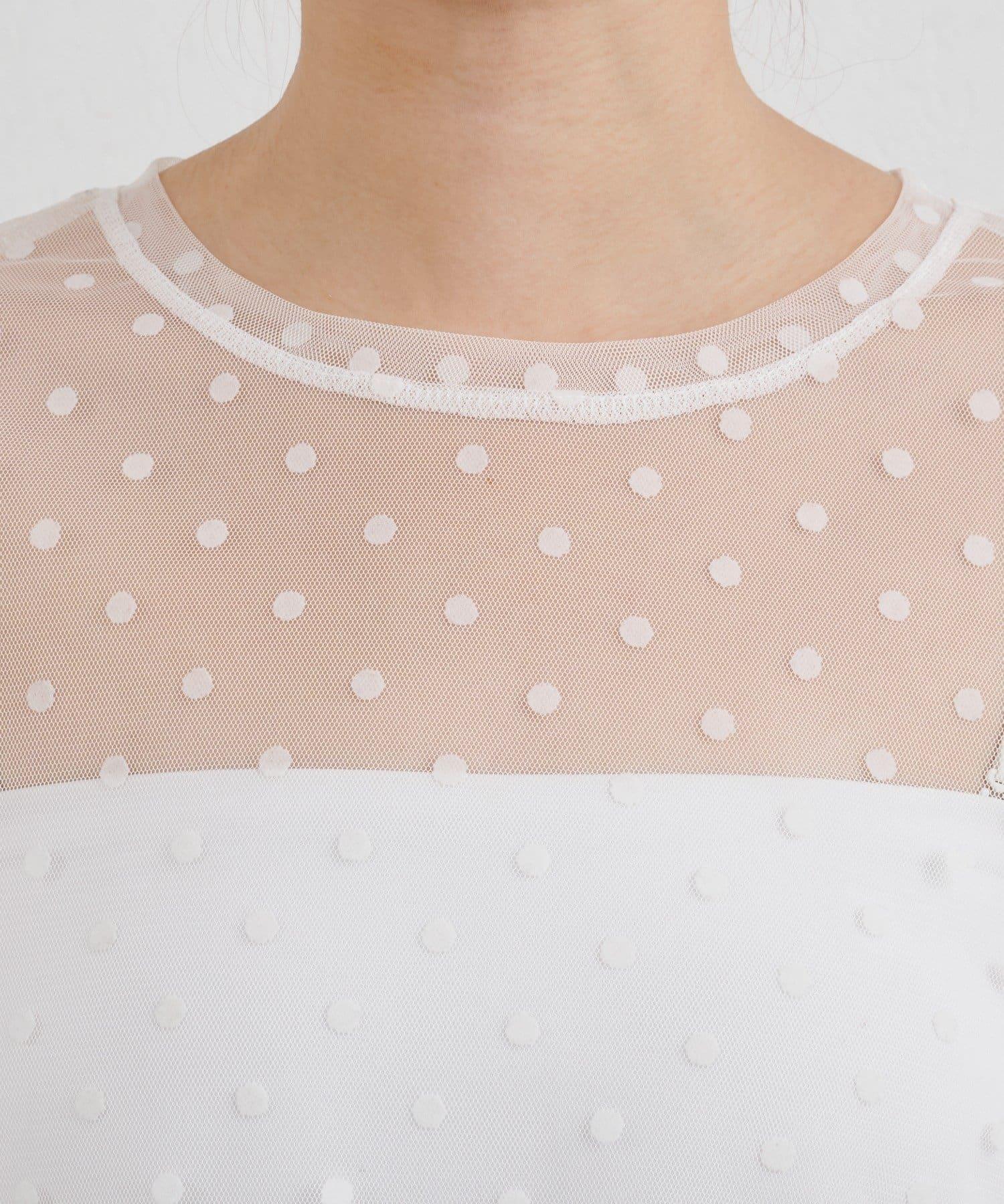 透視薄紗材質的上衣,配以植絨圓點印花。