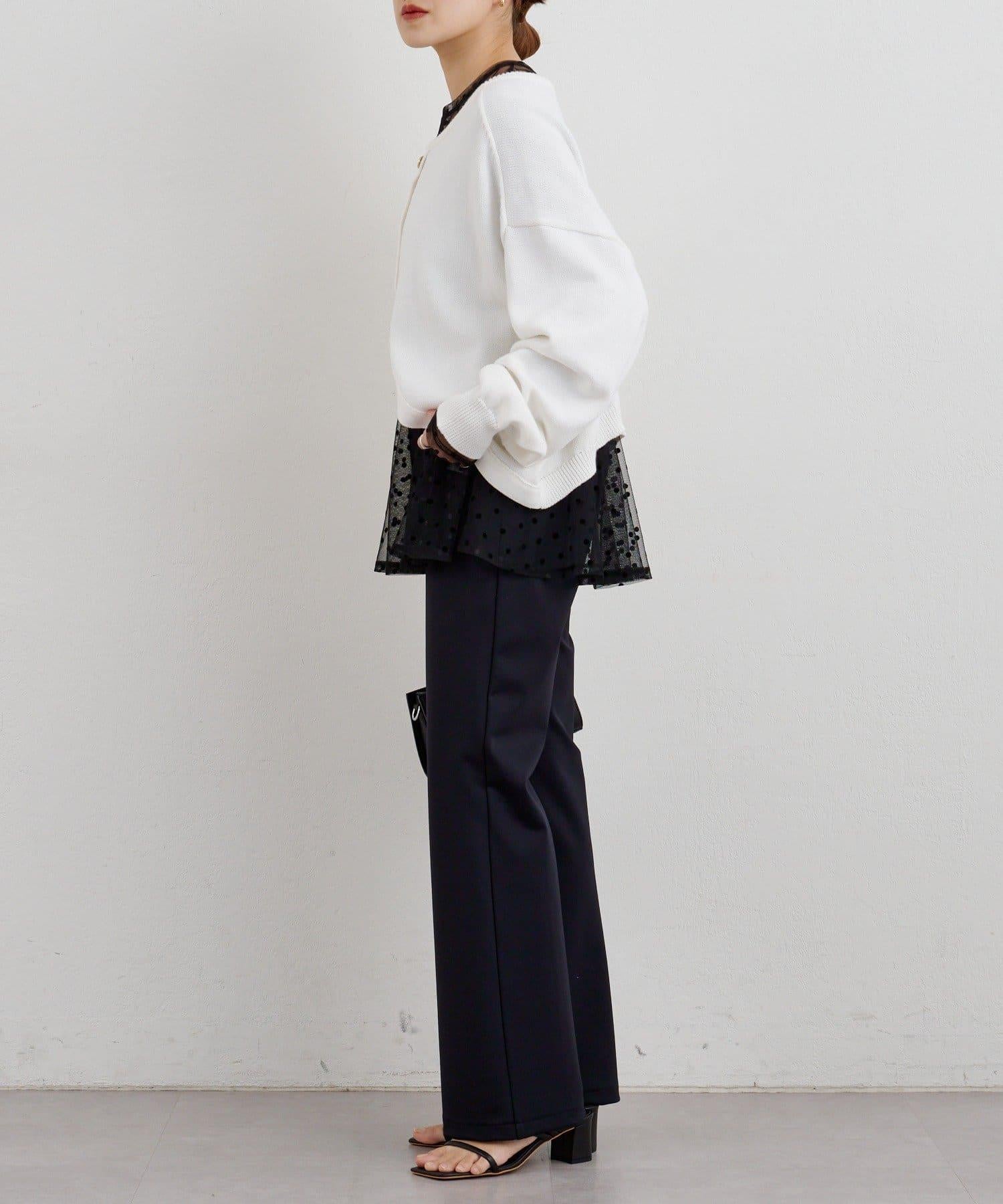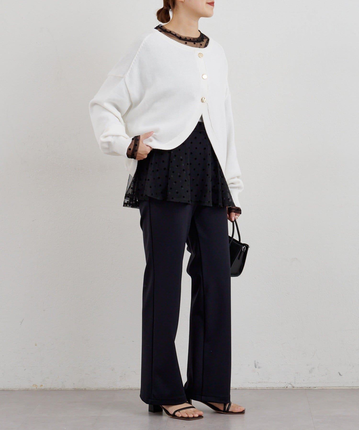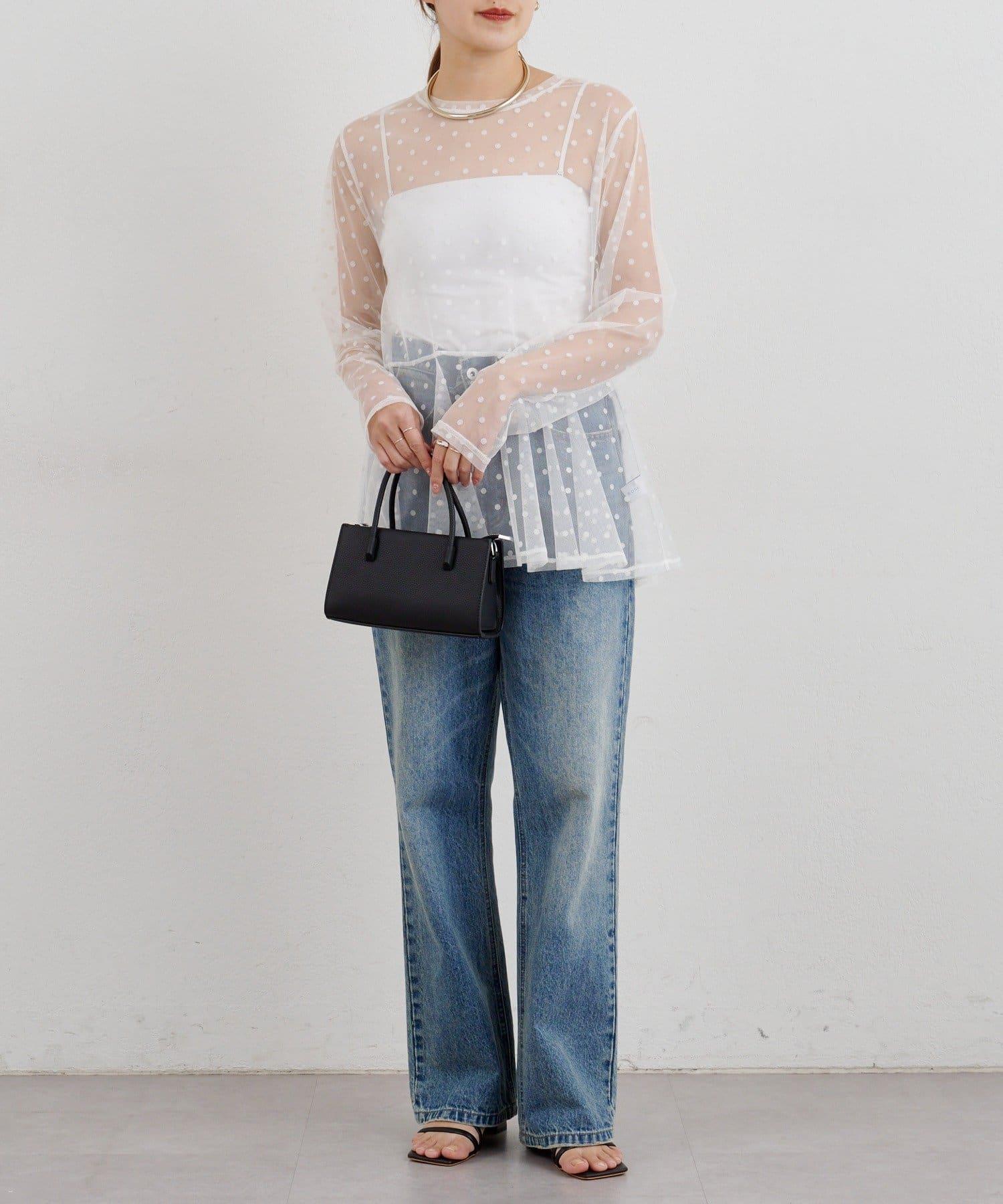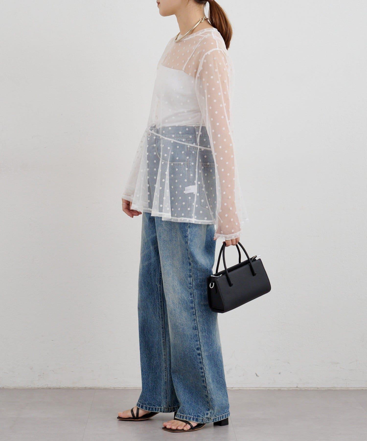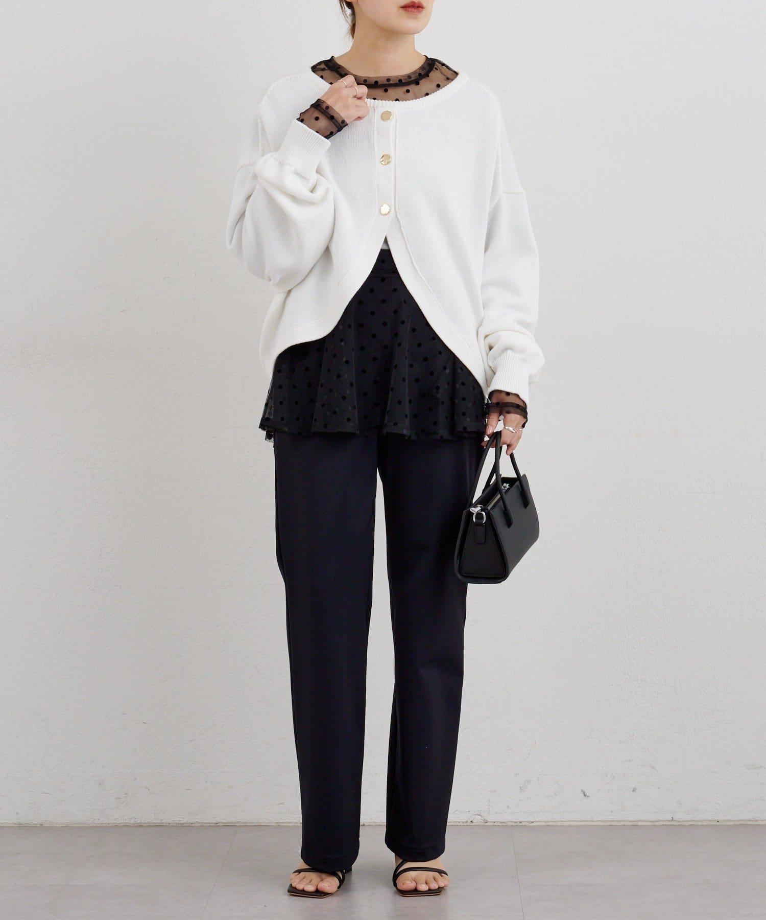 透視薄紗材質的上衣,配以植絨圓點印花。