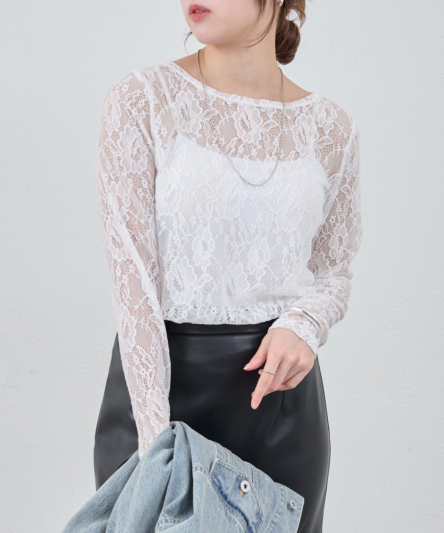 精緻蕾絲材質的透明上衣。