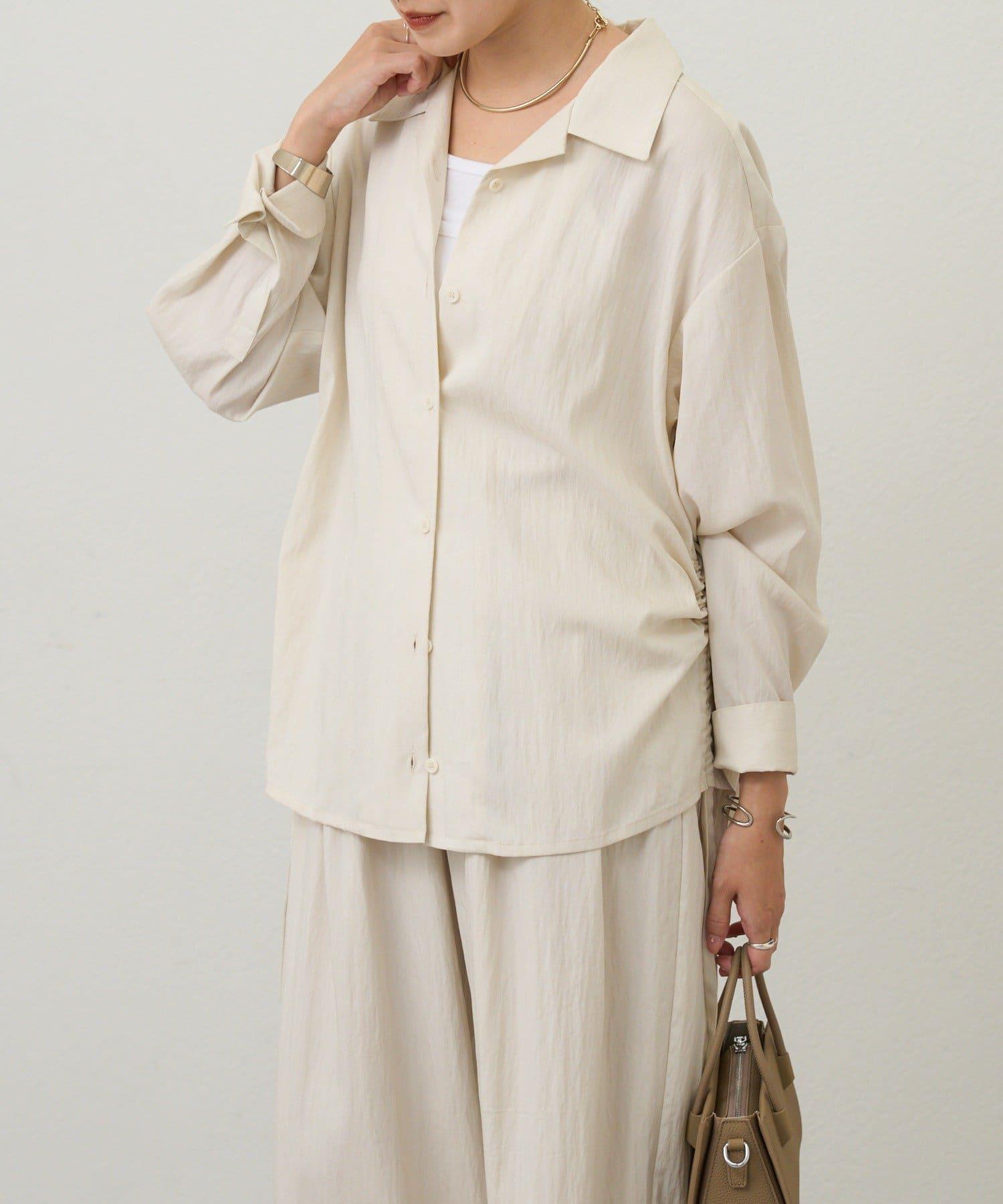 整齊展現領口的開領設計充滿輕鬆氛圍、