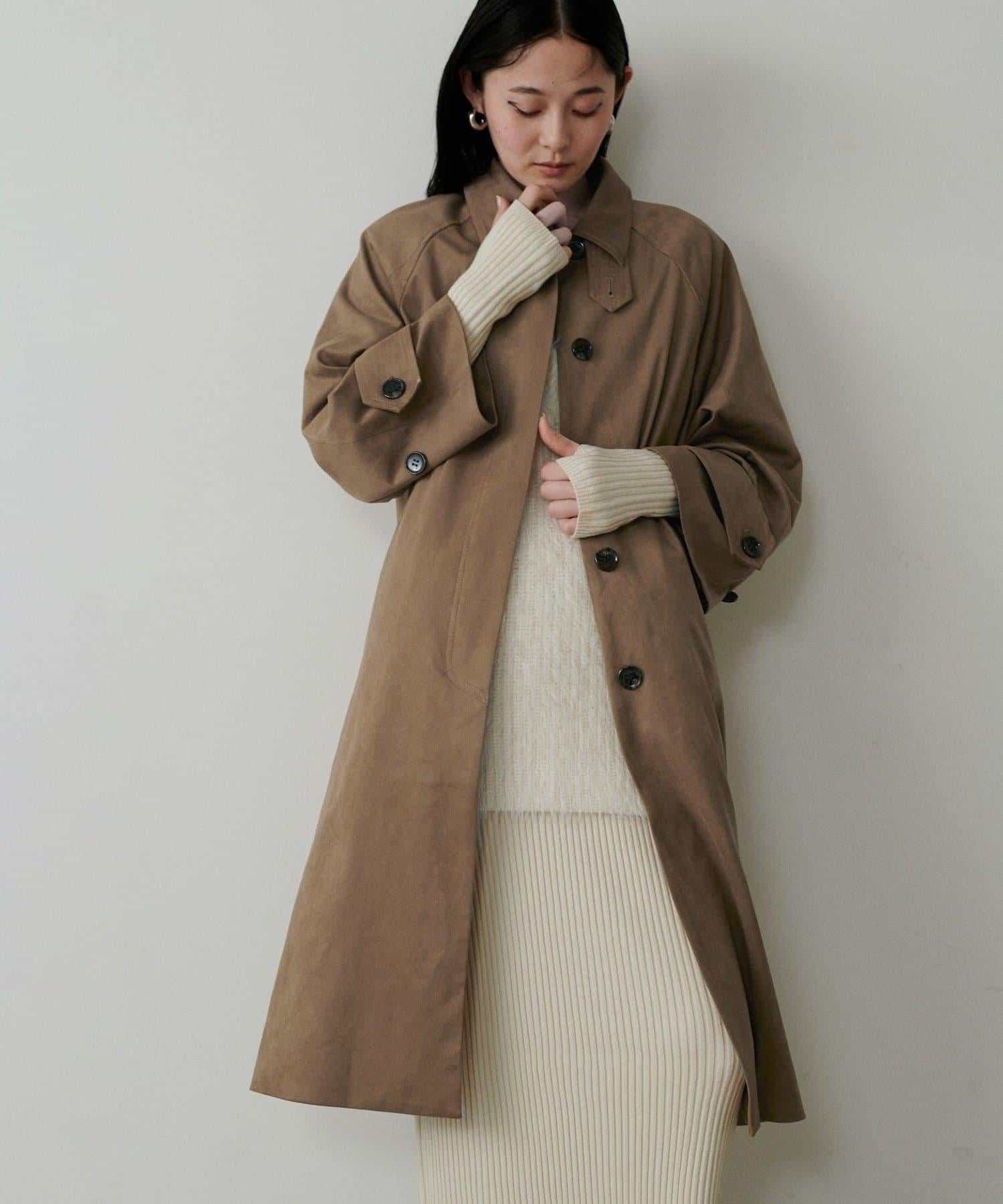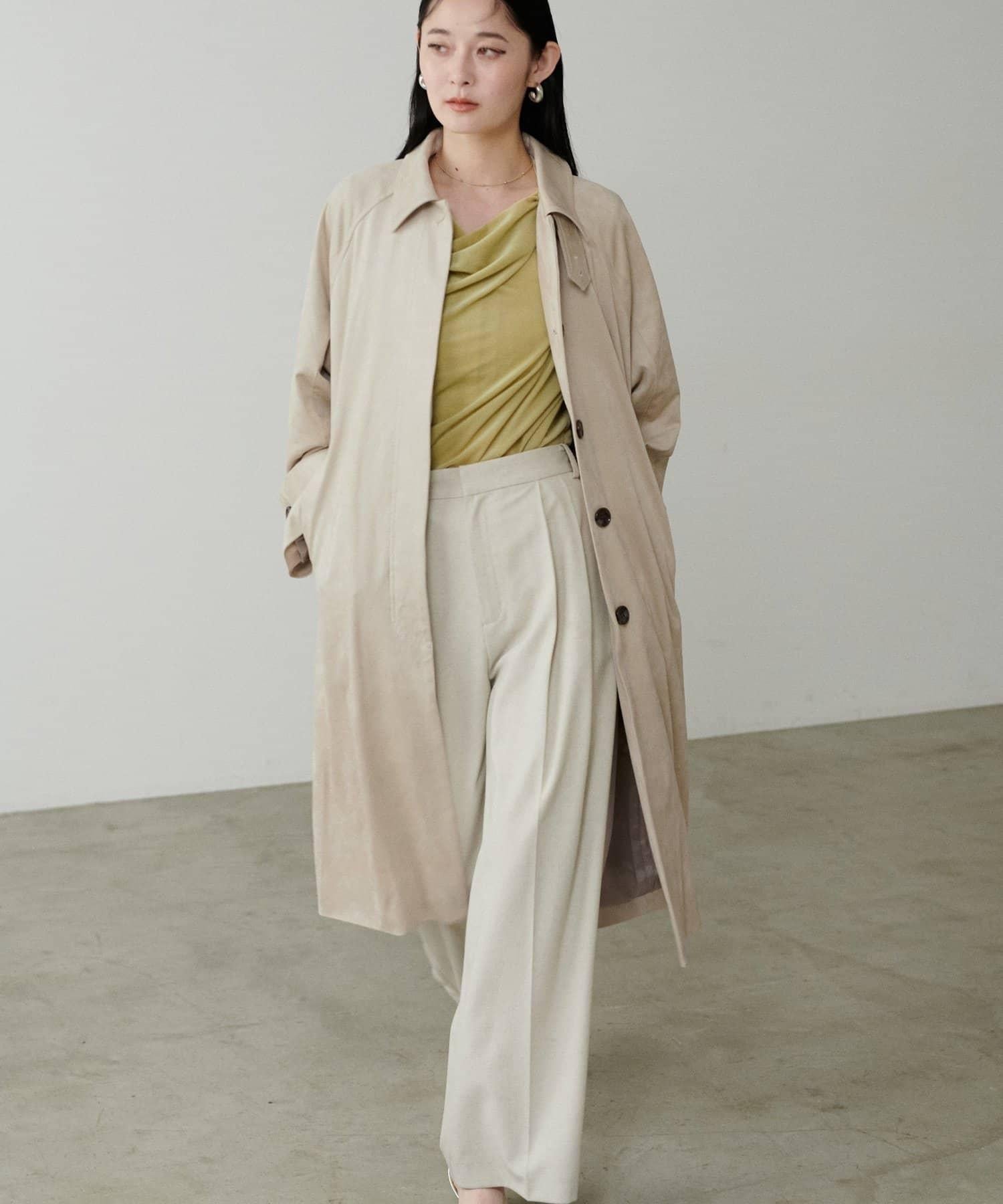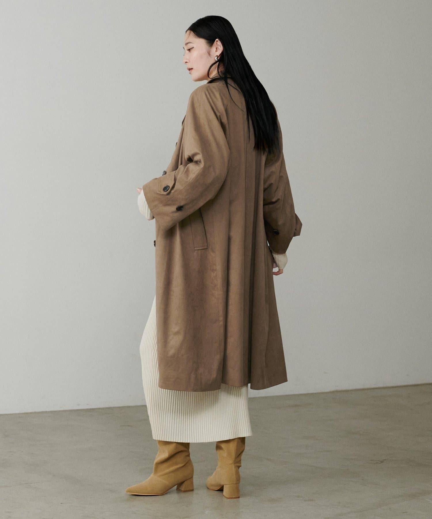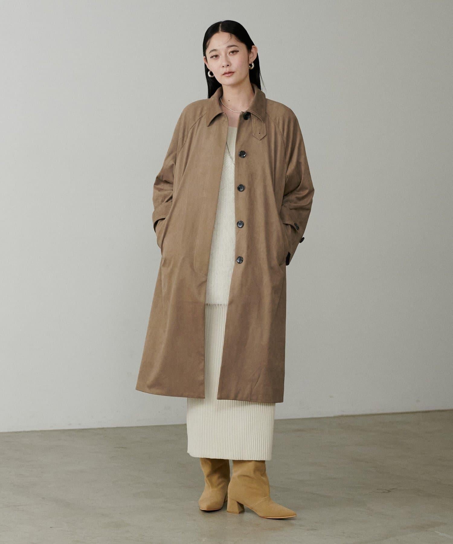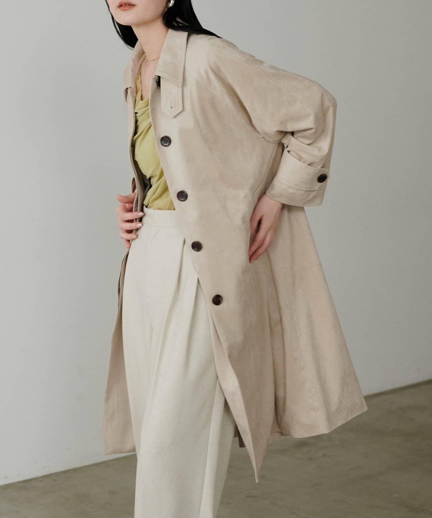 麂皮絨啞光質感的長款大衣,提升了秋冬季的協調性。