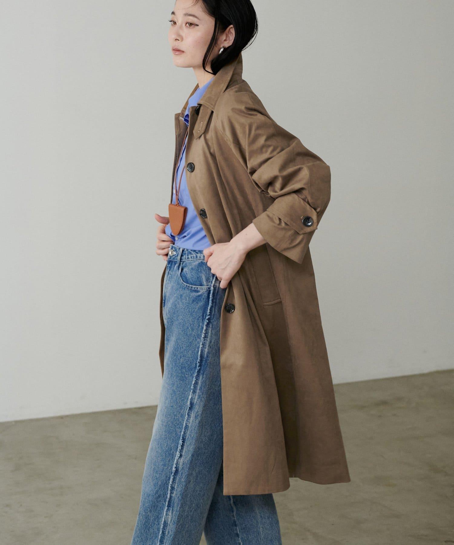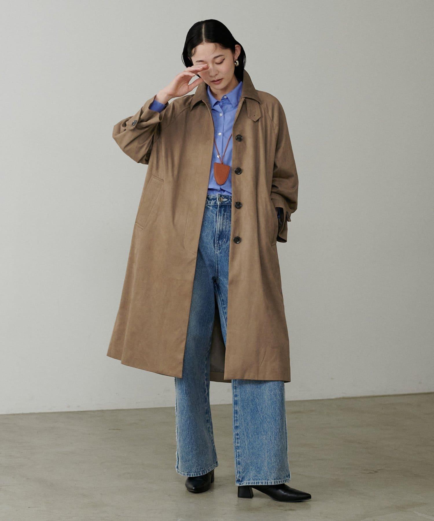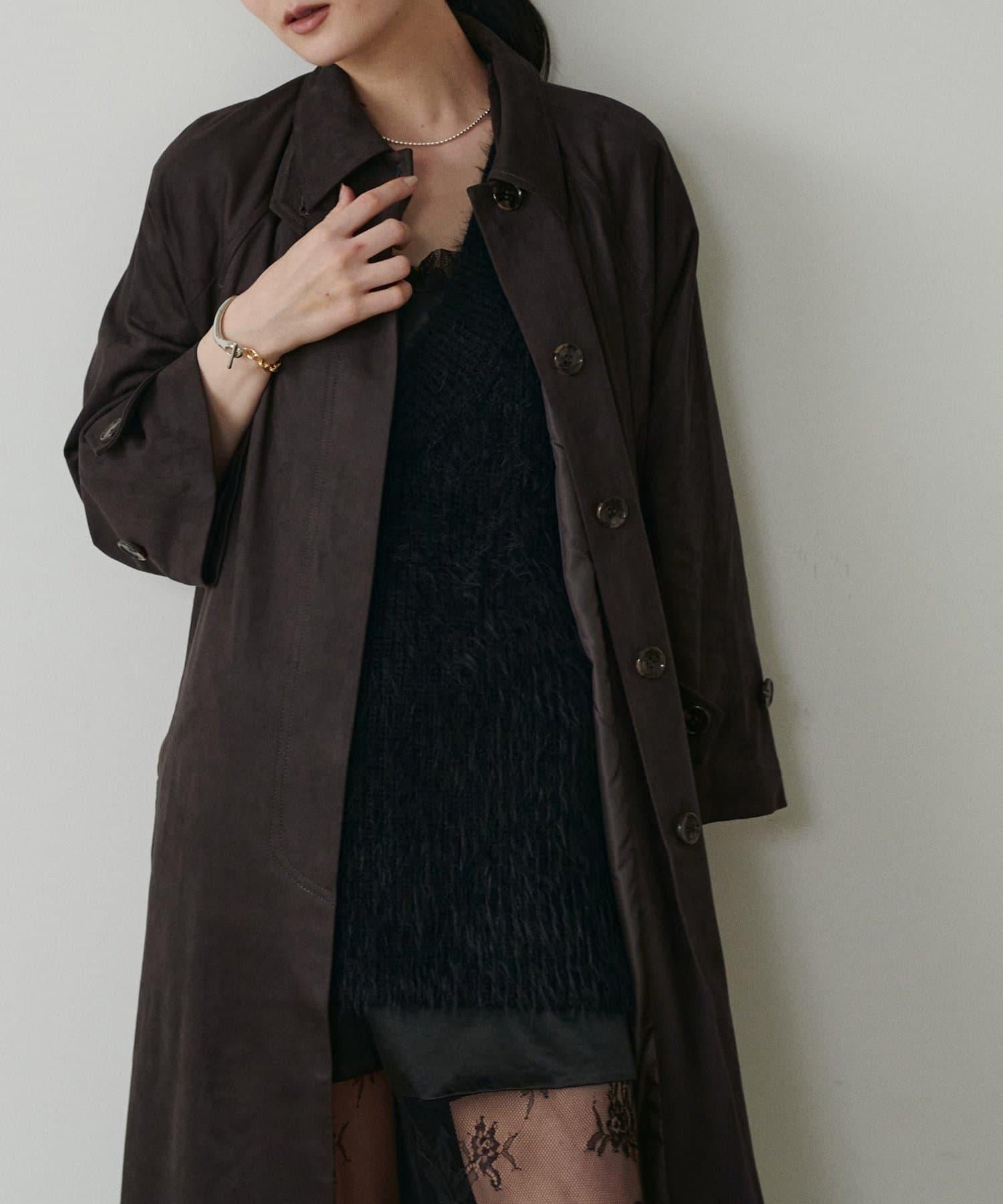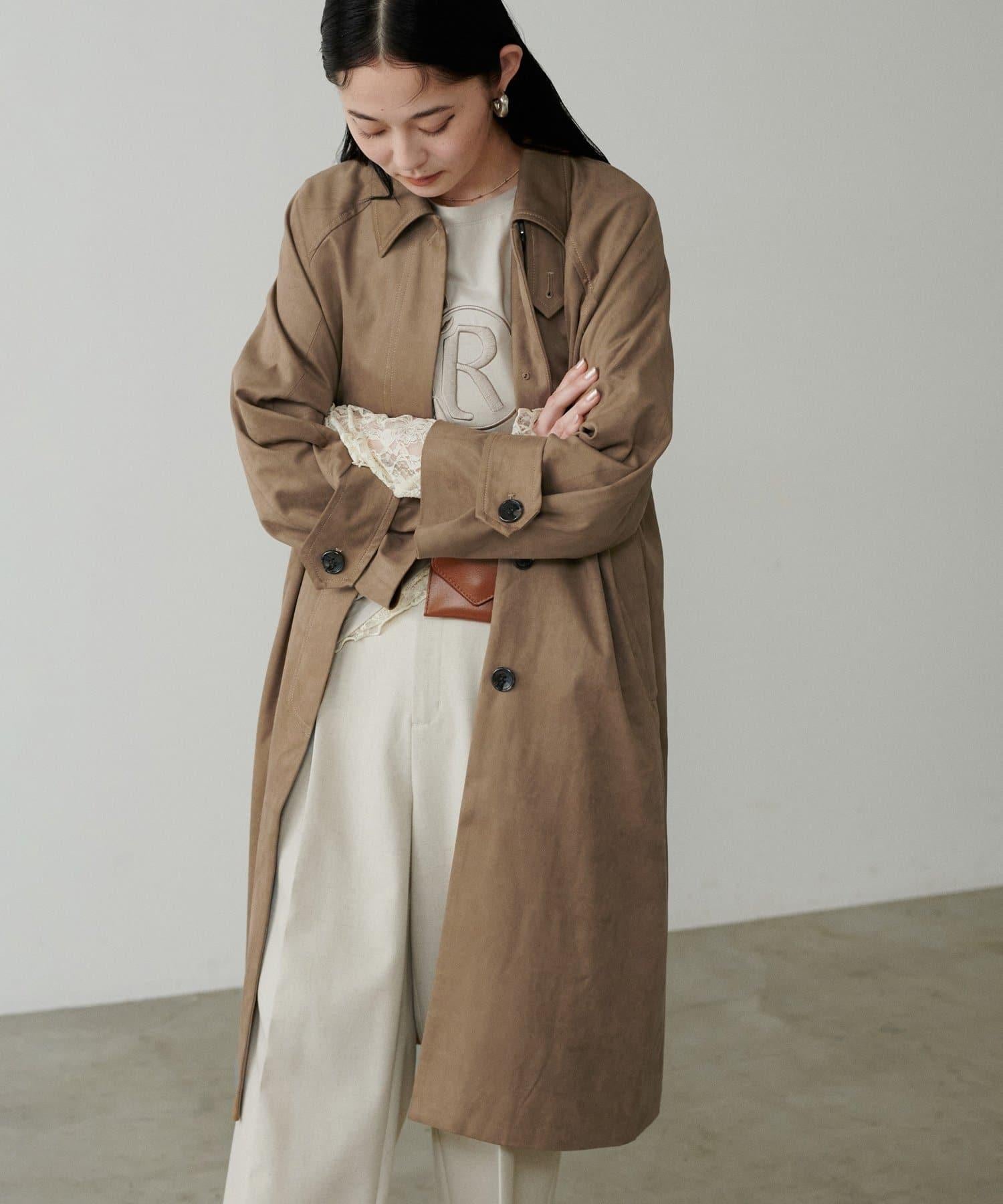 麂皮絨啞光質感的長款大衣,提升了秋冬季的協調性。