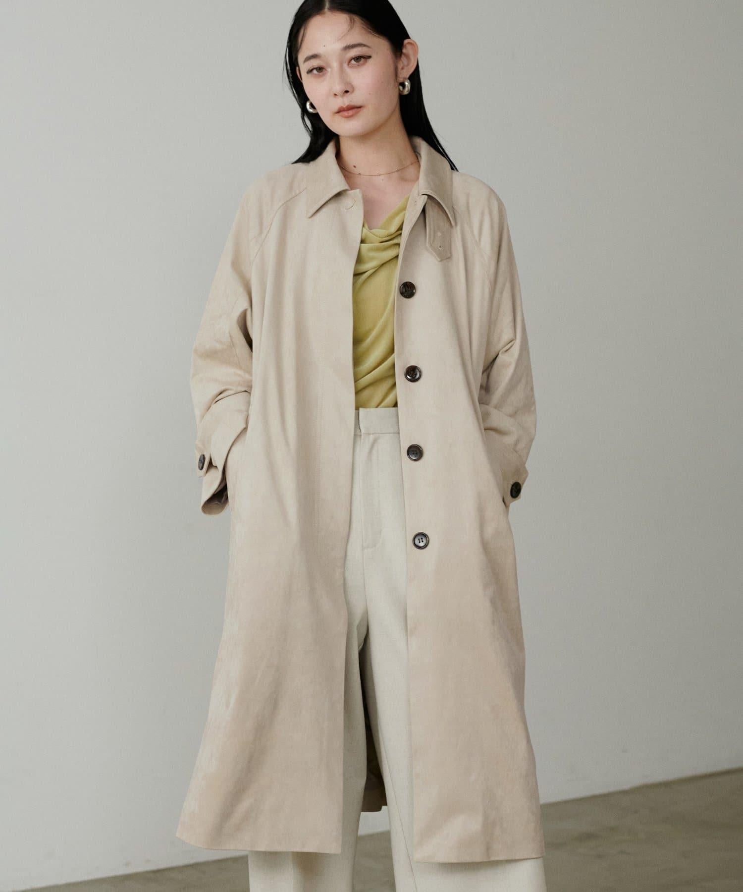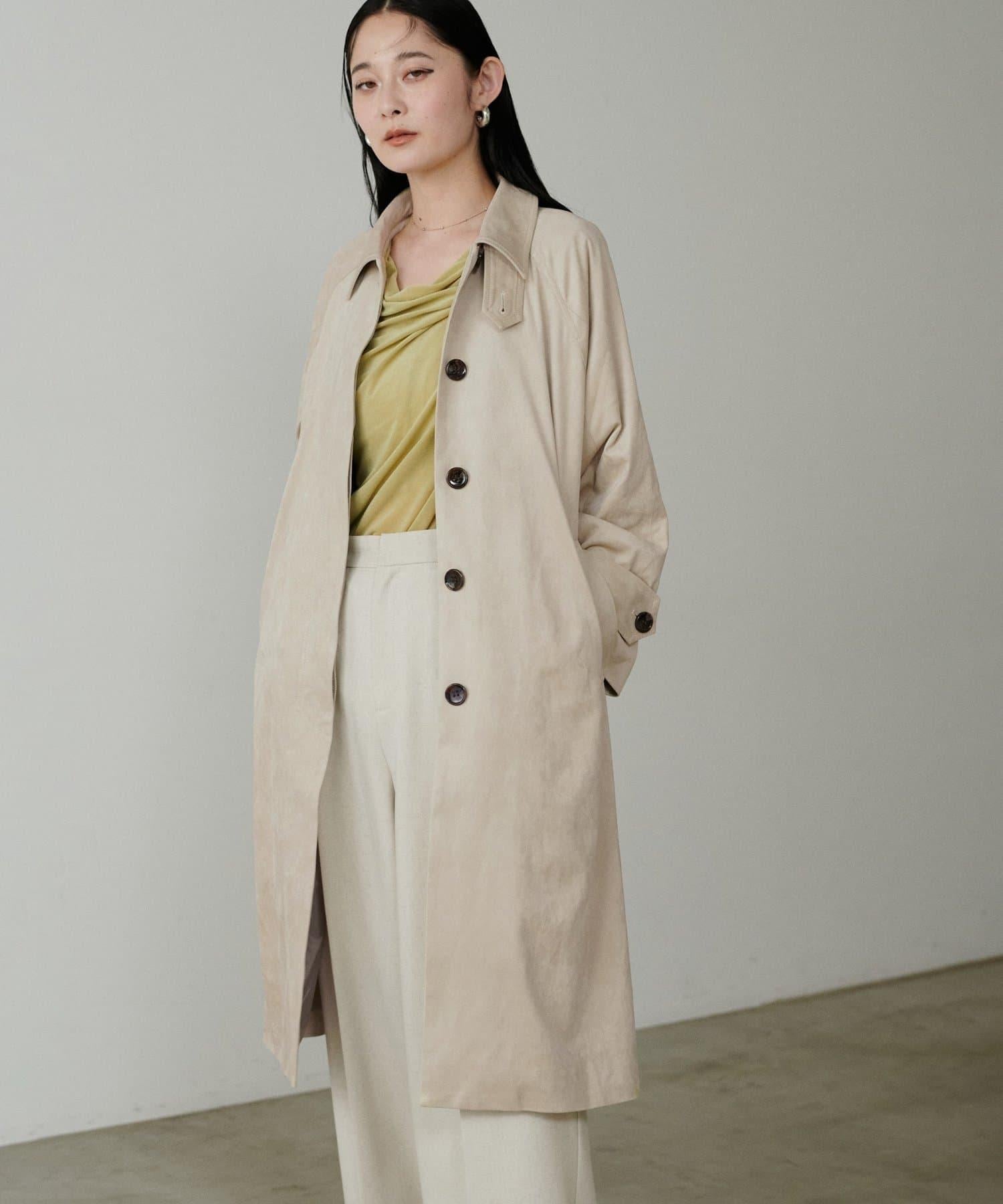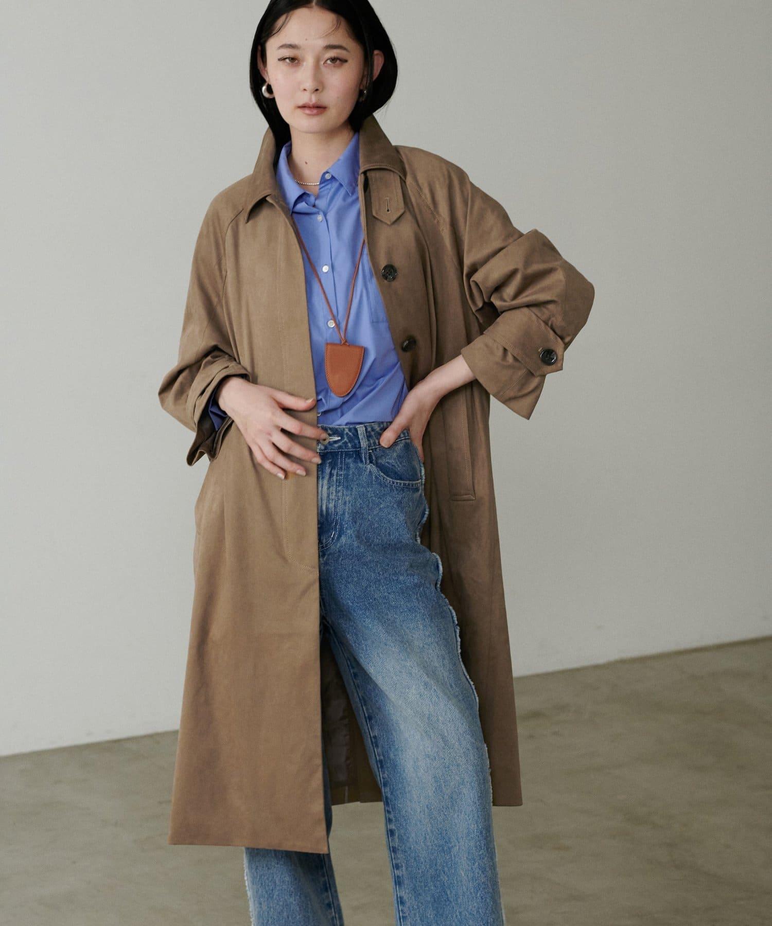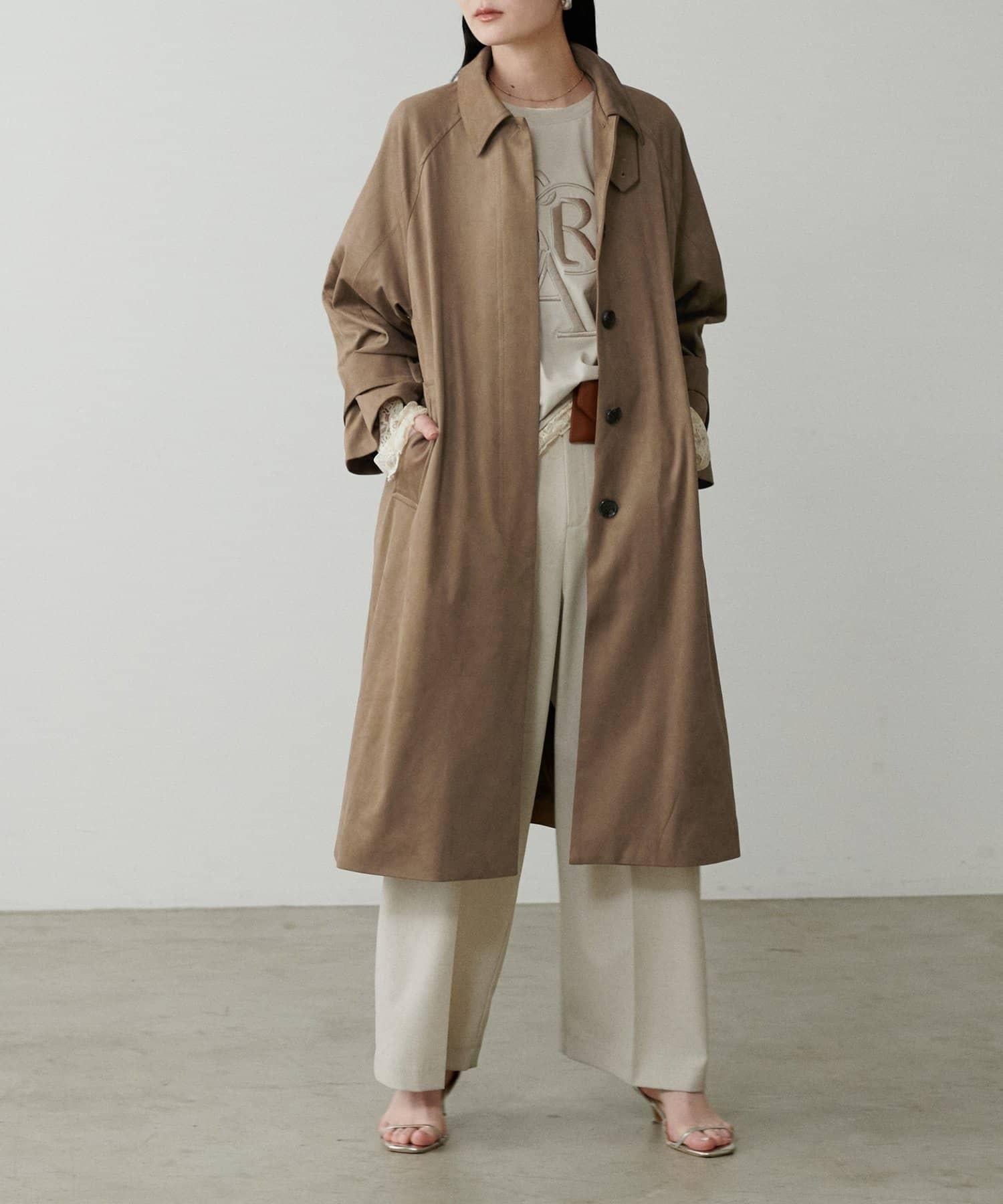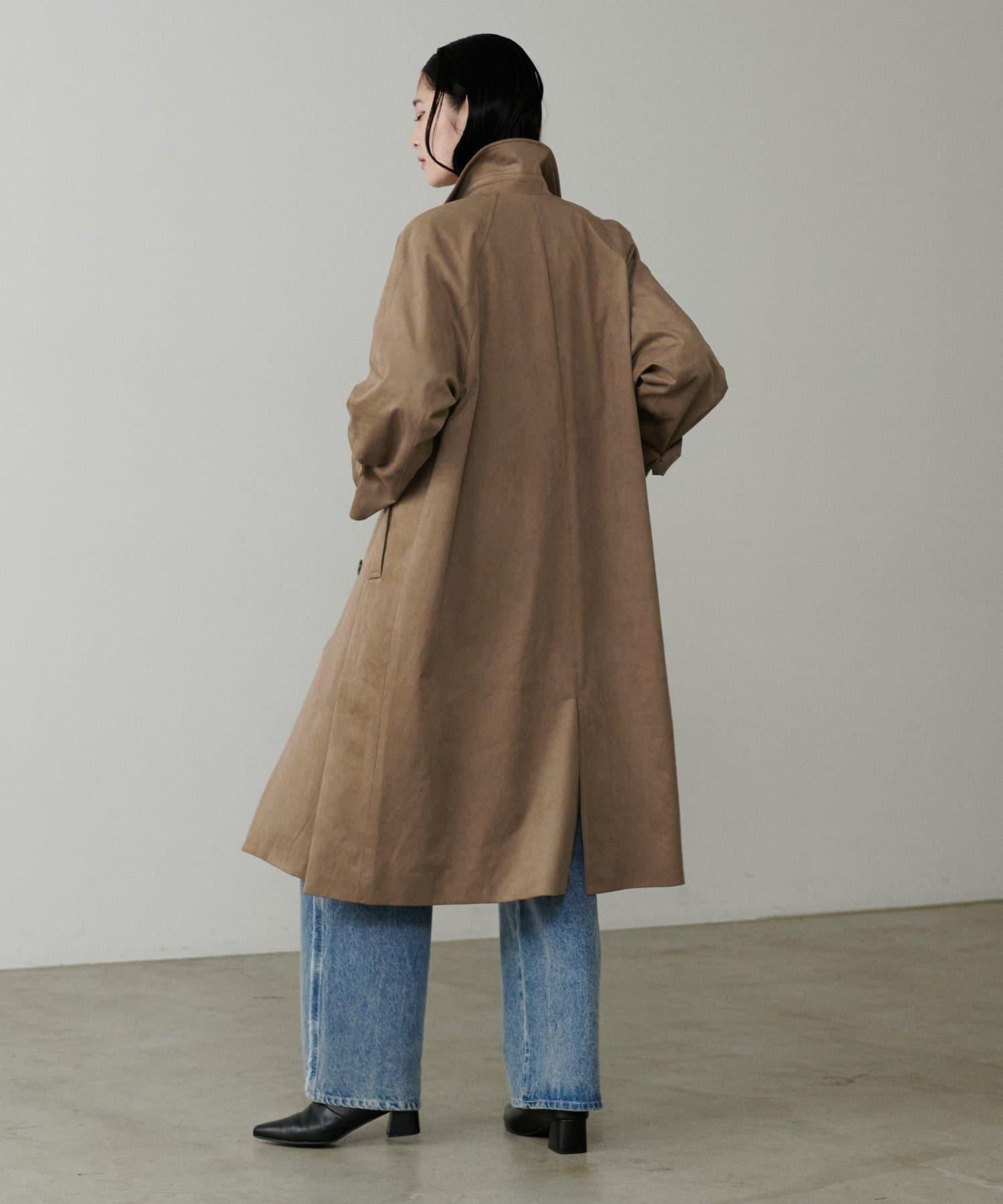 麂皮絨啞光質感的長款大衣,提升了秋冬季的協調性。