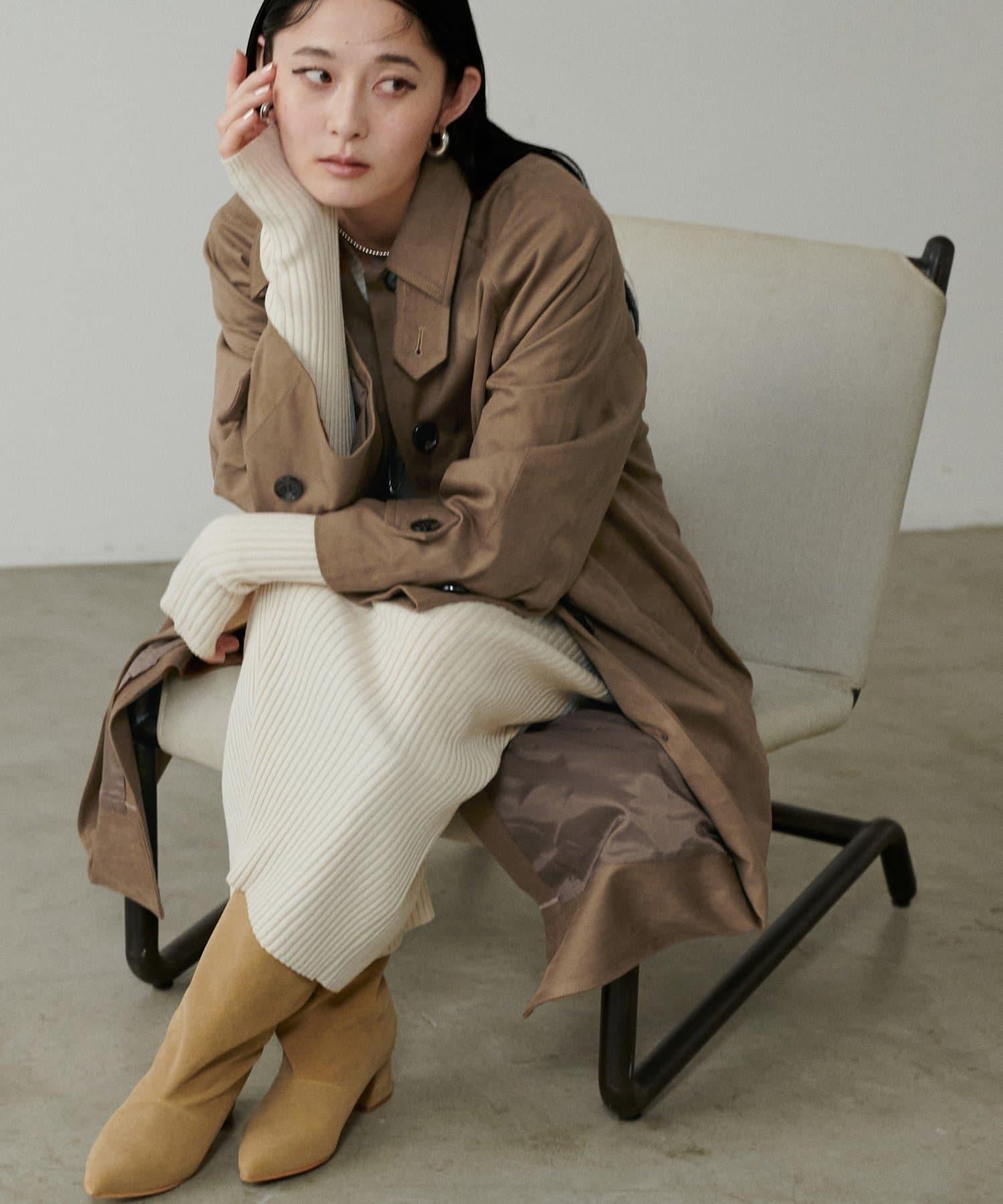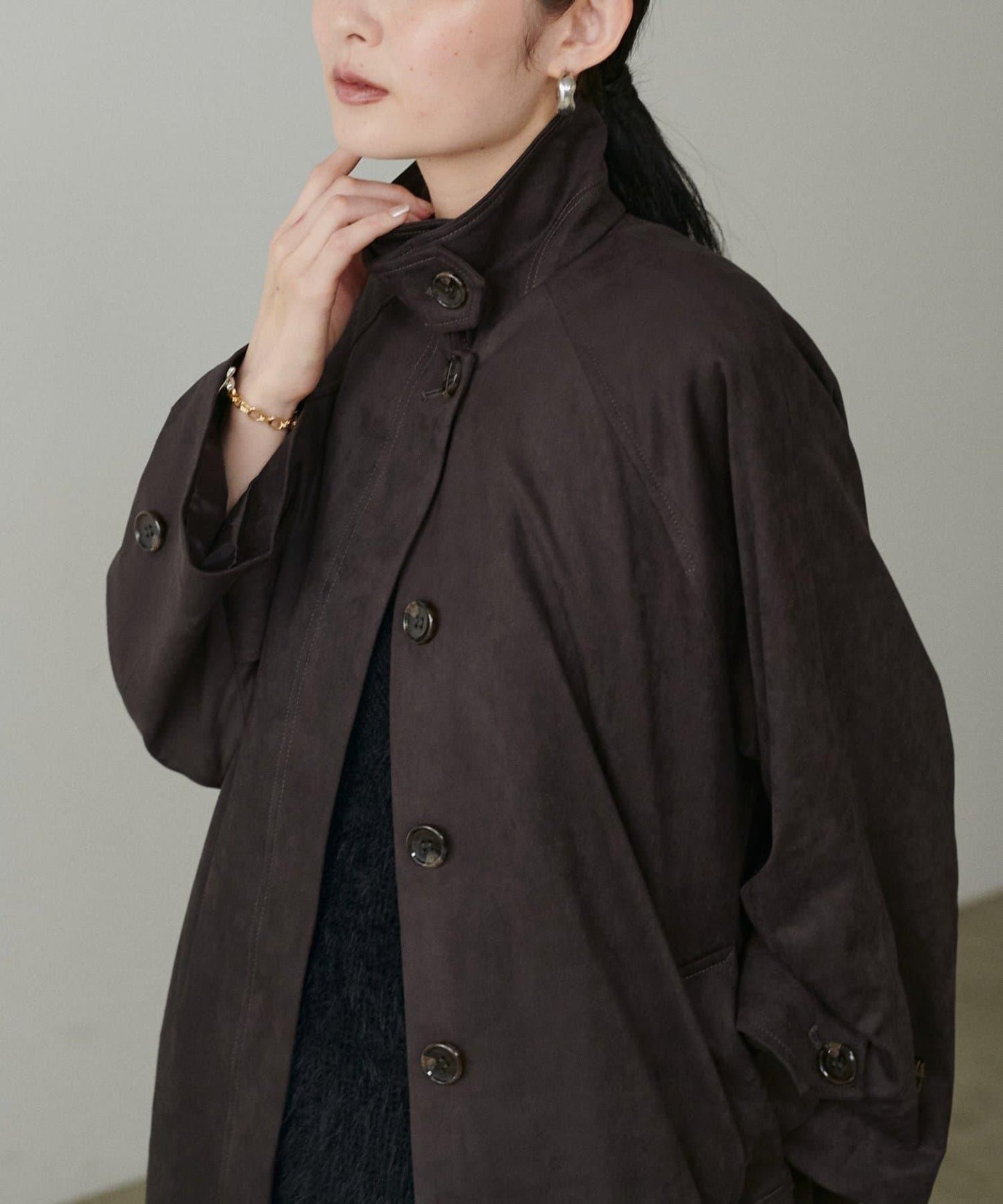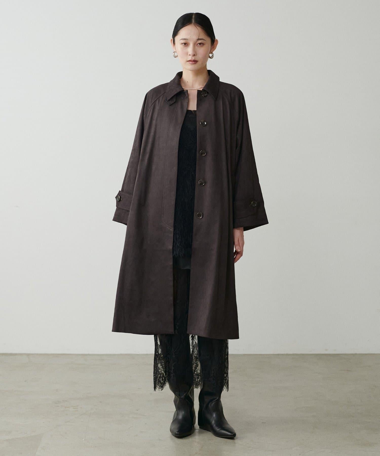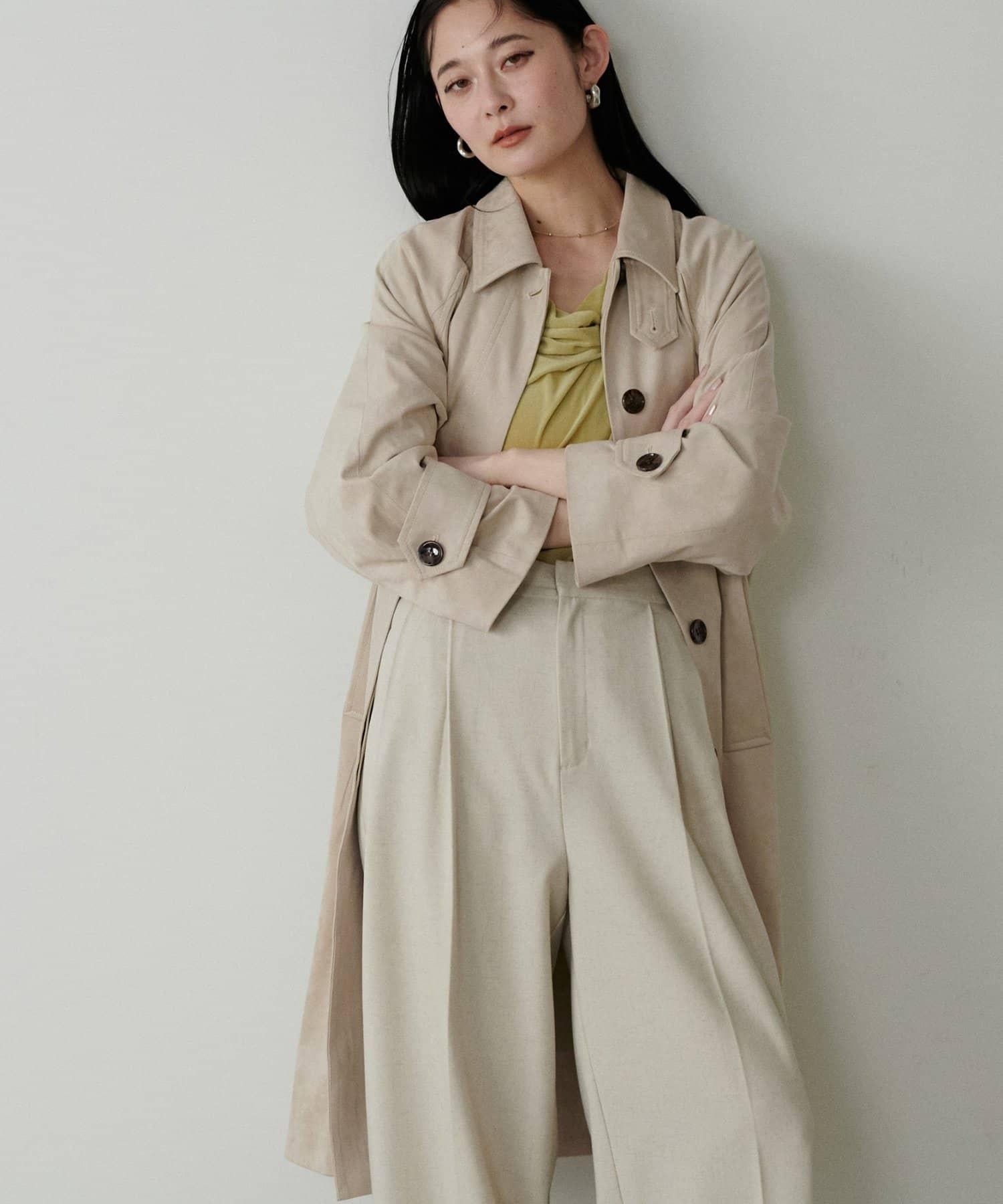 麂皮絨啞光質感的長款大衣,提升了秋冬季的協調性。