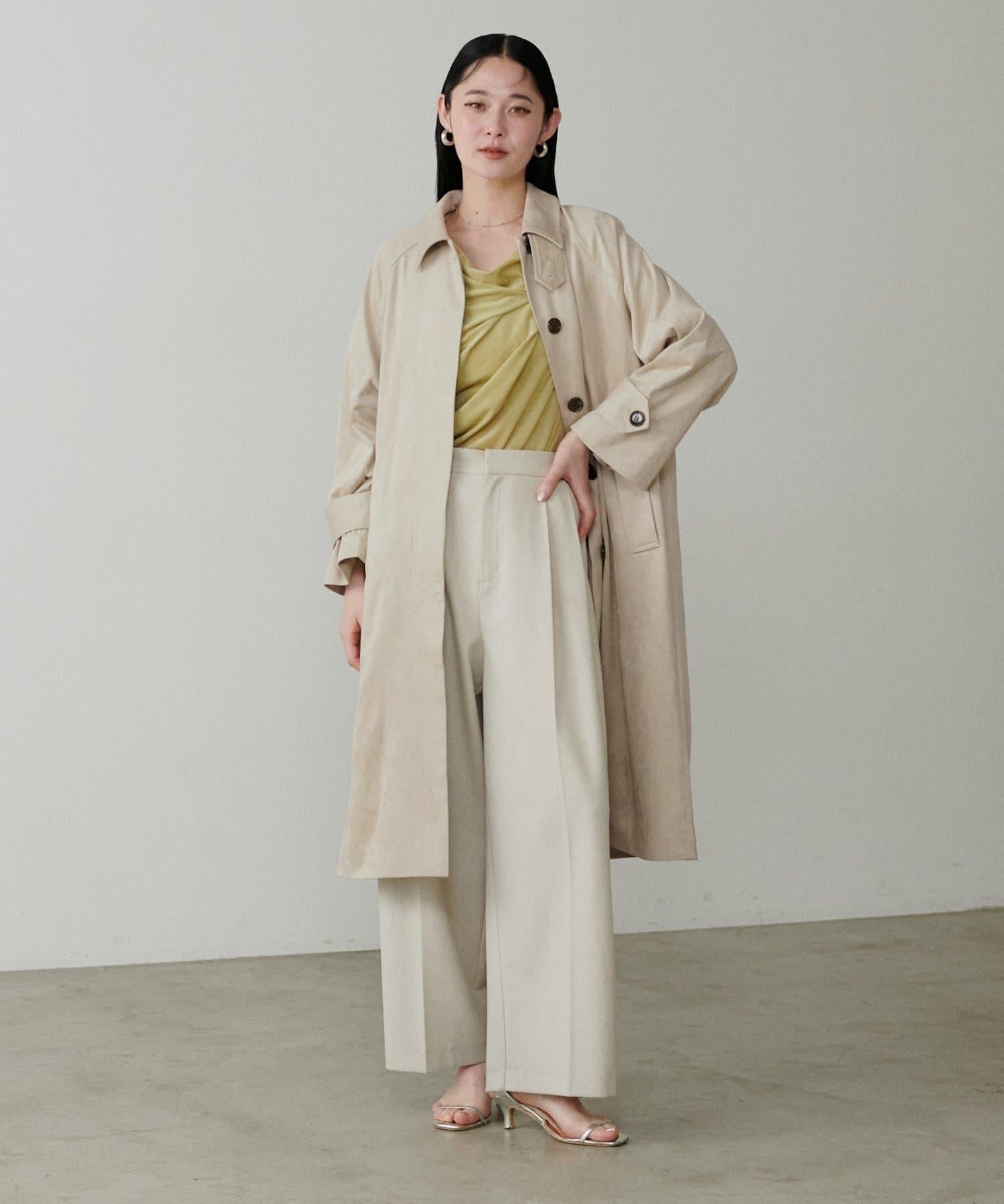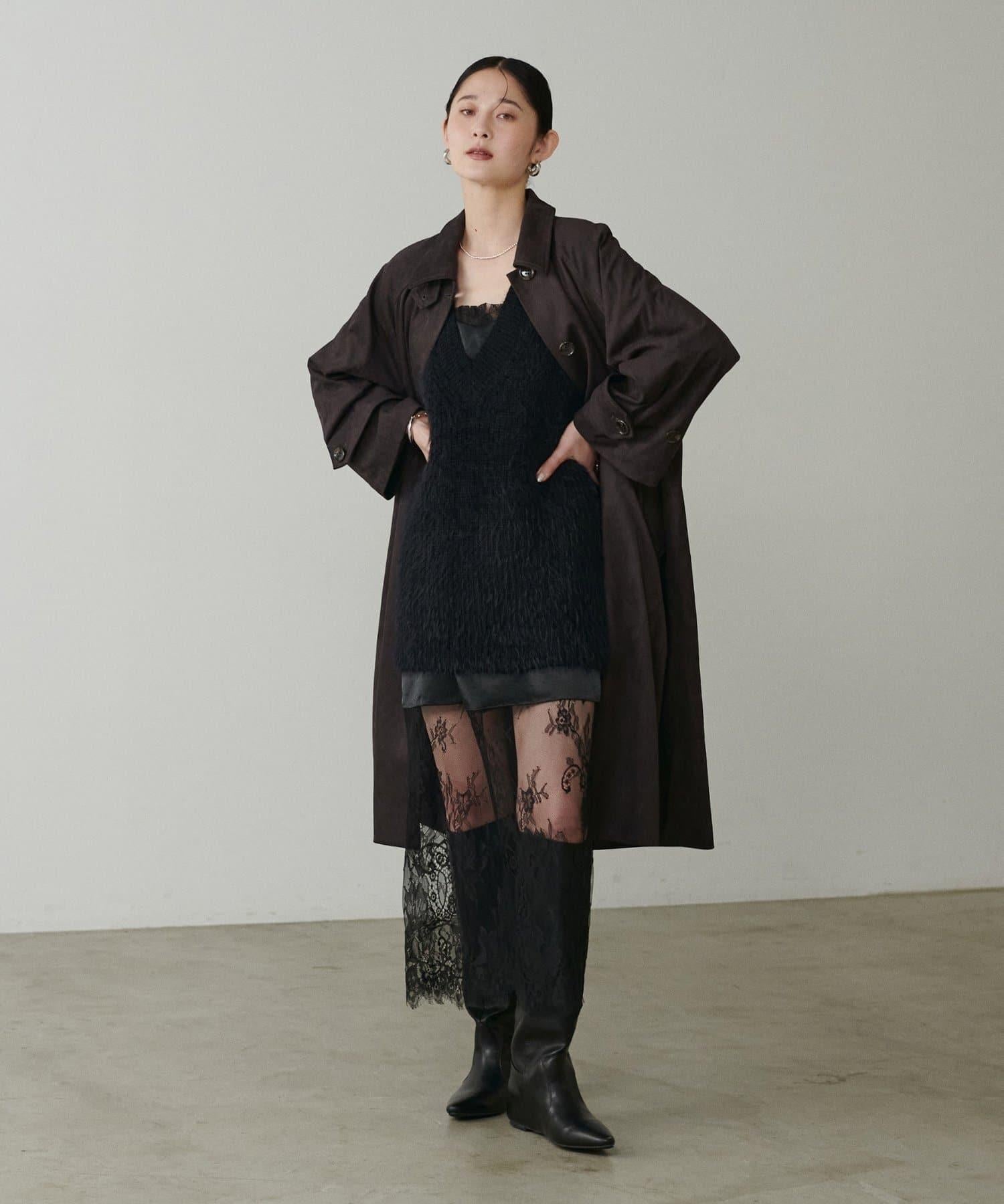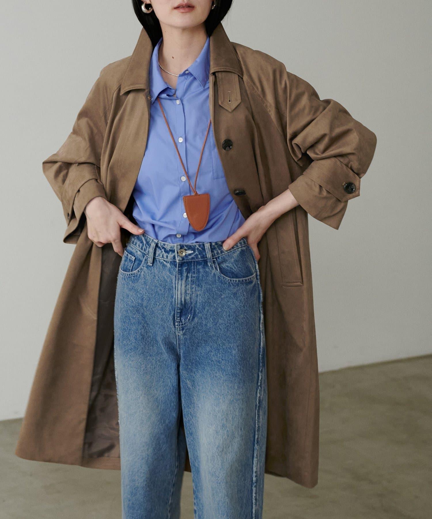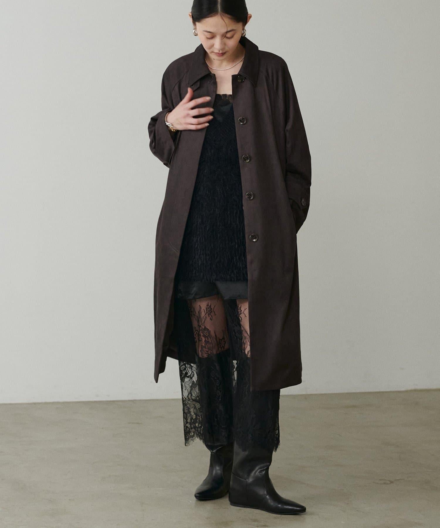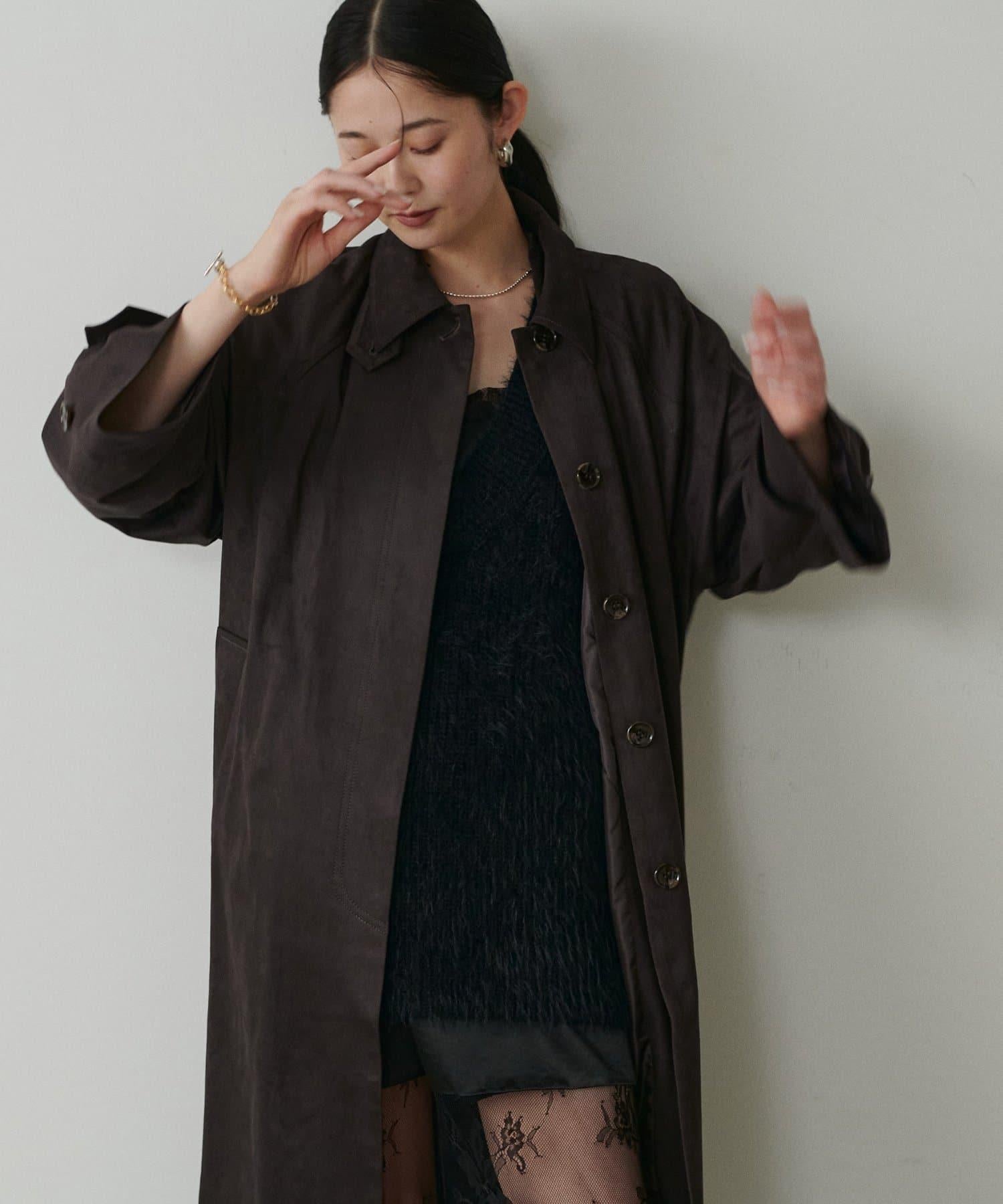 麂皮絨啞光質感的長款大衣,提升了秋冬季的協調性。