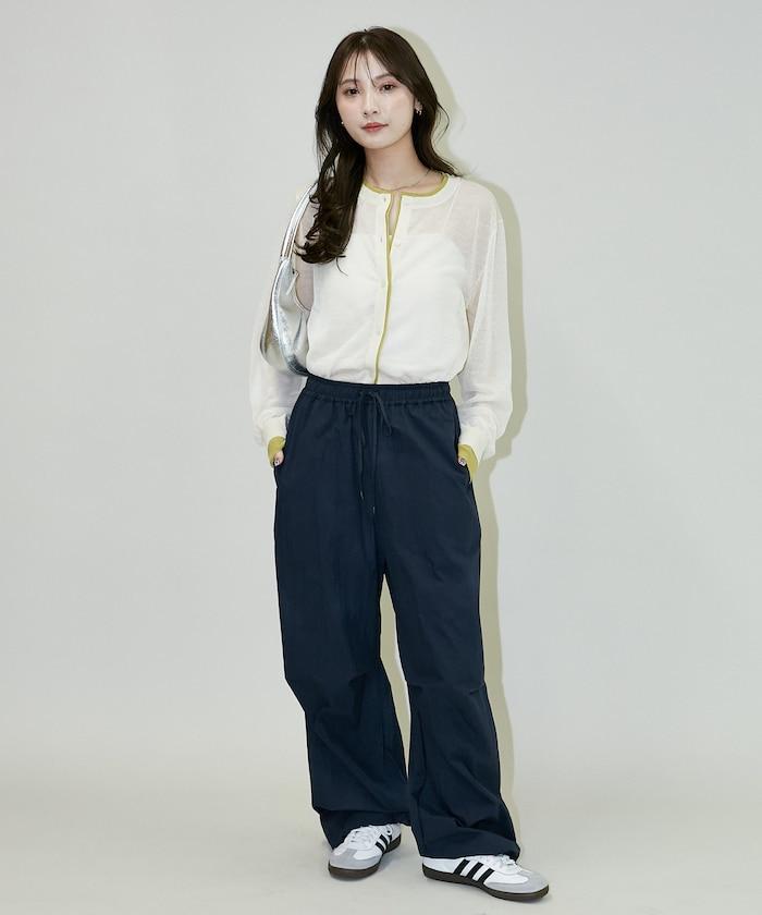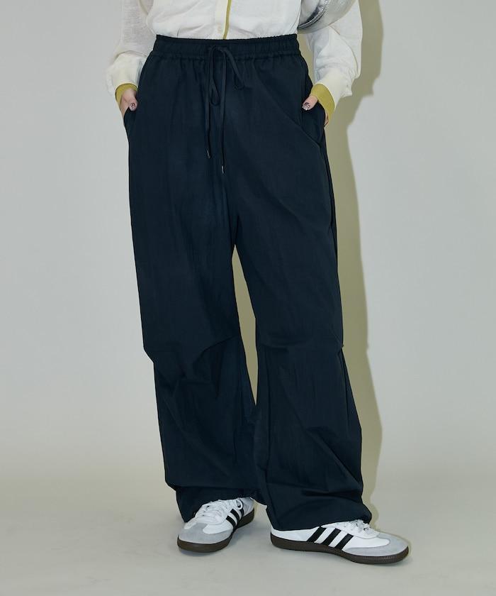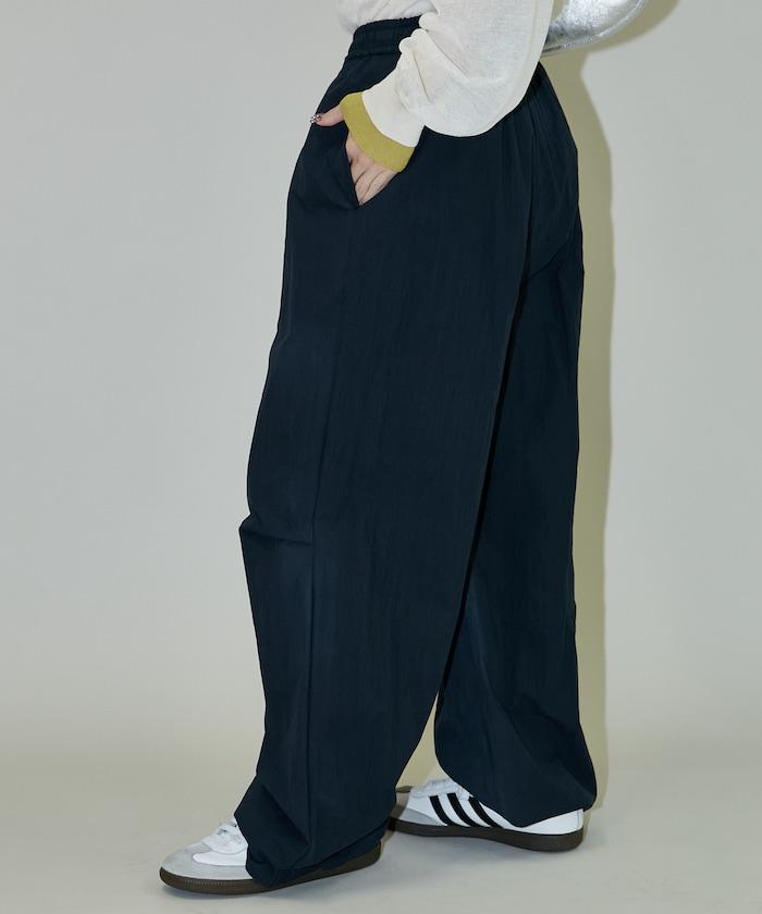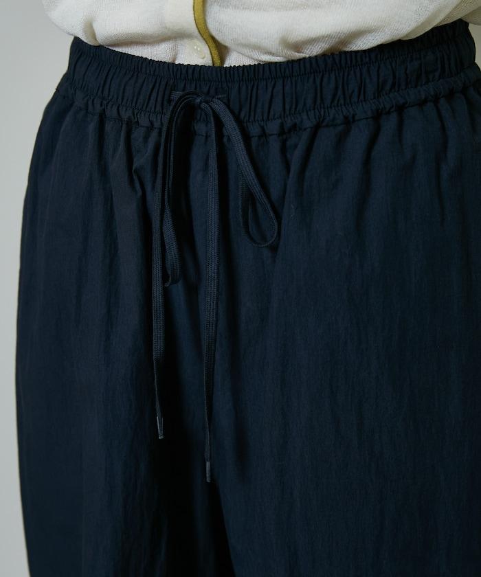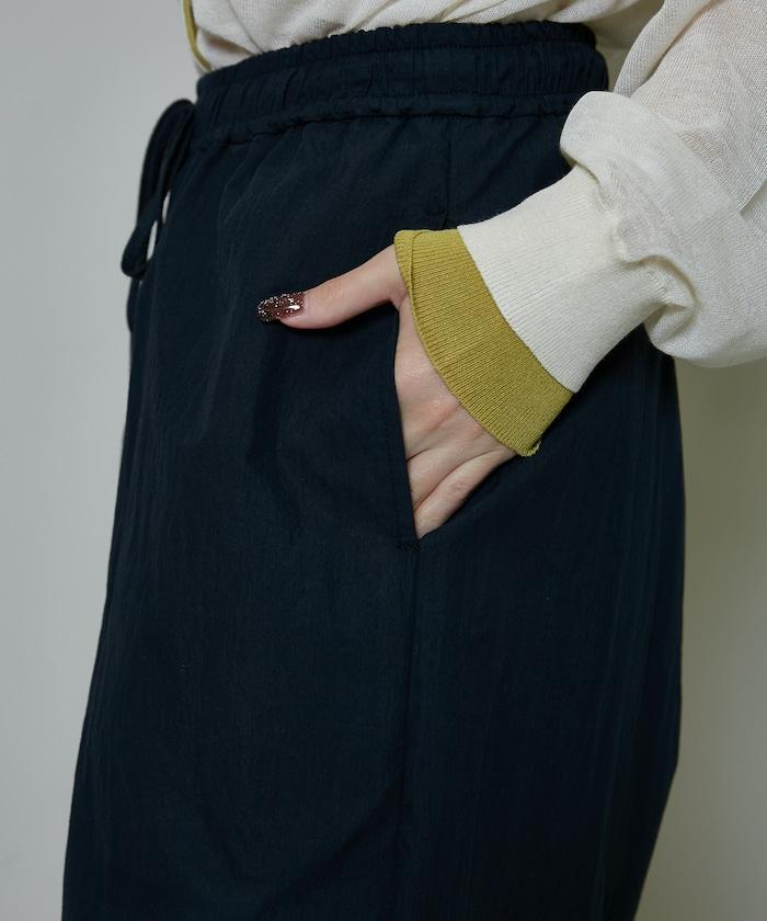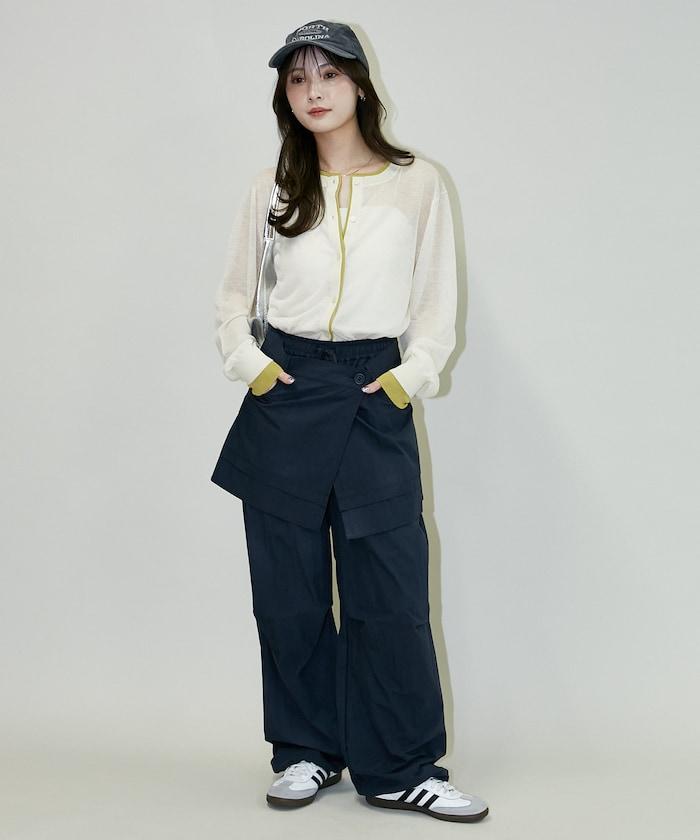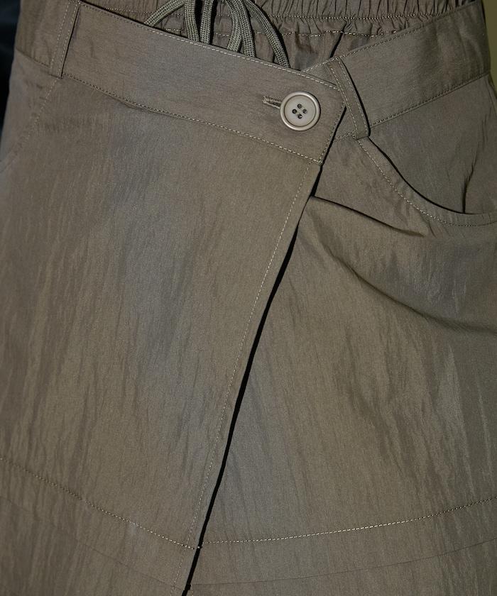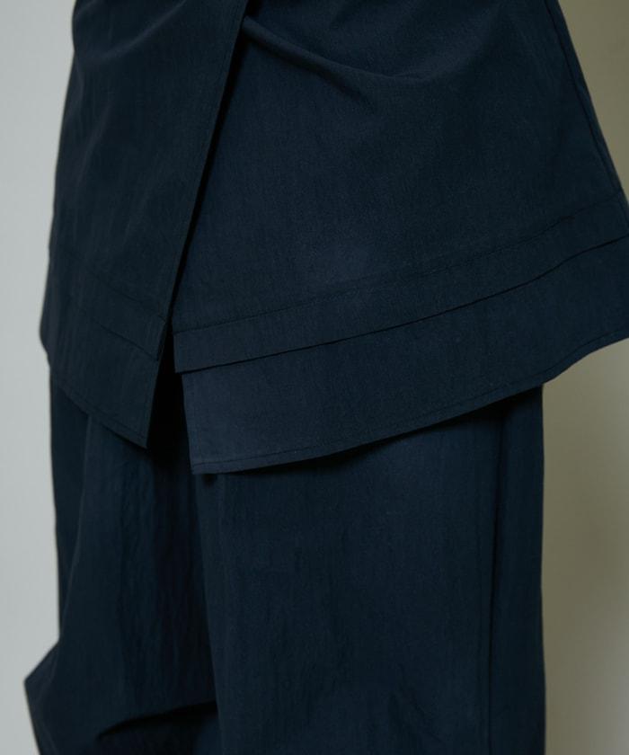 尼龍簡易長褲搭配裹身裙,層疊設計與眾不同。