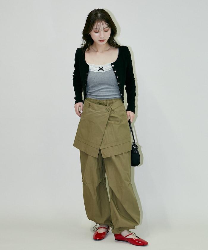 多層次設計,包裙與長褲對接,只需一件即可完成造型。