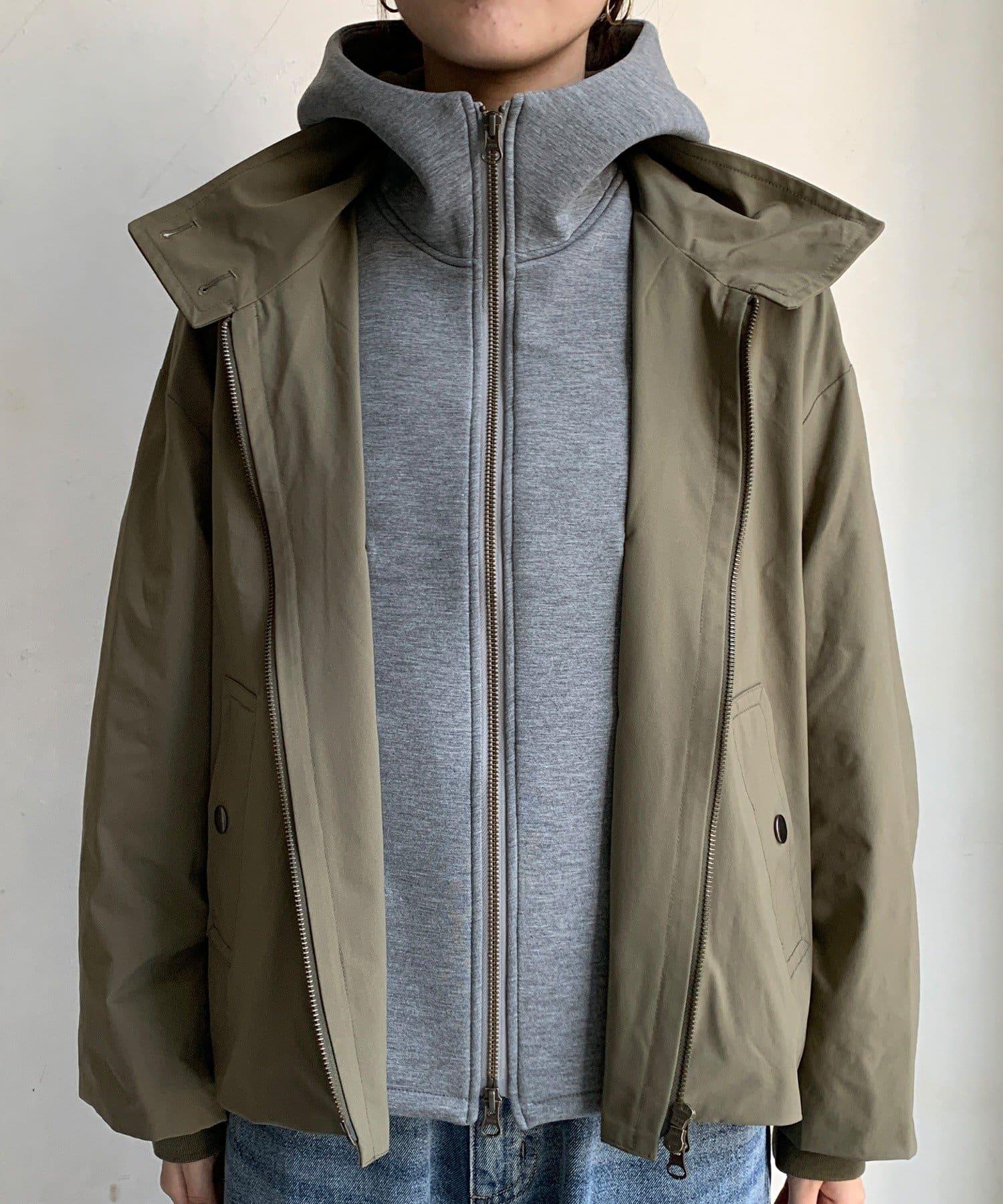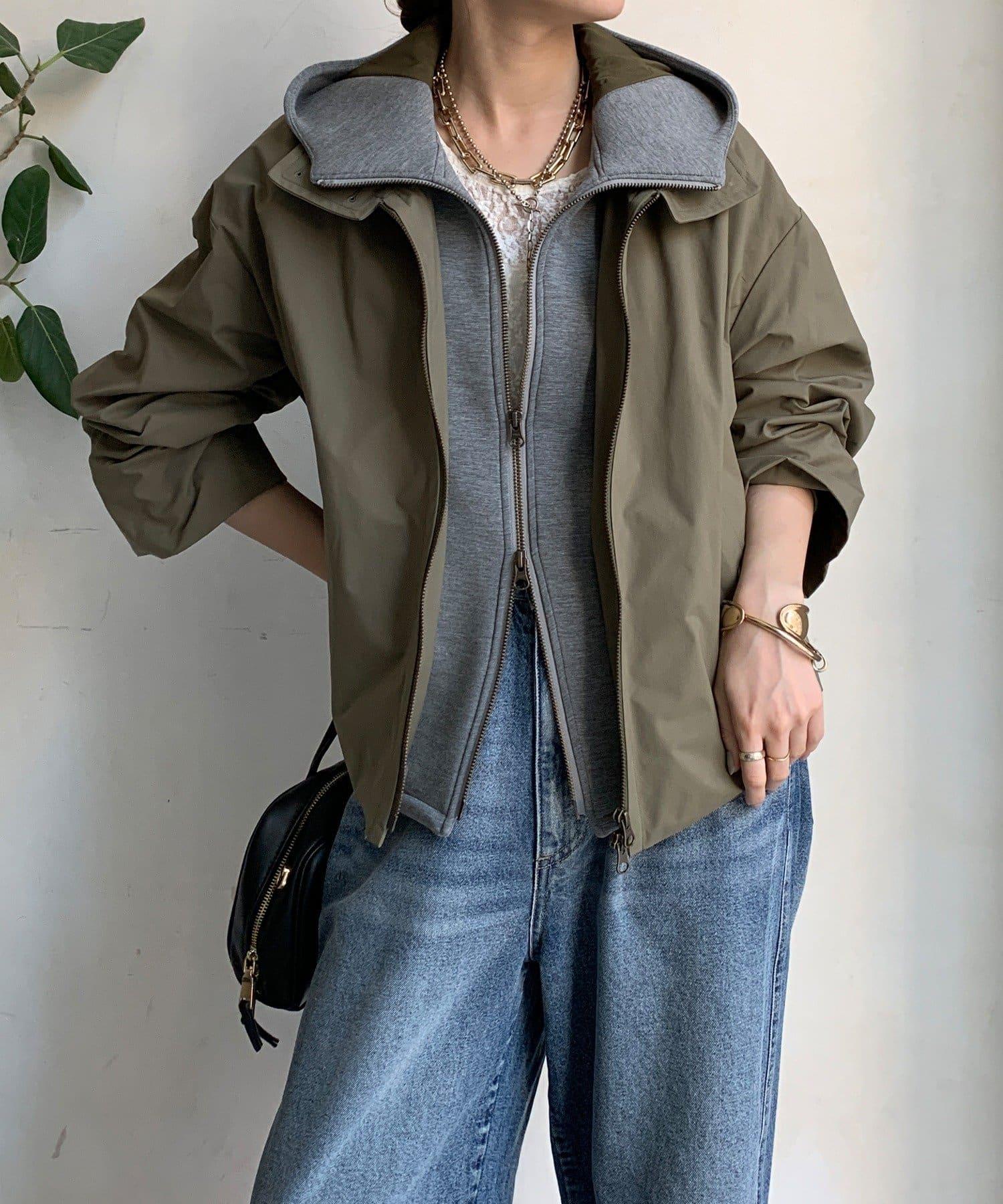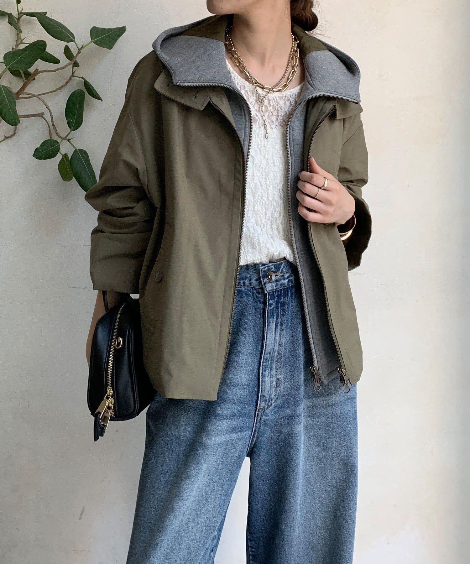 穿上連帽衫後,可以給人休閒、活躍的印象;不穿連帽衫時,則是一件簡潔的罩衫!
