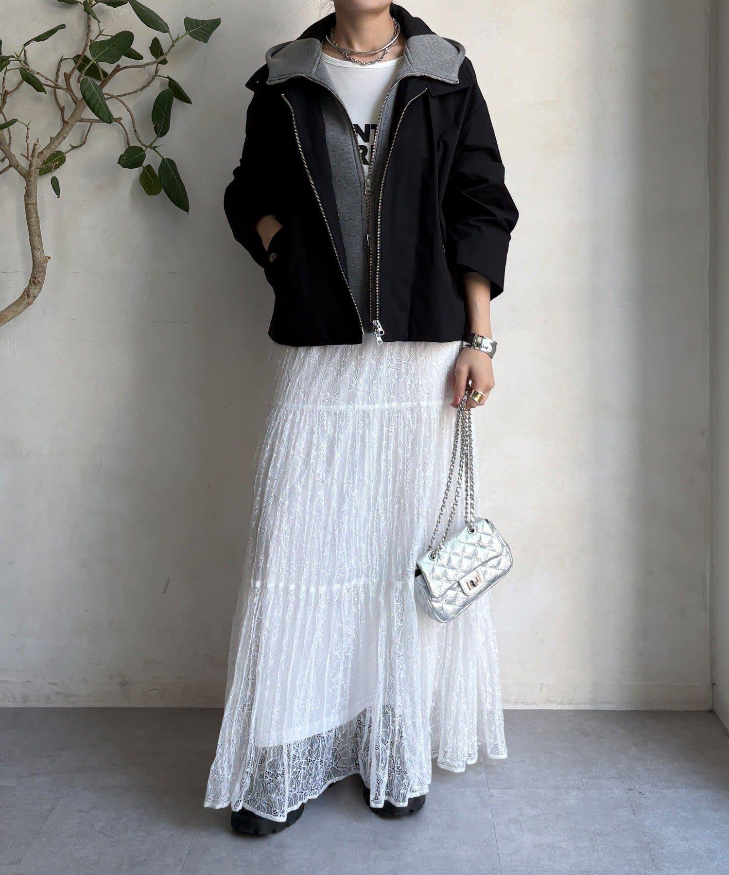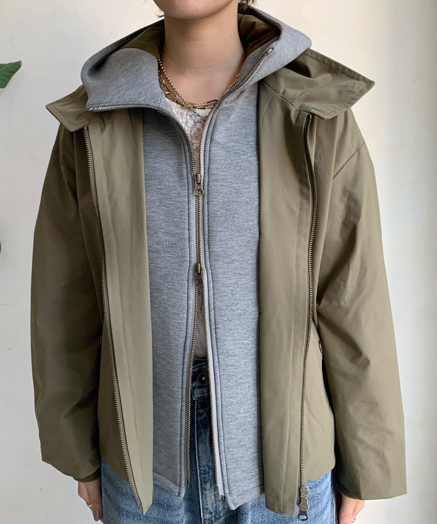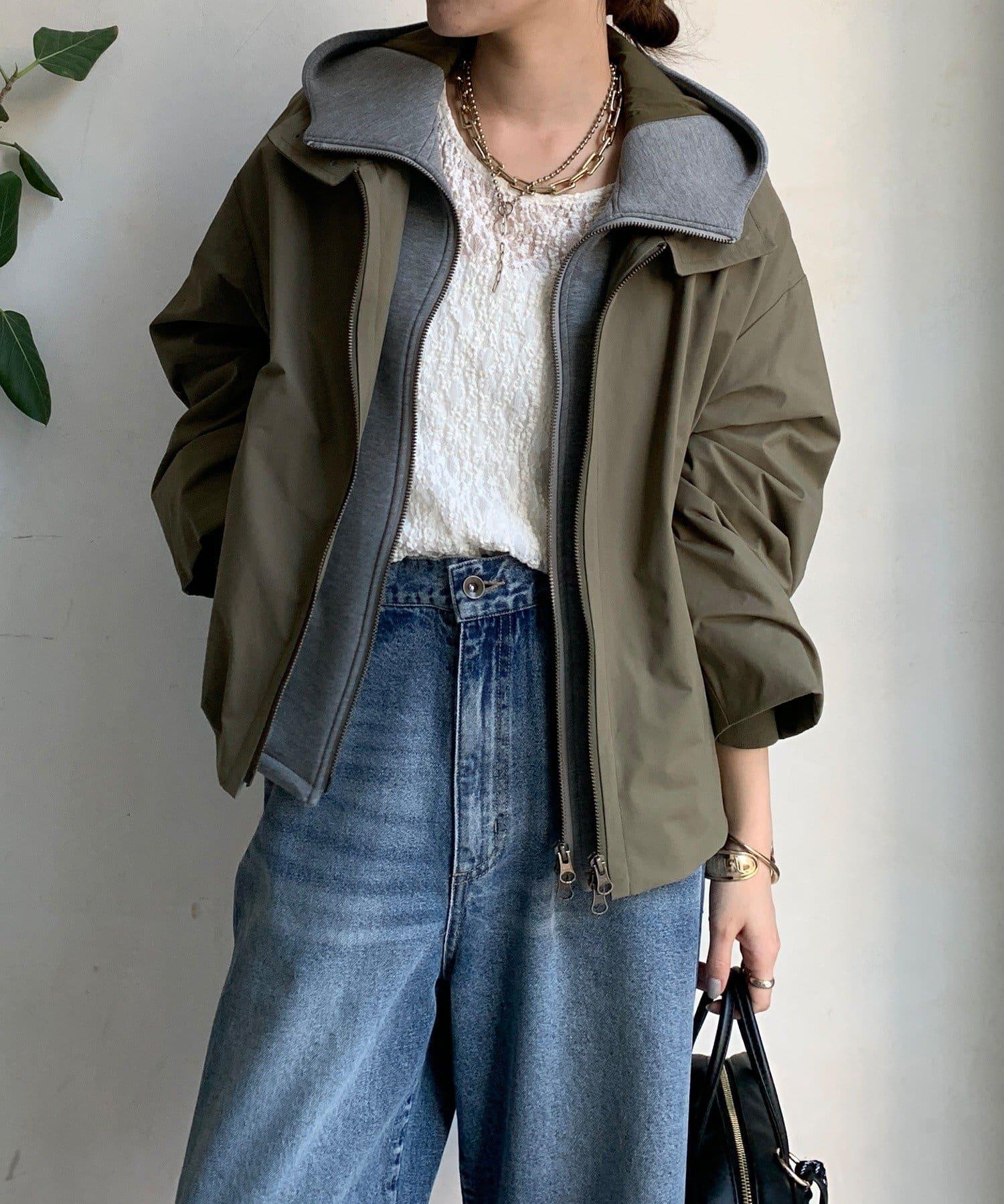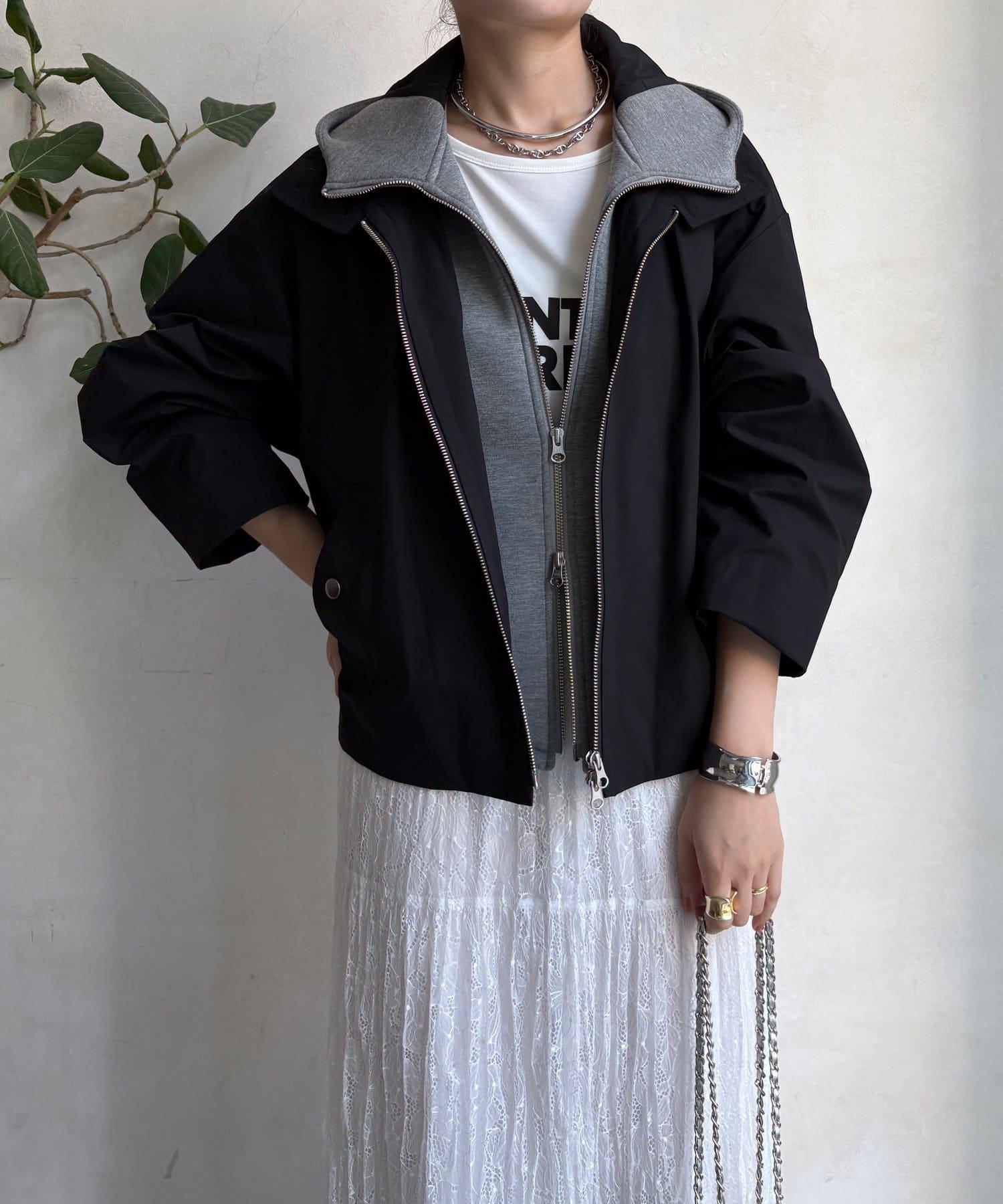 穿上連帽衫後,可以給人休閒、活躍的印象;不穿連帽衫時,則是一件簡潔的罩衫!
