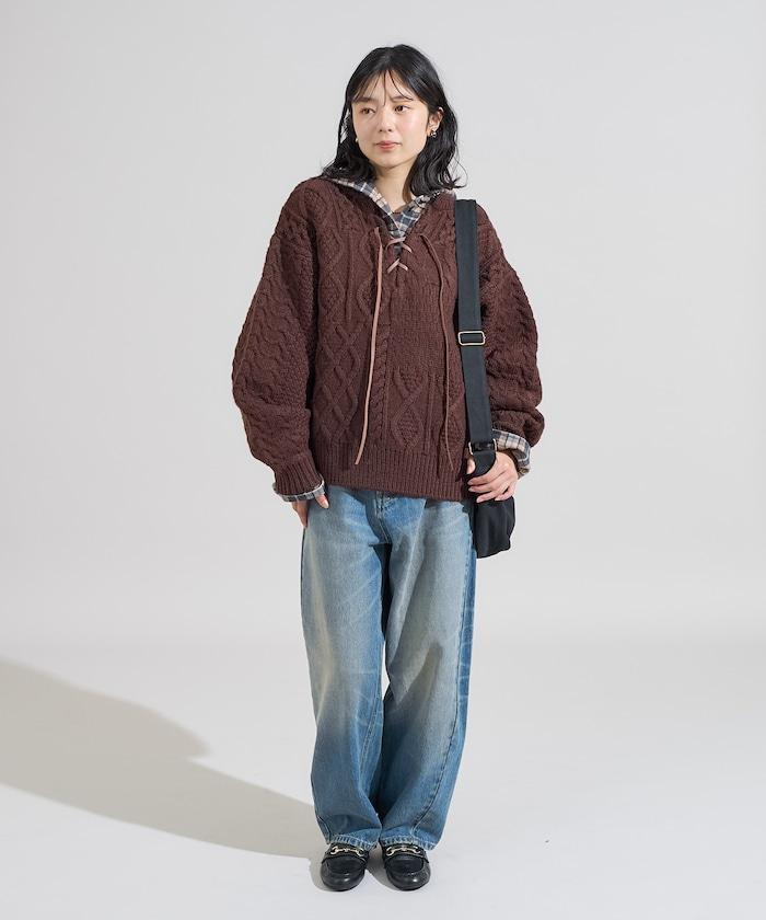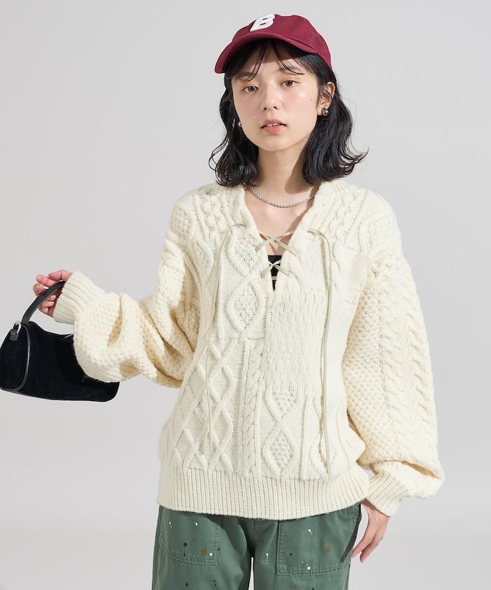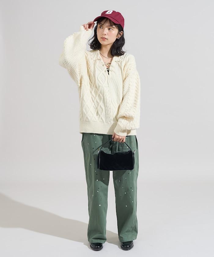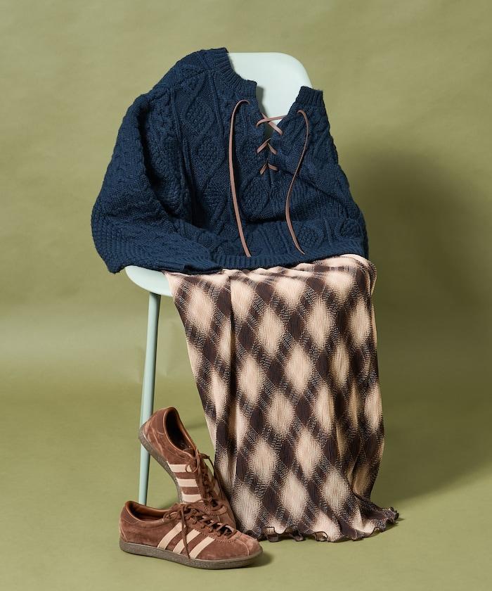 這款引人注目的單品採用了將針織線繩改造成繫帶的設計。