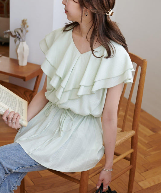 2way泡泡袖下垂荷葉邊上衣