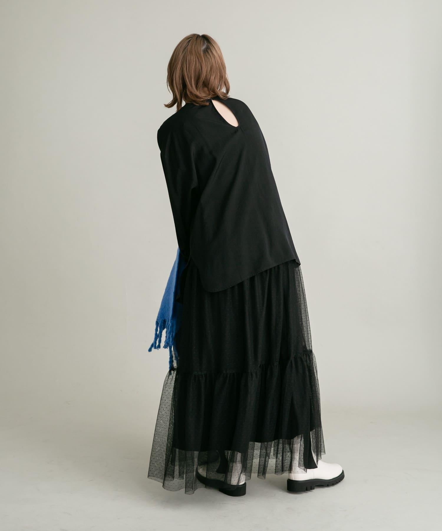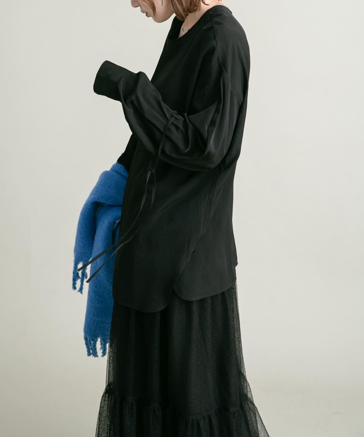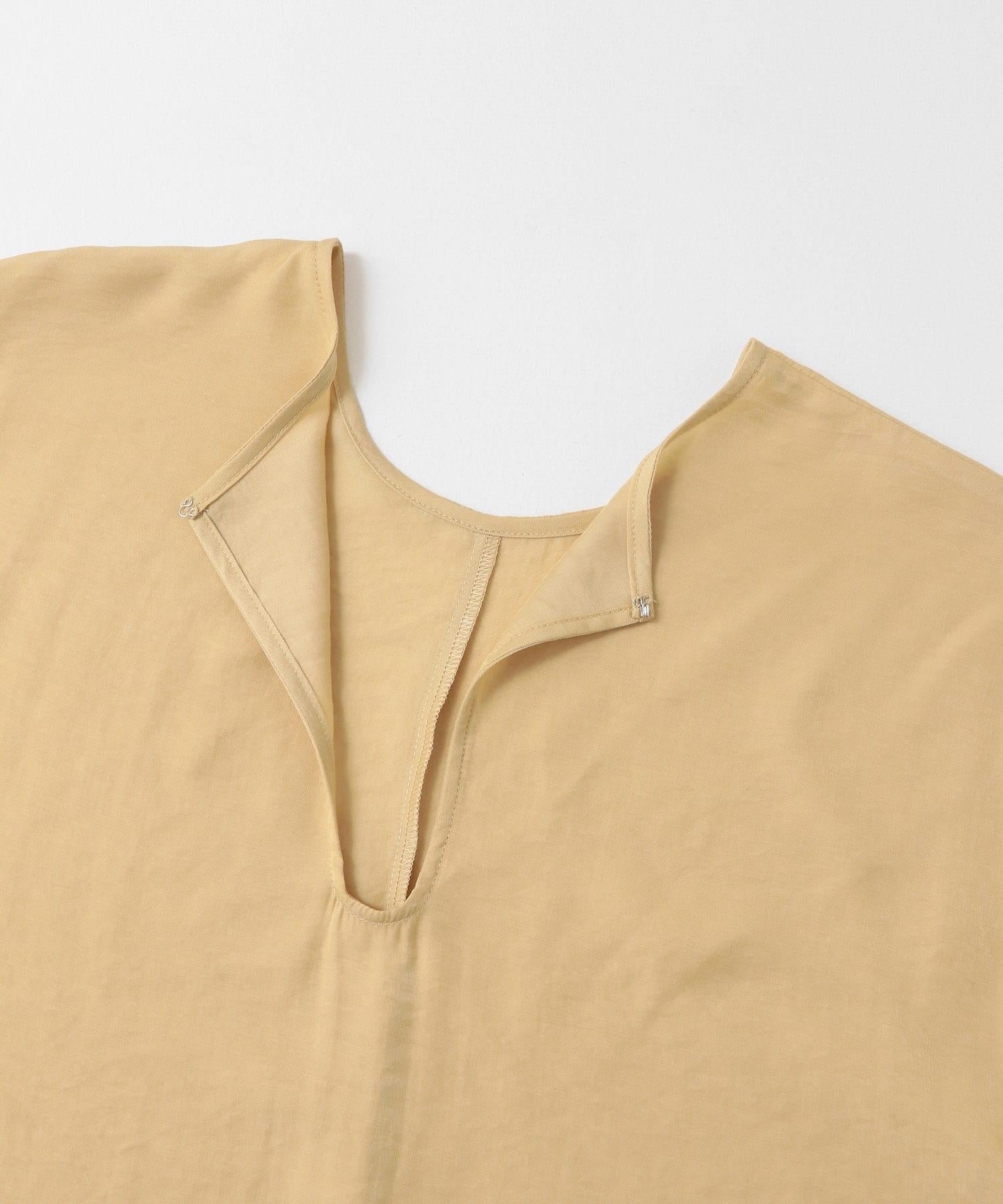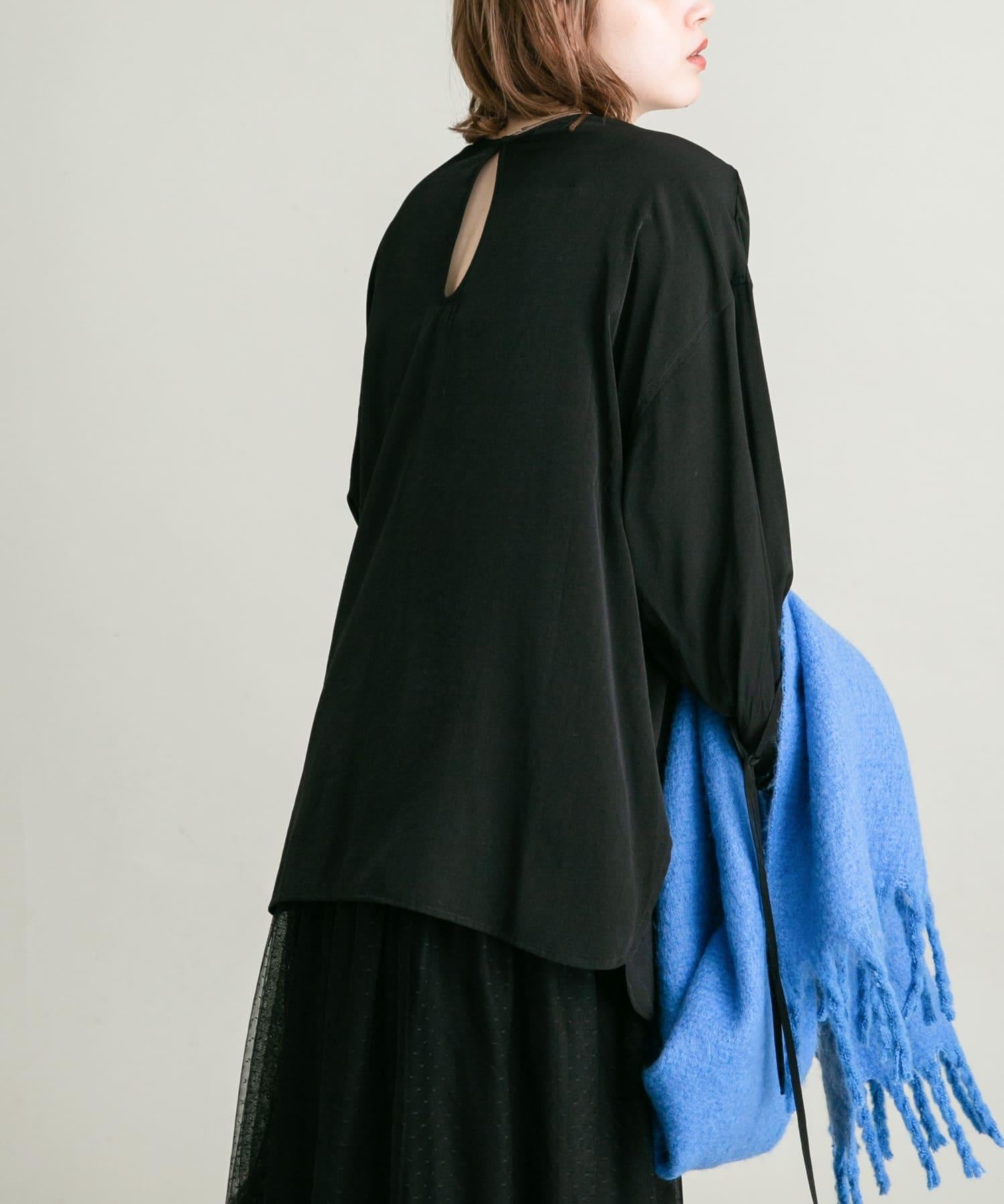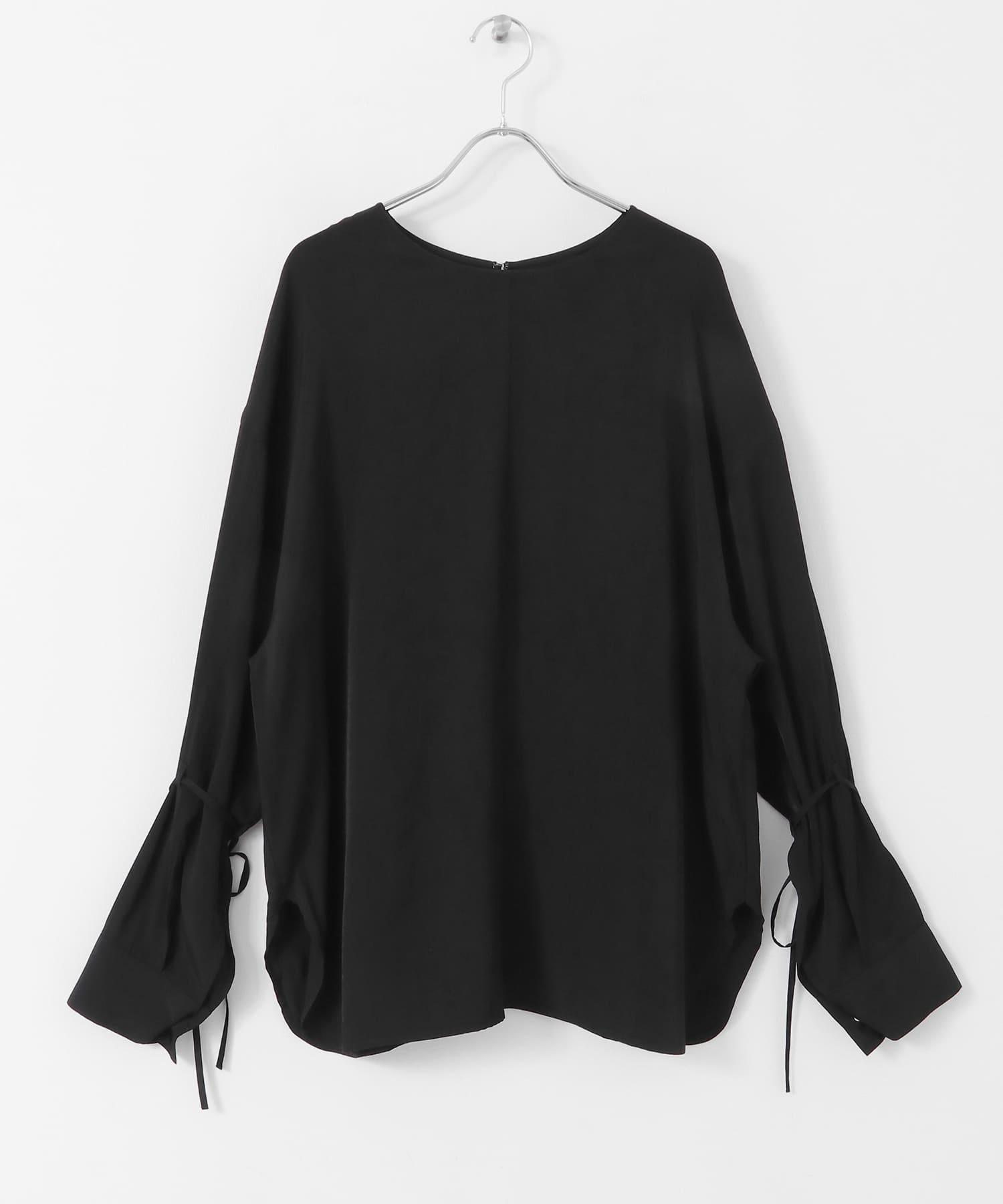 這款襯衫採用前後雙向設計,面料質感寬鬆。這款上衣既可作為圓領上衣穿著,也可取下掛鉤作為圓領上衣穿著。袖子可以系在一起,以改變輪廓。