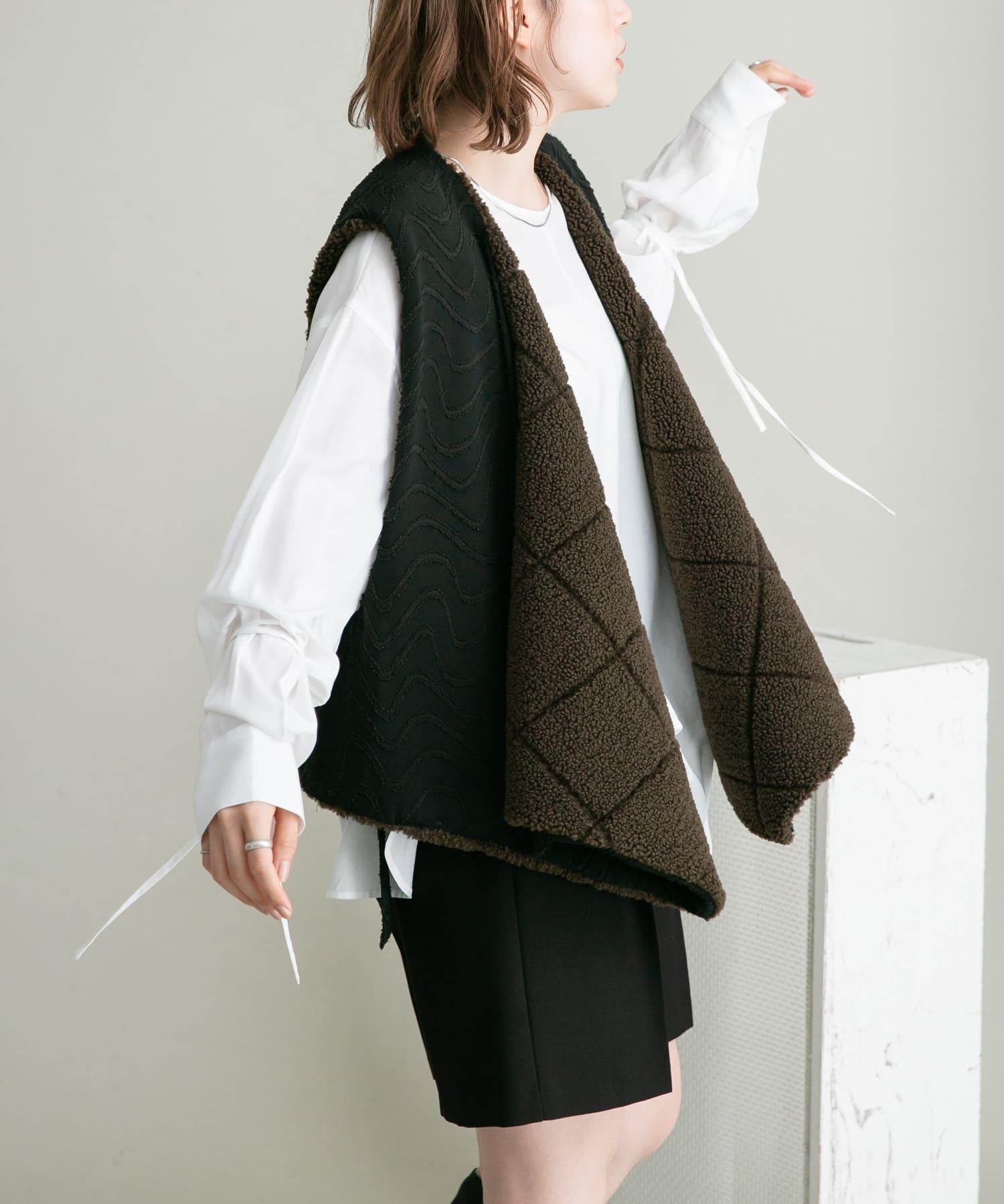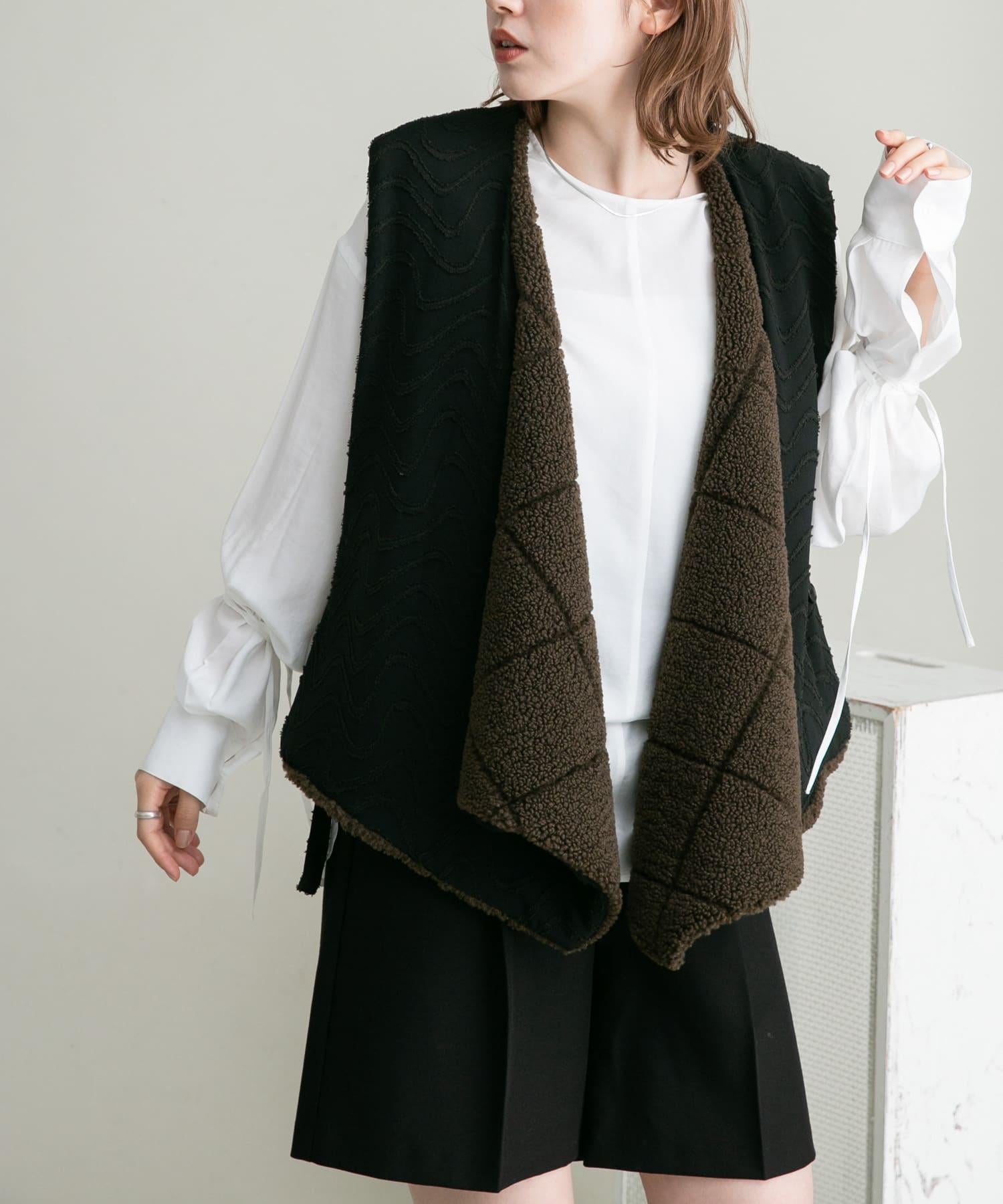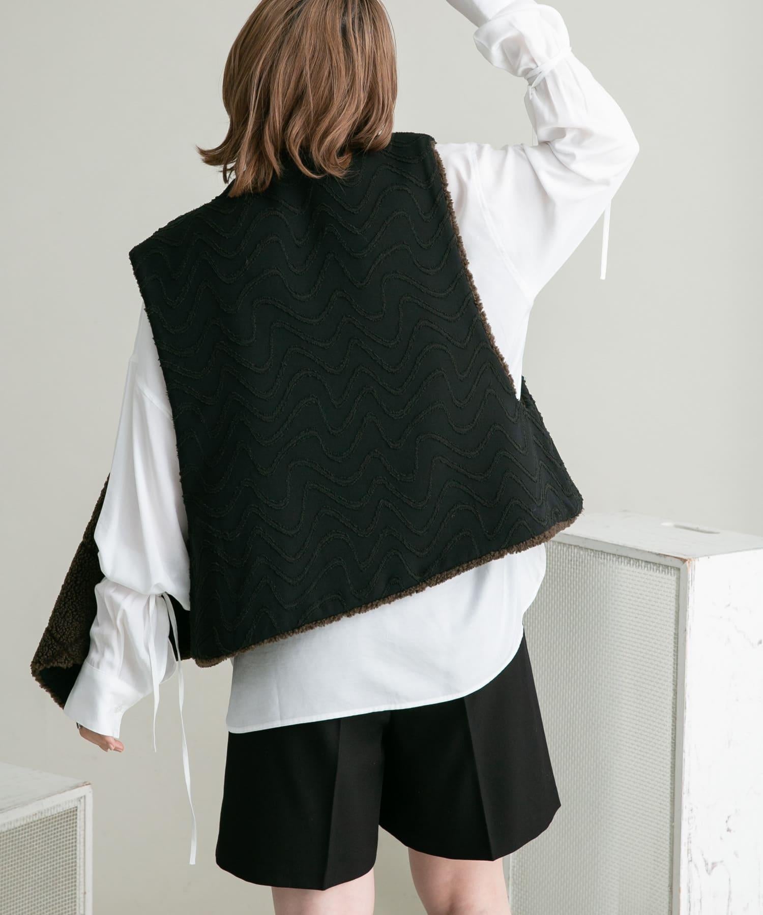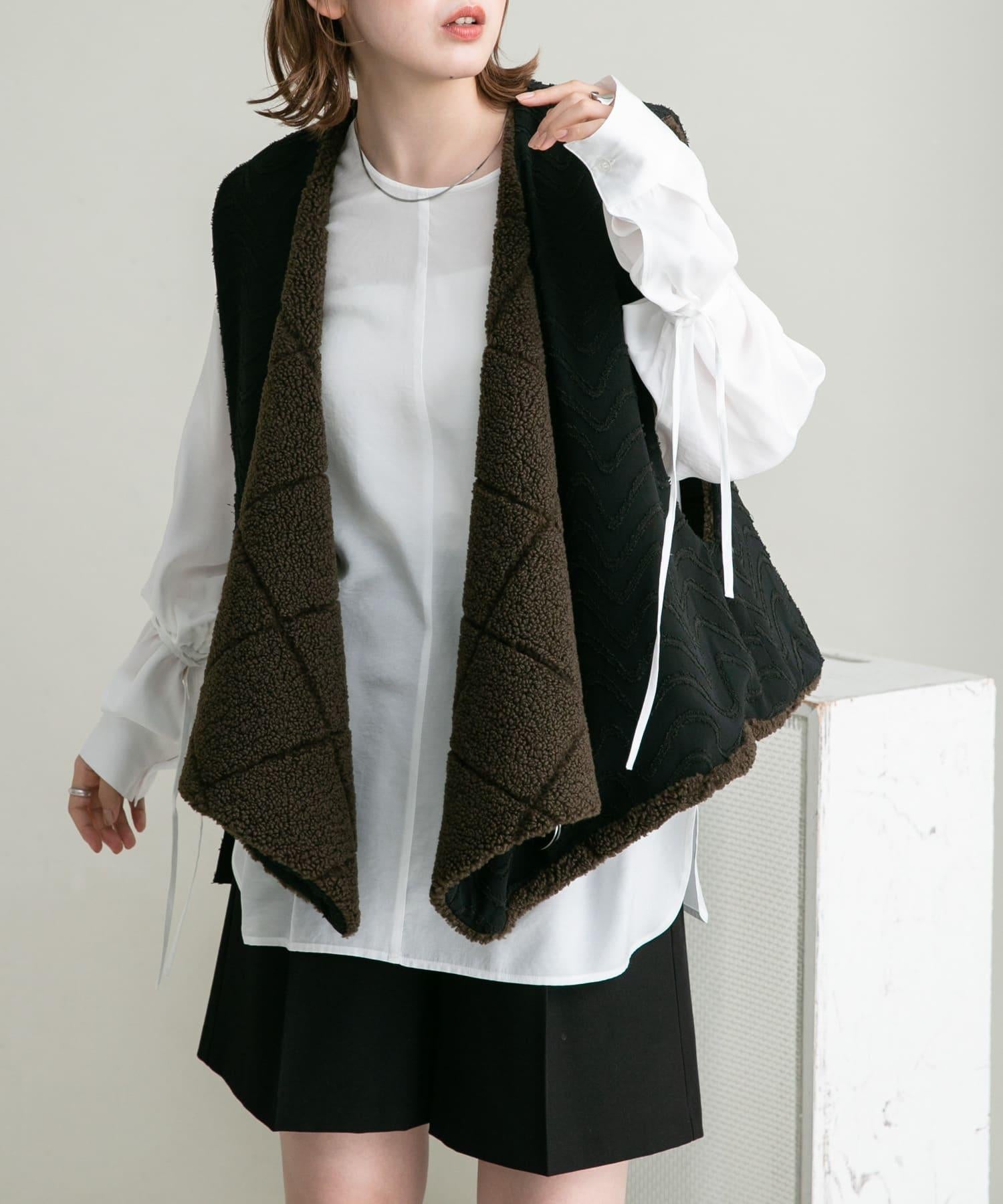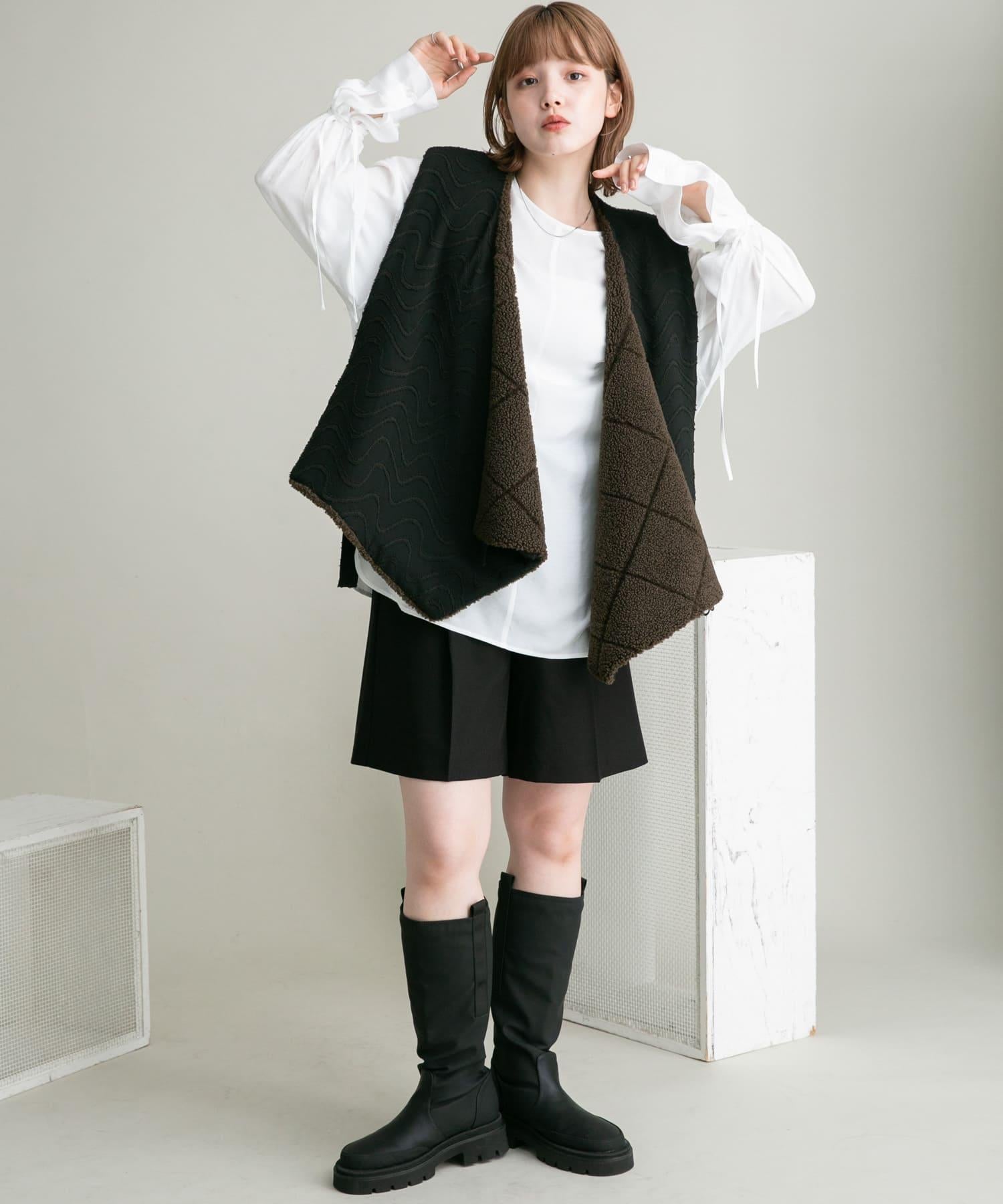 這款襯衫採用前後雙向設計,面料質感寬鬆。這款上衣既可作為圓領上衣穿著,也可取下掛鉤作為圓領上衣穿著。袖子可以系在一起,以改變輪廓。