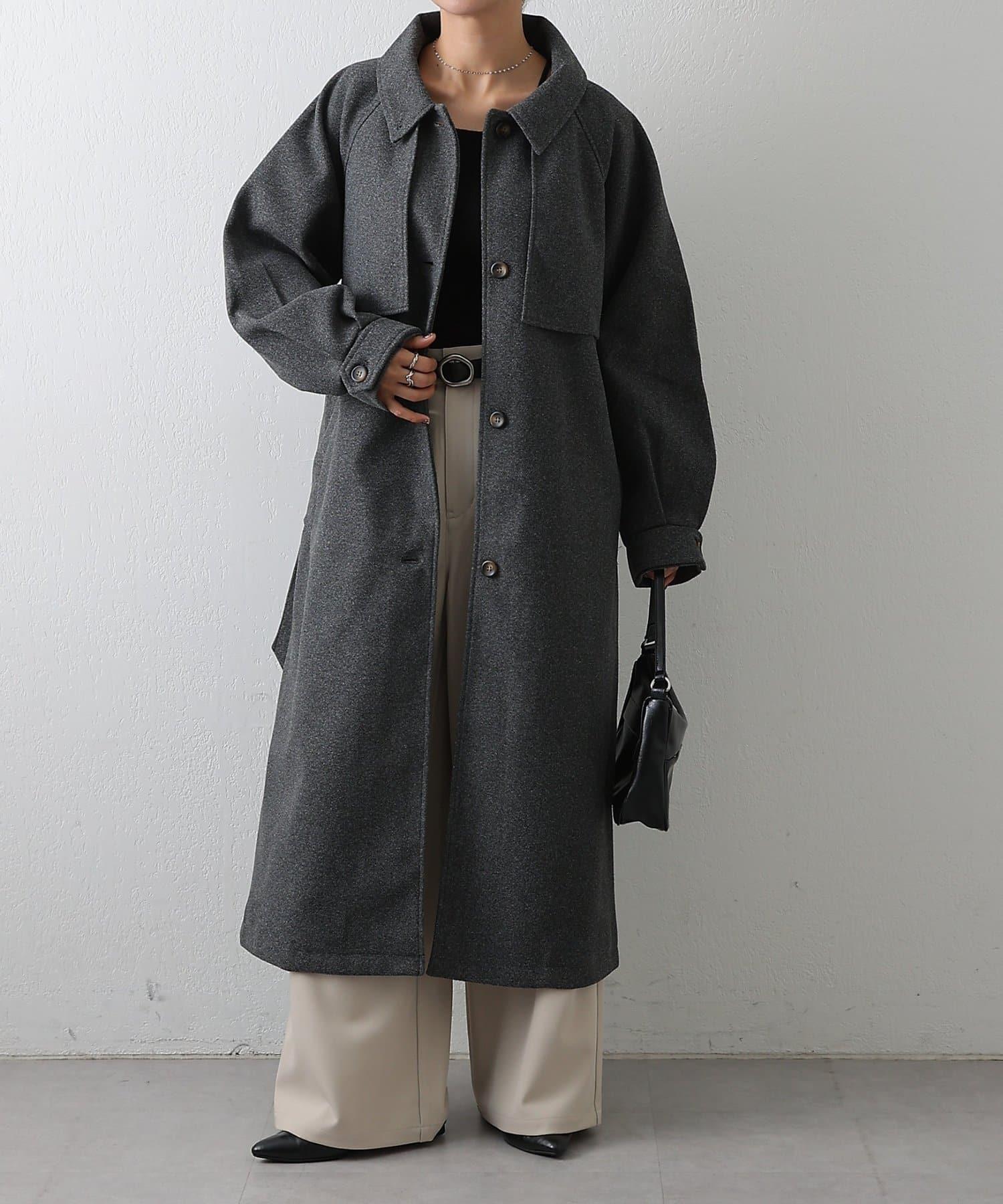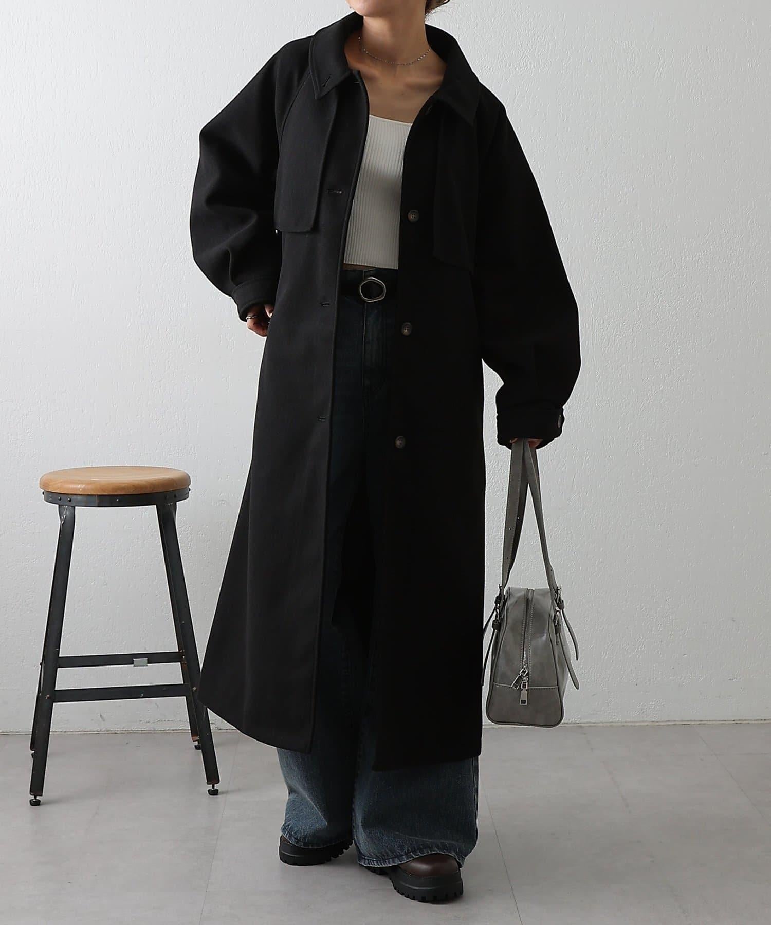 可在不同氛圍下穿著的雙向領單面長款大衣]。