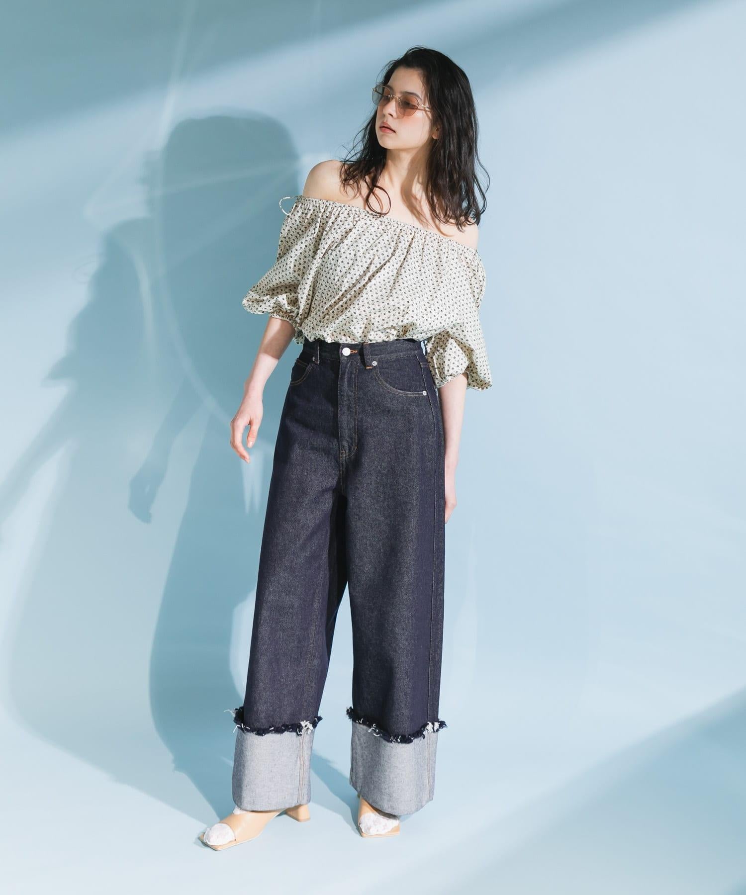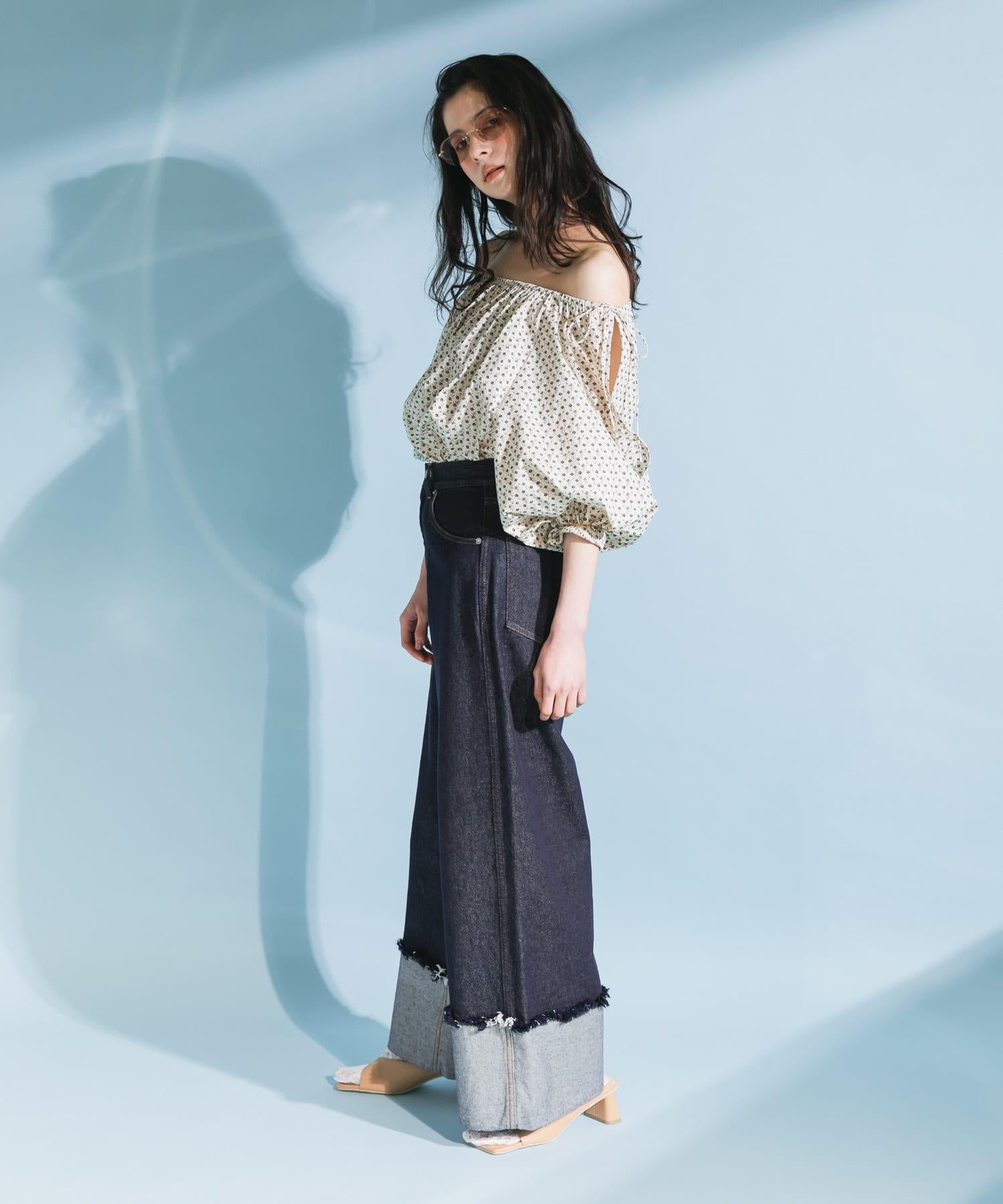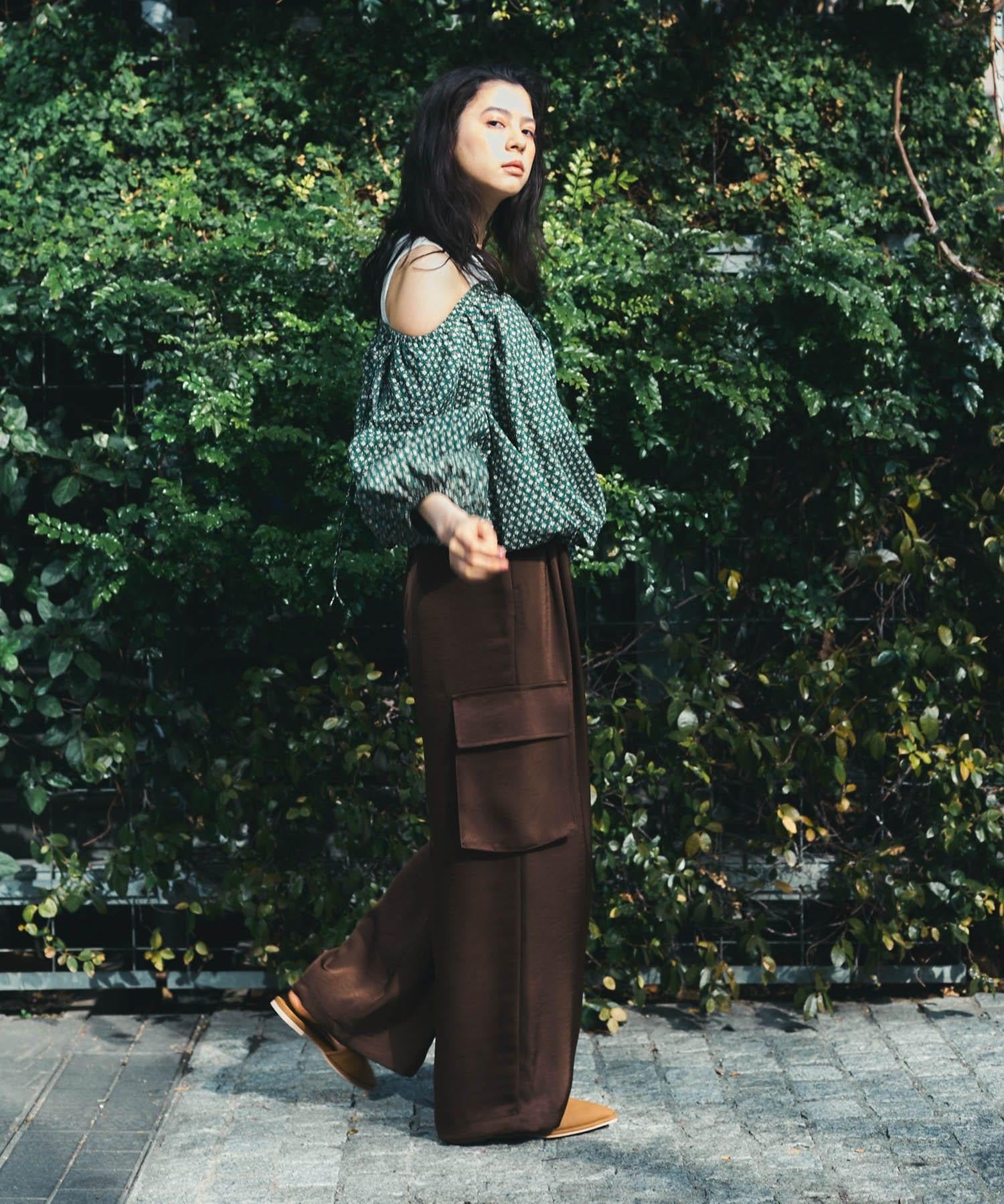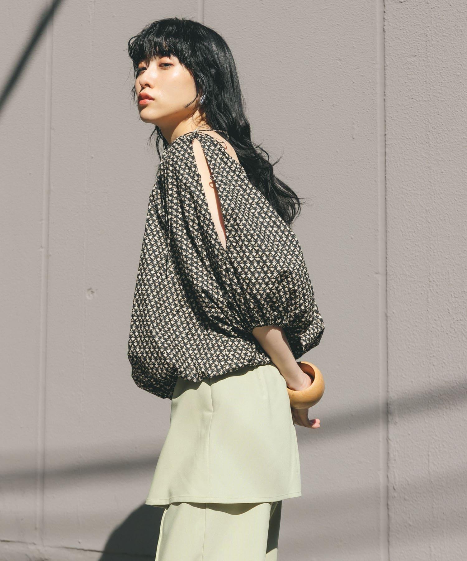本季👍流行的花朵圖案,是一件豔麗的上衣。100% 純棉面料使其既不會過於正式,又能隨意穿著。雖然是基本款上衣,但也可改為露肩的雙向規格也是一個不錯的亮點。此外,由於袖子上有開衩,把手拿出來時也可以像半身裙一樣穿著◎。