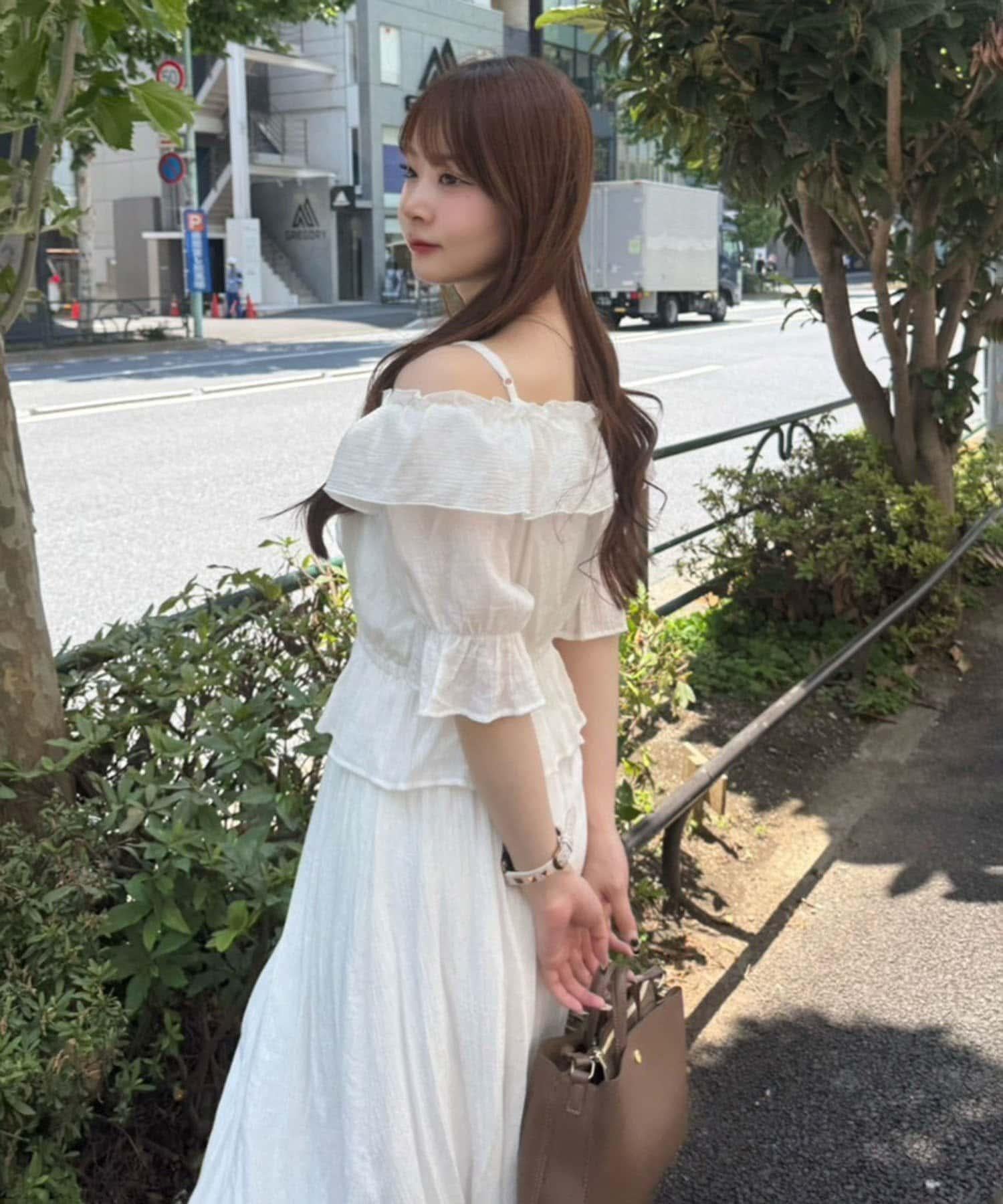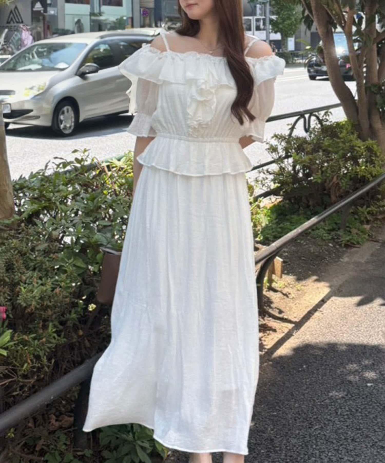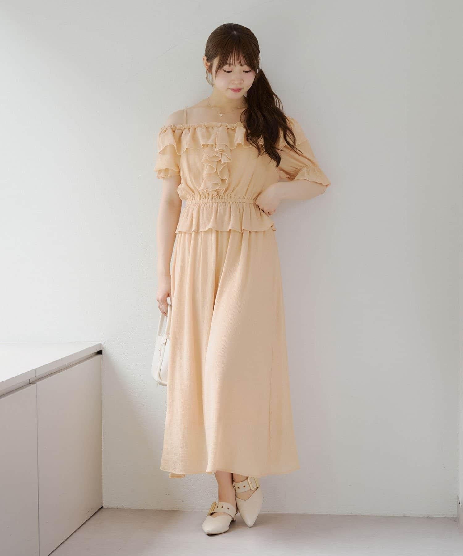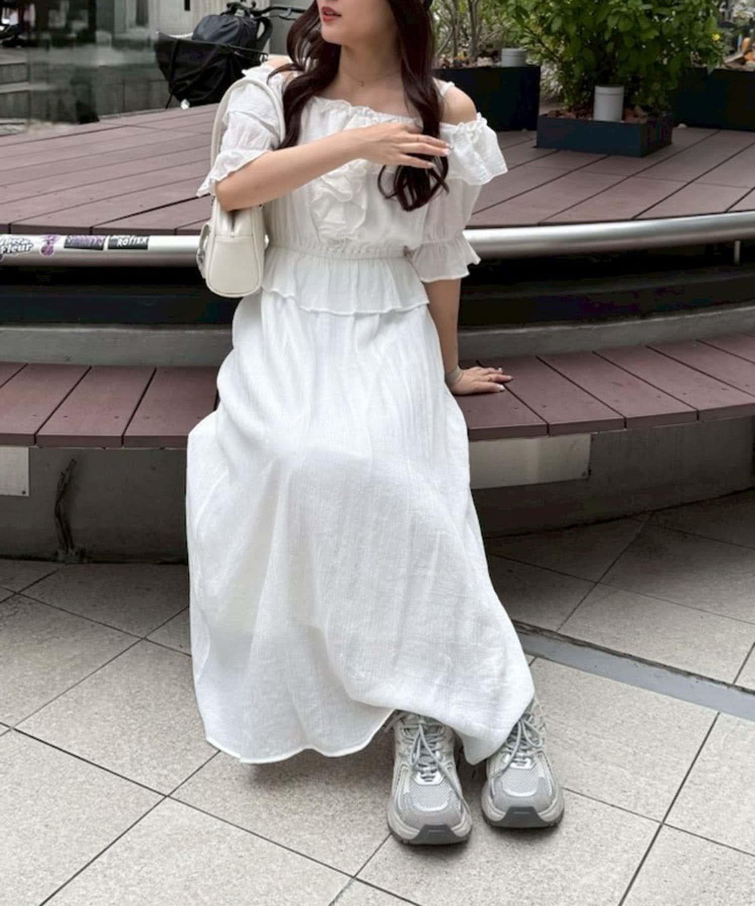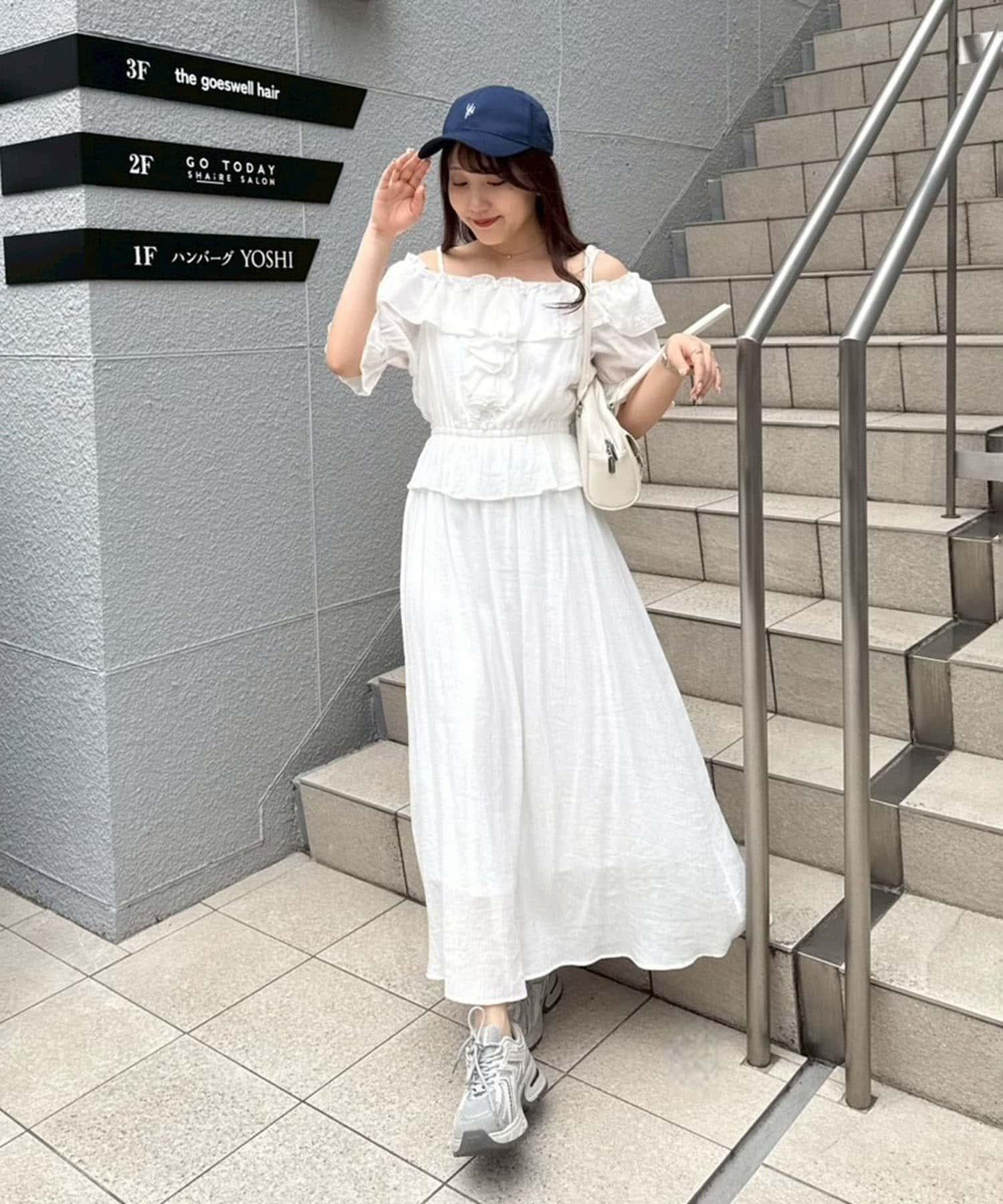 如果你不習慣單獨穿連身裙,建議搭配休閒的喇叭牛仔褲。