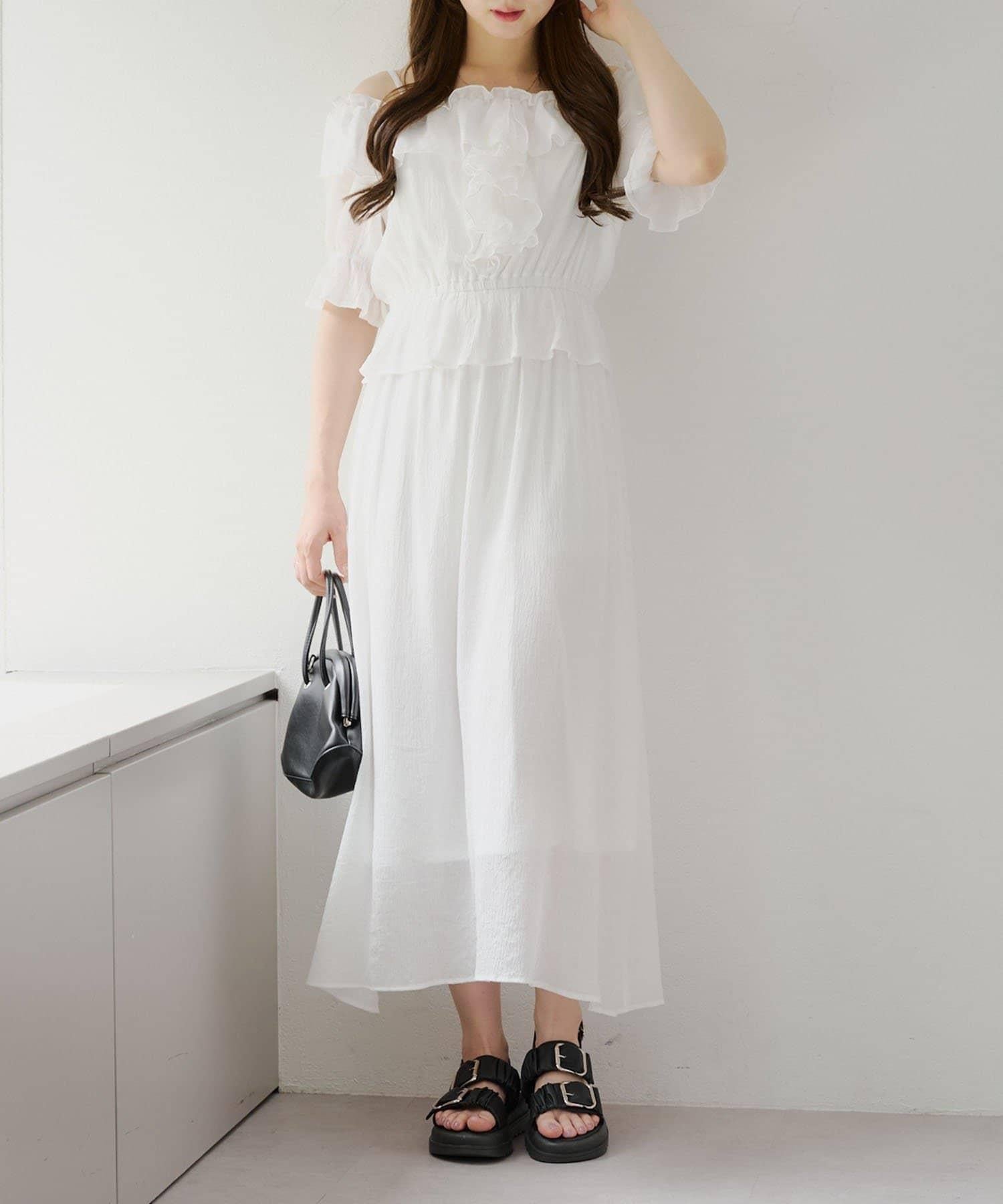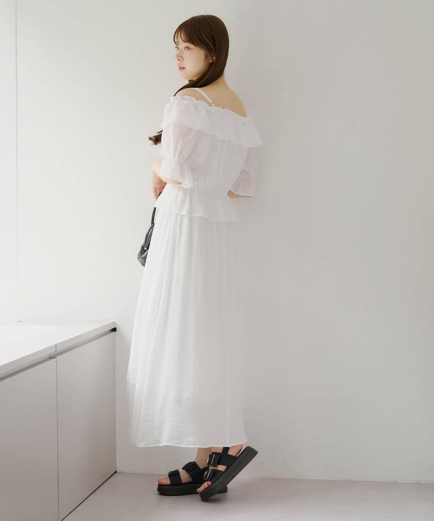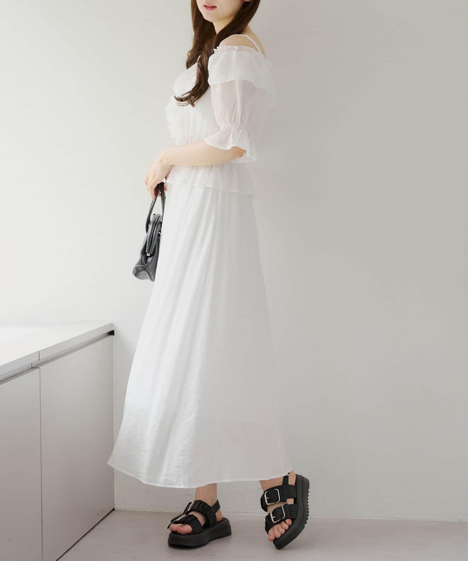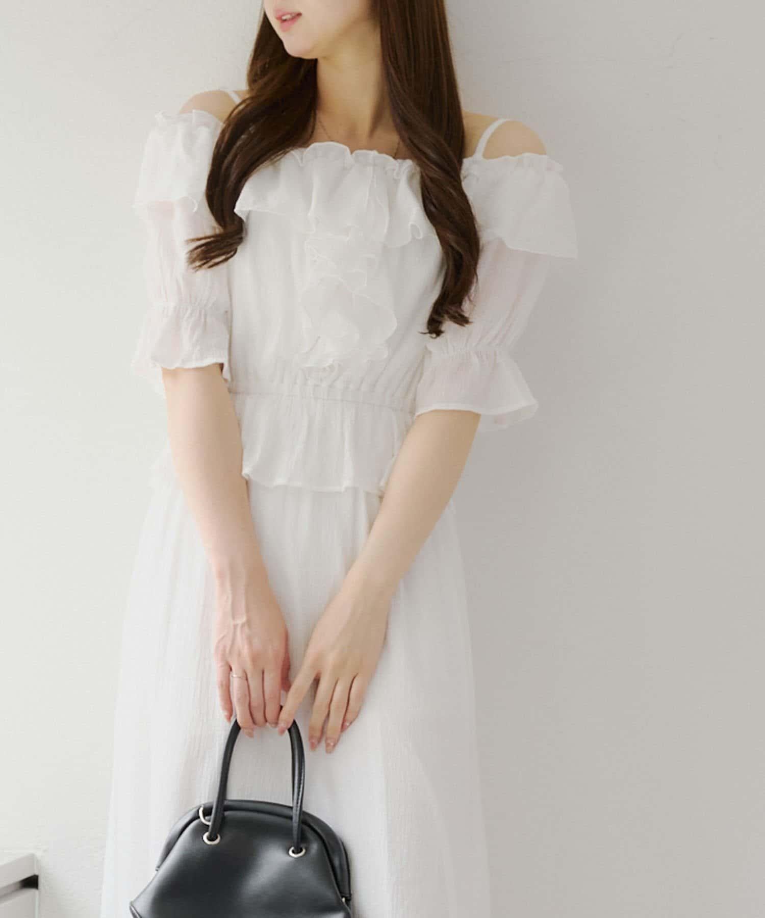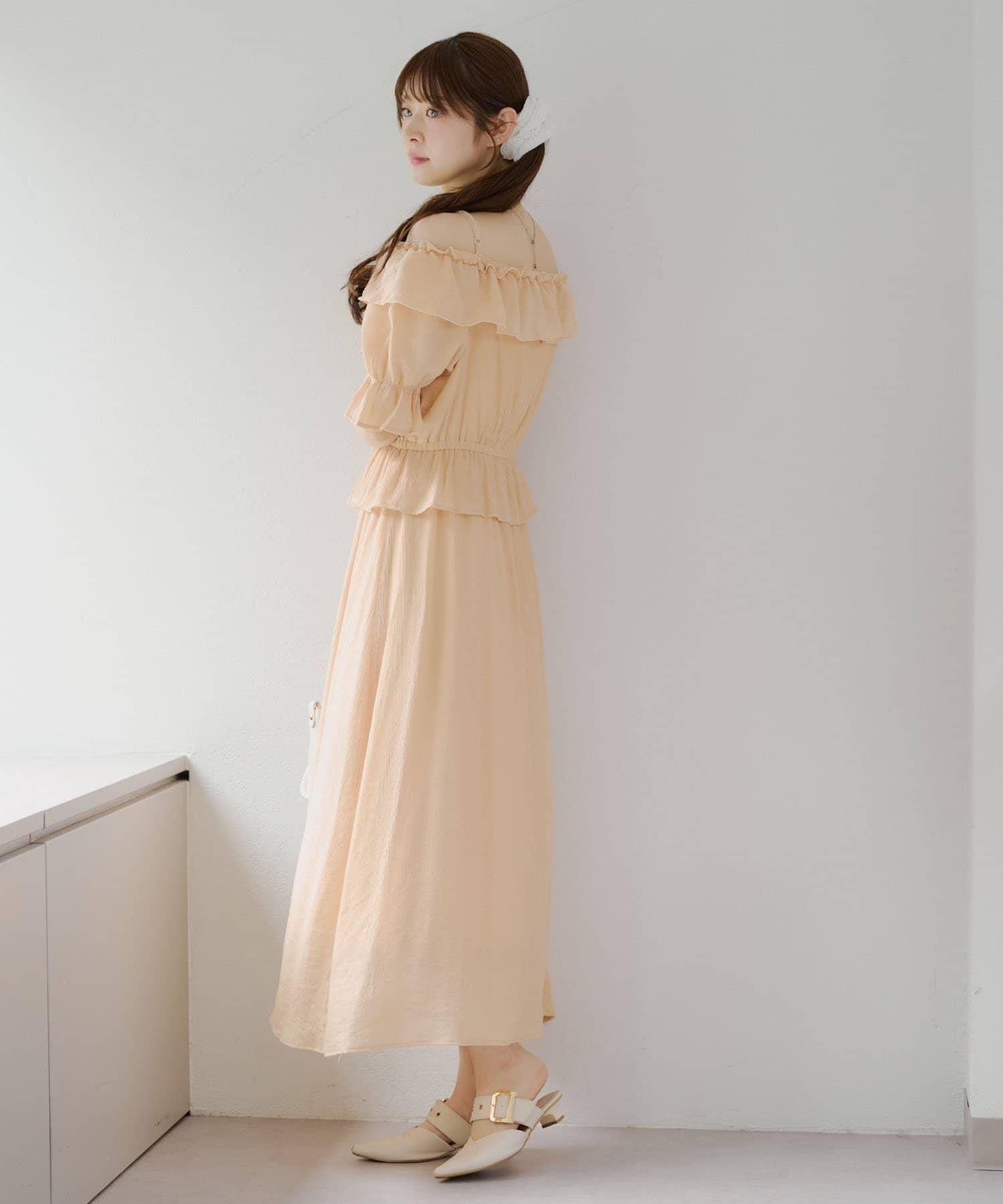 如果你不習慣單獨穿連身裙,建議搭配休閒的喇叭牛仔褲。