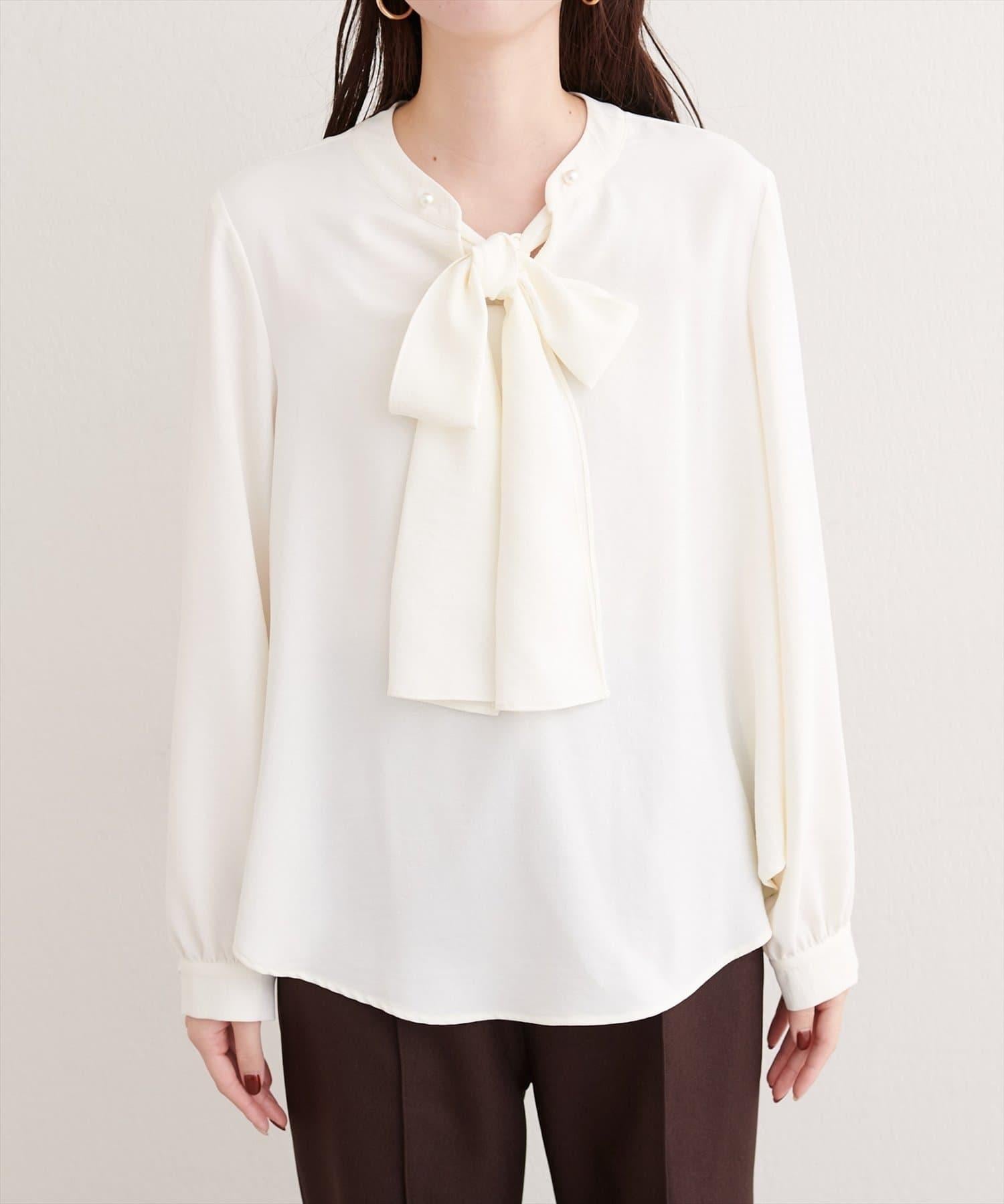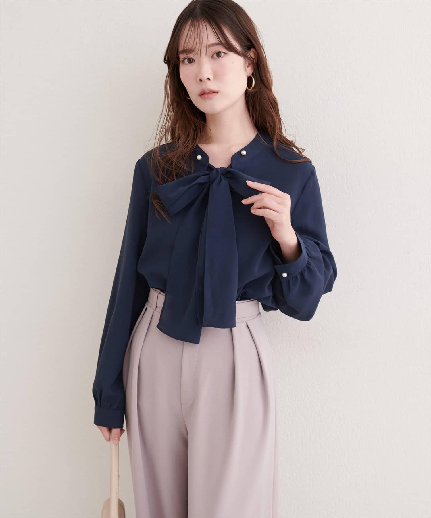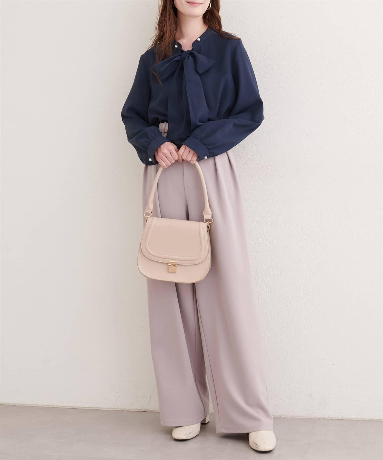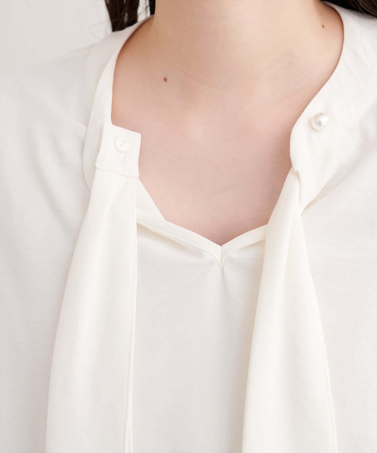 繫上緞帶,給人優雅迷人的印象;或者取下緞帶,穿上簡單的圓領上衣,享受兩種不同的外觀。
